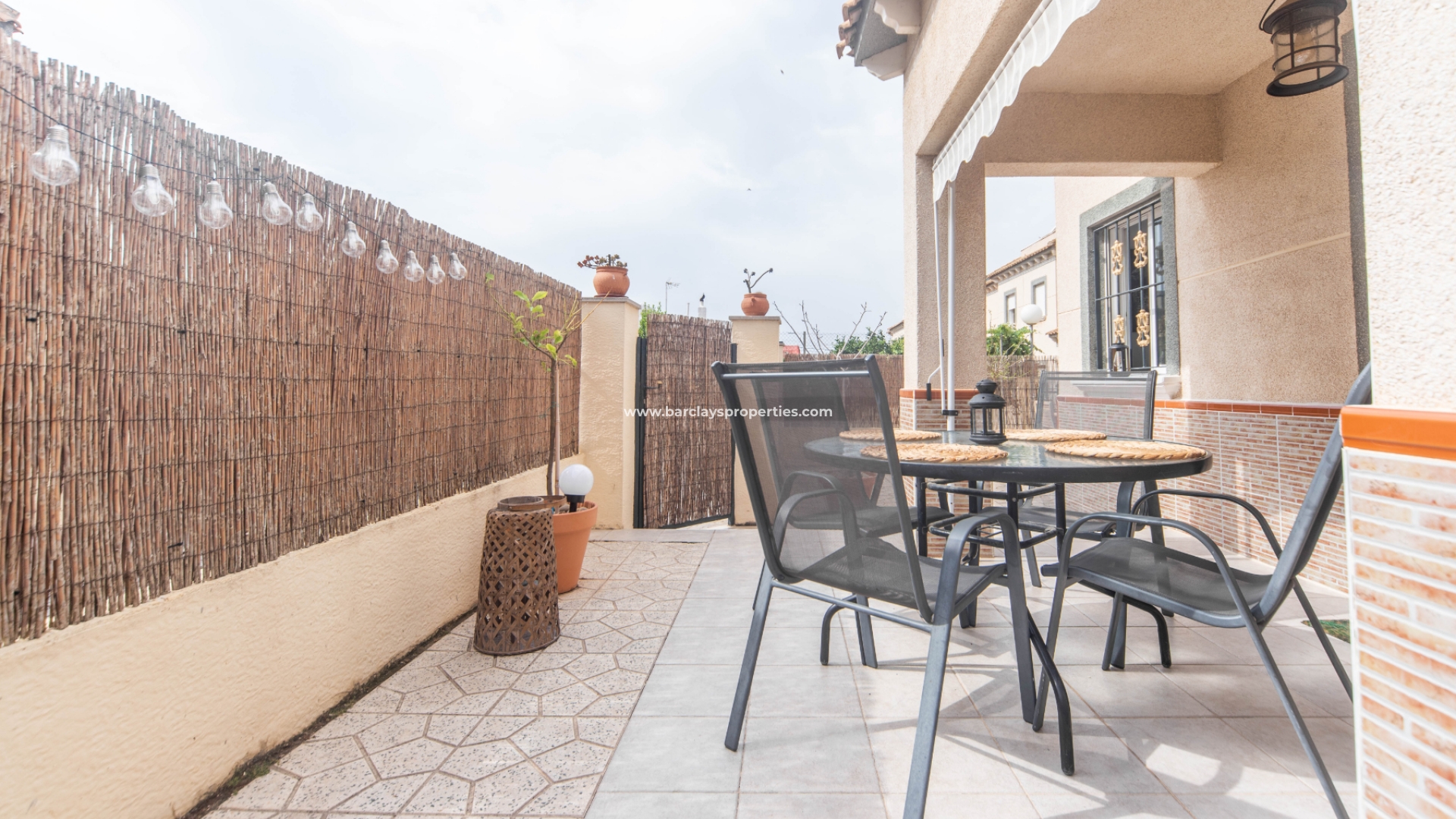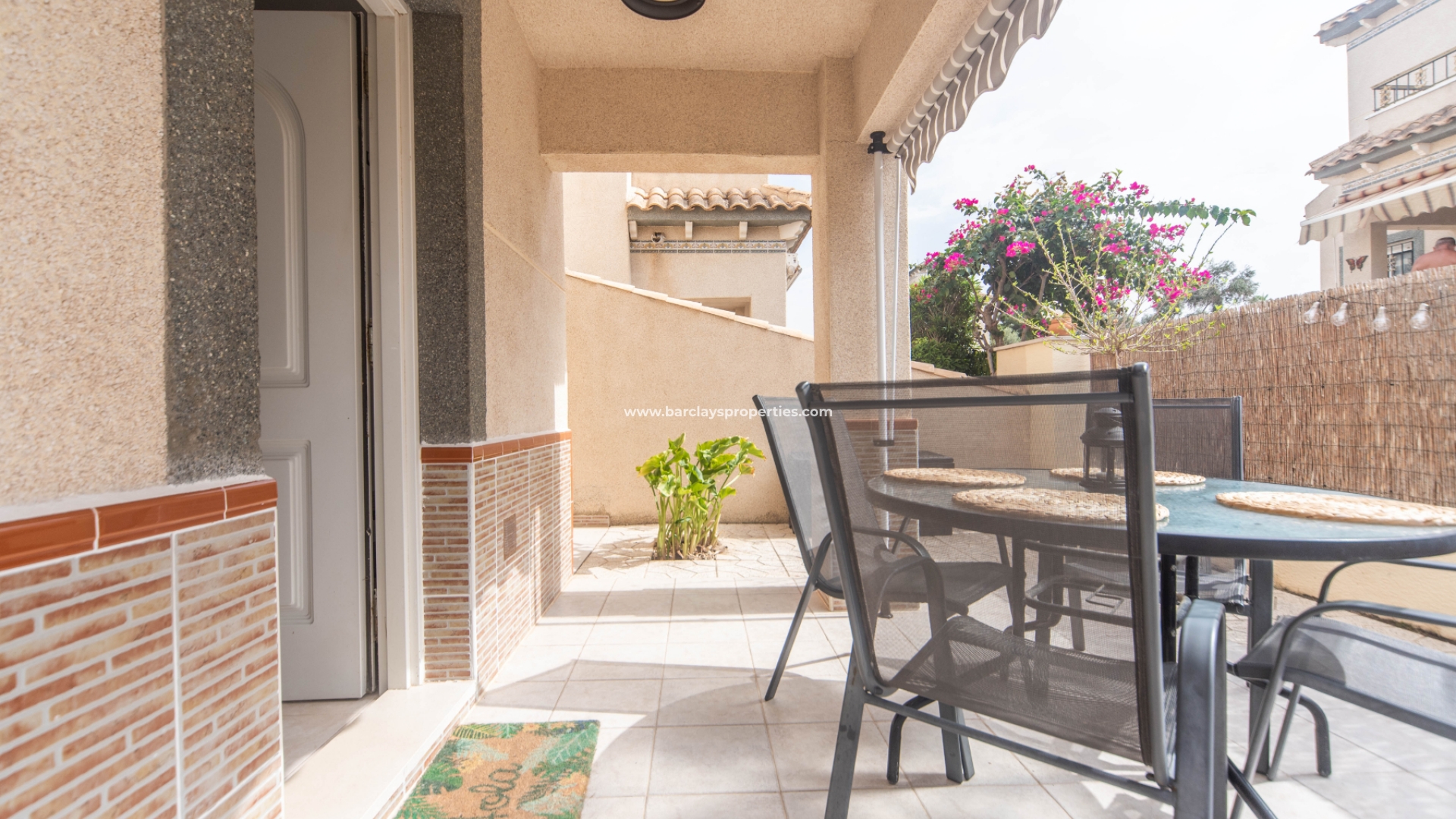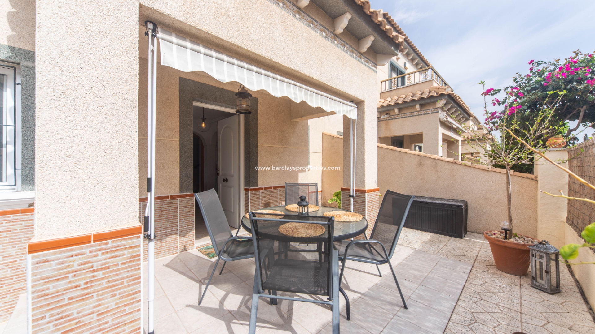 De woning heeft een mooie luifel, ideaal om buiten te genieten terwijl je beschermd bent tegen de zon. Dankzij de ligging op het zuiden en de elegante aluminium ramen komt er veel natuurlijk licht naar binnen, wat zorgt voor een lichte en uitnodigende sfeer.