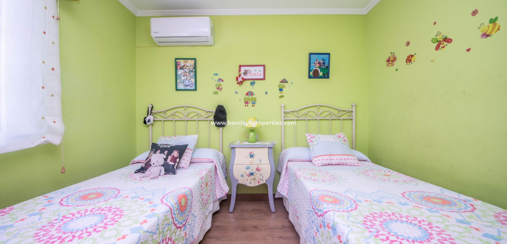 ➡️Marmeren trappen leiden naar de bovenverdieping, waar u extra slaapkamers vindt. De derde slaapkamer is een tweepersoonskamer met airconditioning. Het bovenste gebied omvat ook een ruime badkamer met een douchecabine, WC, bidet en wastafel. De vierde slaapkamer is een tweepersoonskamer met airconditioning, een plafondventilator en inbouwkasten. Het dubbele glas verbetert het comfort van de bovenverdieping, en een bergkast herbergt de elektrische boiler.