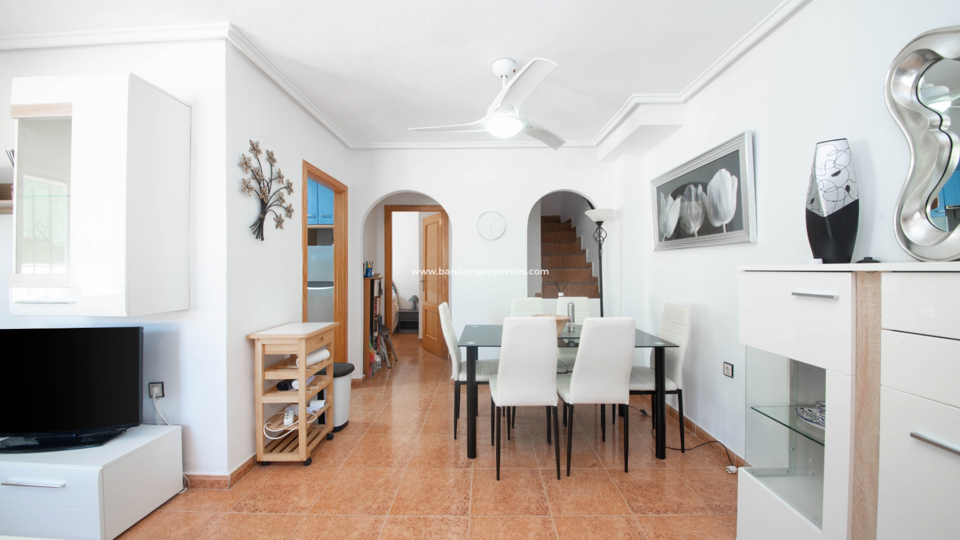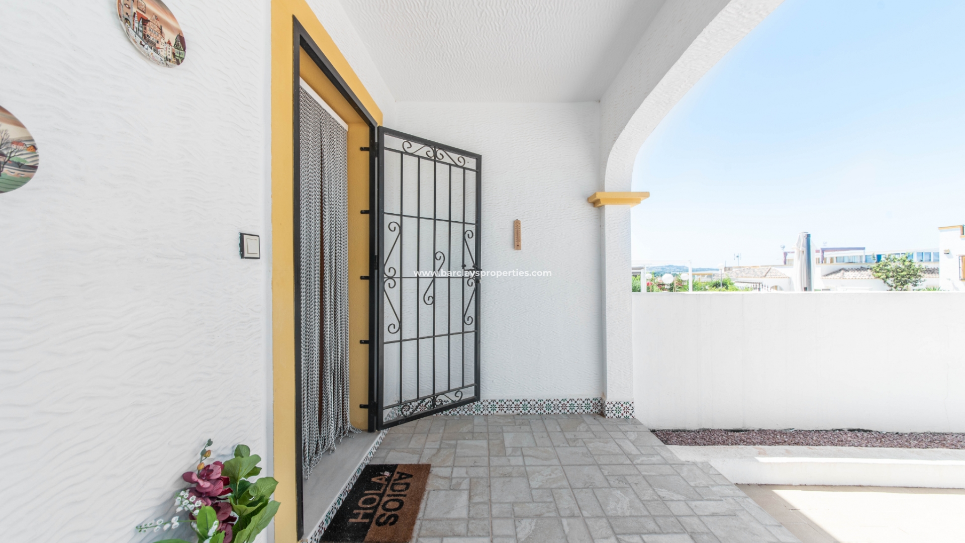 Welkom bij deze aantrekkelijke geschakelde woning gelegen binnen de zeer gewilde urbanisatie La Marina in San Fulgencio. Dit model, genaamd "Isabel", bevindt zich op een bevoorrechte locatie vlak naast het ➡️ gemeenschappelijk zwembad, wat de aantrekkingskracht ervan vergroot en het tot een uitstekende investeringsmogelijkheid met groot verhuurpotentieel maakt. Voorzieningen zijn te vinden op slechts 10 minuten lopen naar de populaire commerciële zone "Consum Square". De dichtstbijzijnde luchthaven is Alicante-Elche en ligt op slechts 25 minuten rijden met de auto. Voor strandliefhebbers is de hele kustlijn om uit te kiezen en het dichtstbijzijnde gouden zandstrand ligt op 5 minuten rijden bij "Playa de La Marina", een met een blauwe vlag bekroond strand vanwege zijn netheid en kristalheldere water.