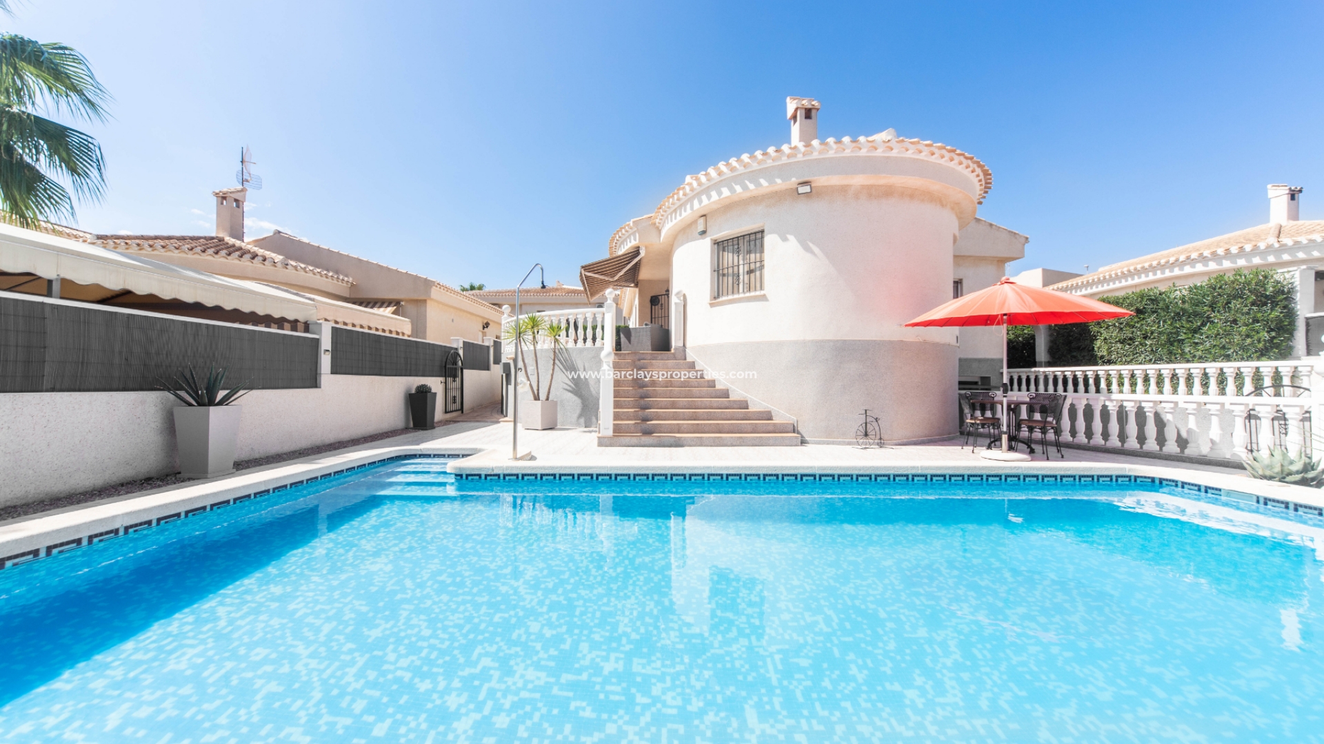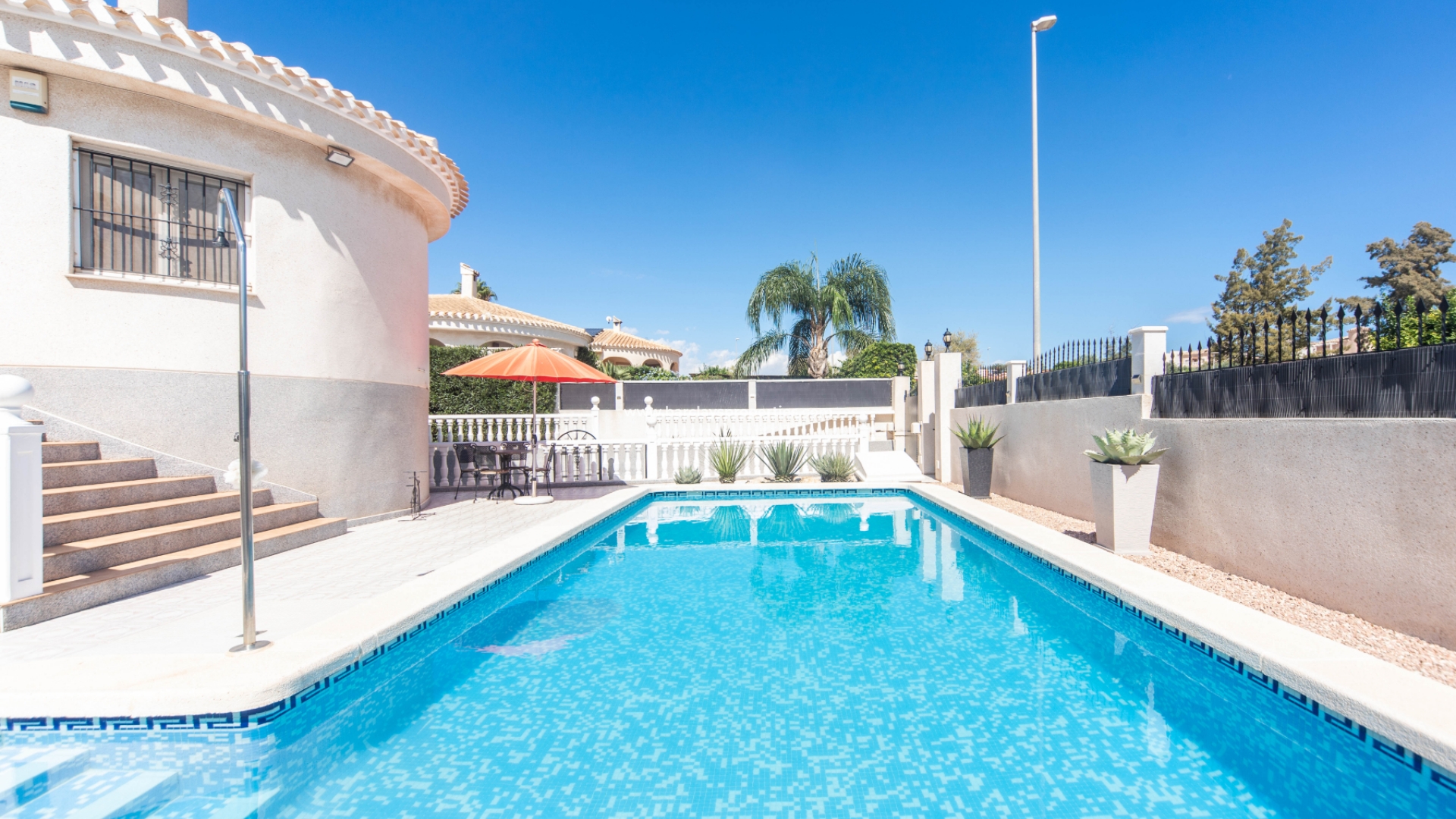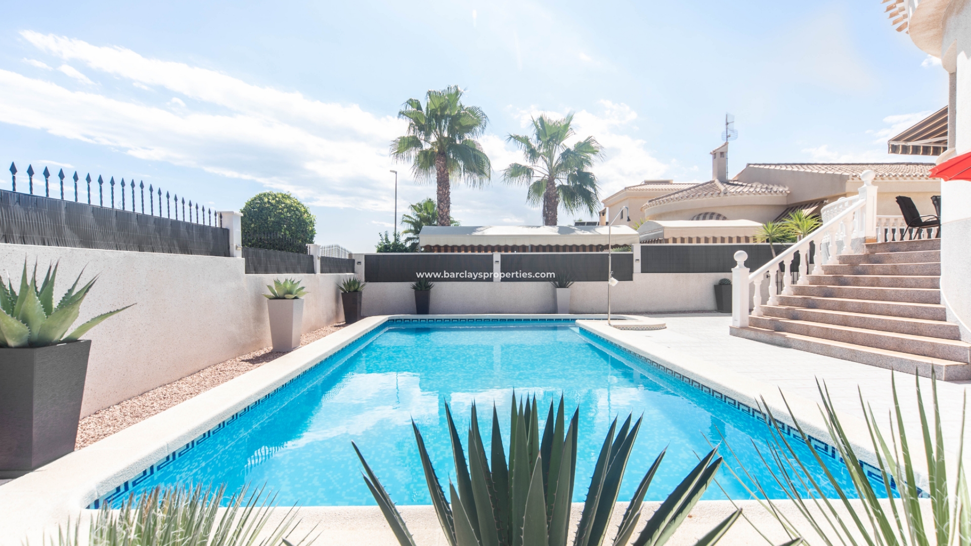 Een luxe kenmerk van deze vrijstaande villa is het privézwembad, met afmetingen van 8 x 4 meter en aangrenzende buitendouche, en biedt de perfecte omgeving om te ontspannen. De aantrekkelijke tuin is volledig verhard met mooie grindranden en groenvoorzieningen en biedt weinig onderhoud en zit-, eet- en zonneweiden om van de omgeving te genieten.