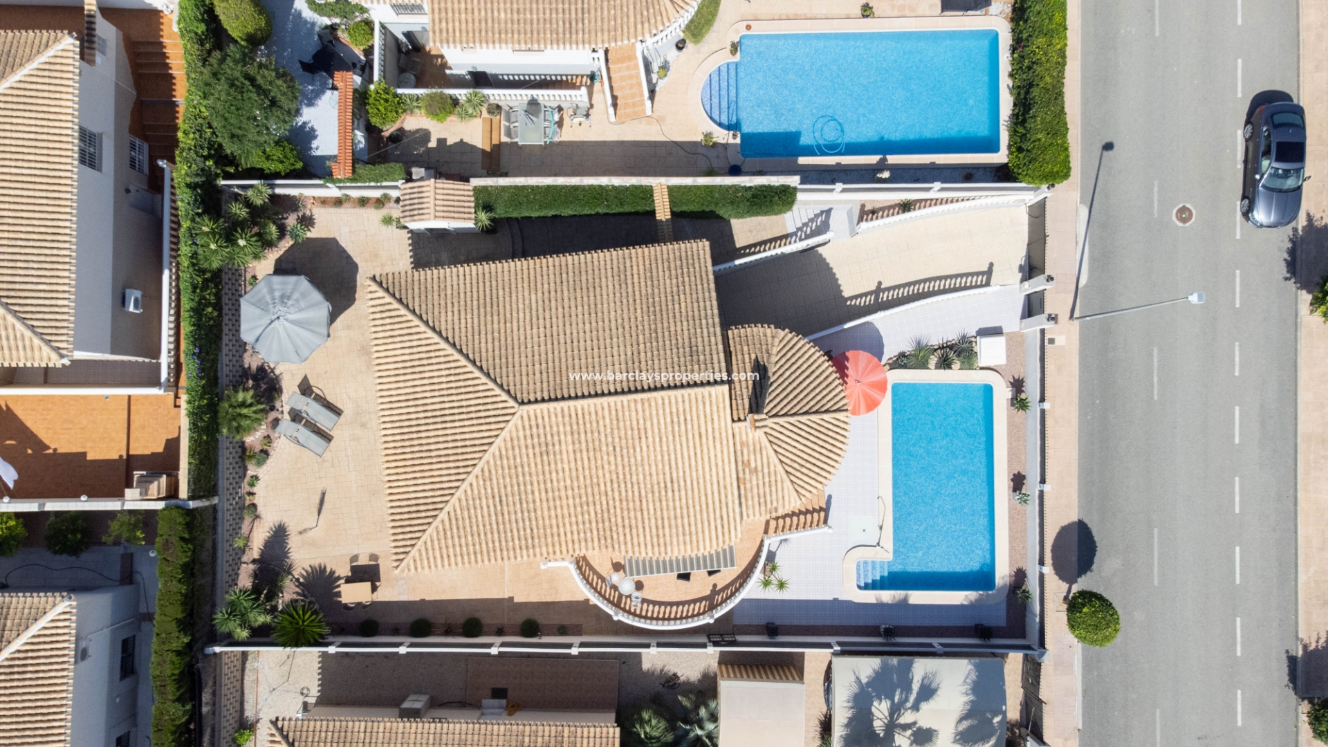 Presentatie van een Prestigieuze Villa in het Hart van Urb. La Marina, San Fulgencio - Een Oase van Elegantie ➡️ op een Toplocatie. Deze prachtige, luxueuze villa is gelegen in een van de meest gewilde gebieden van de urbanisatie met een schilderachtig uitzicht op een rustig parkgebied en integreert naadloos de schoonheid van de natuur met stedelijk leven. Bovendien ligt het op steenworp afstand van het altijd populaire "Consum Square", waar u charmante winkels, een gevarieerde selectie bars en een verleidelijke keuze aan restaurants vindt die aan elk gehemelte voldoen.