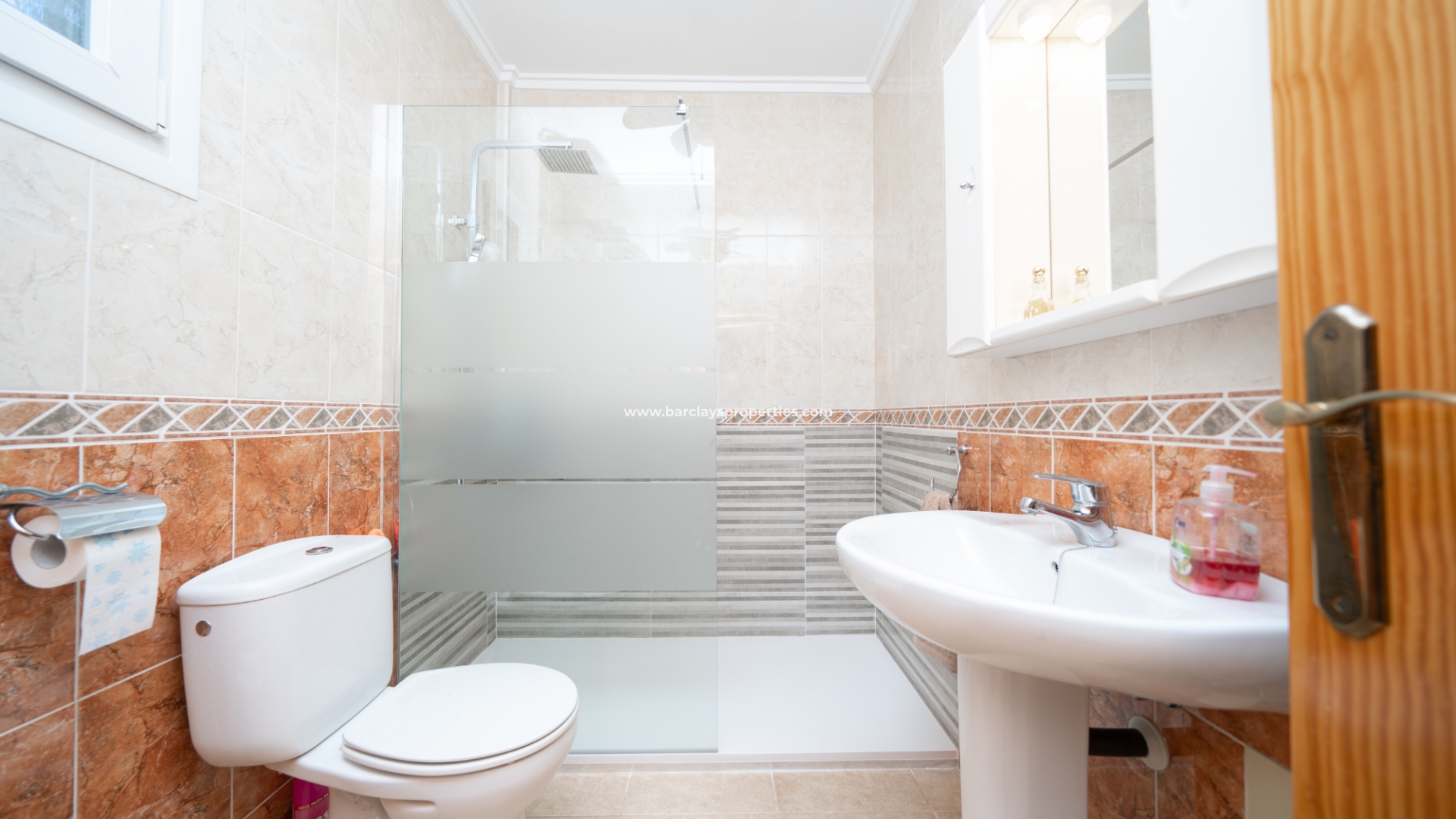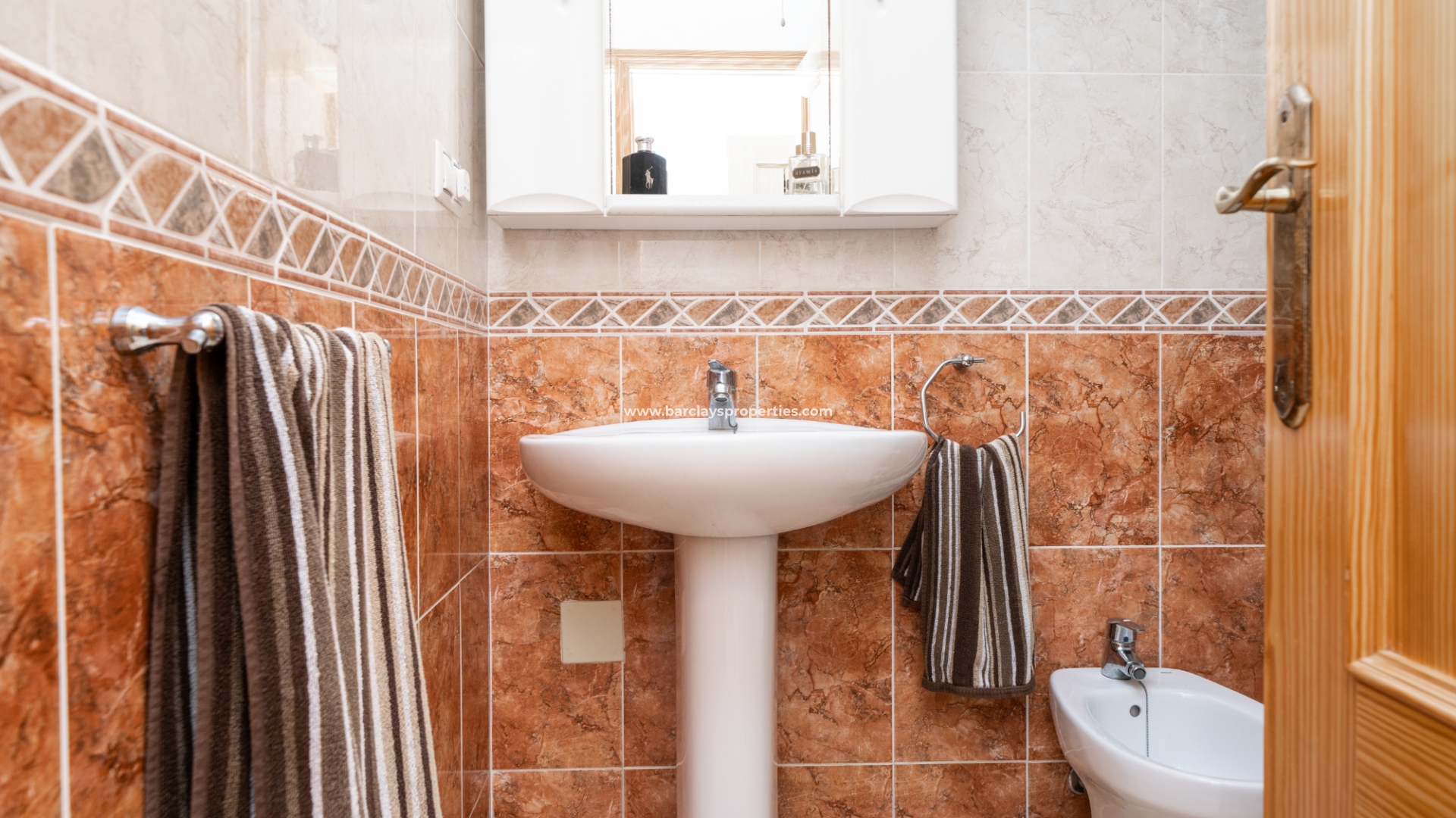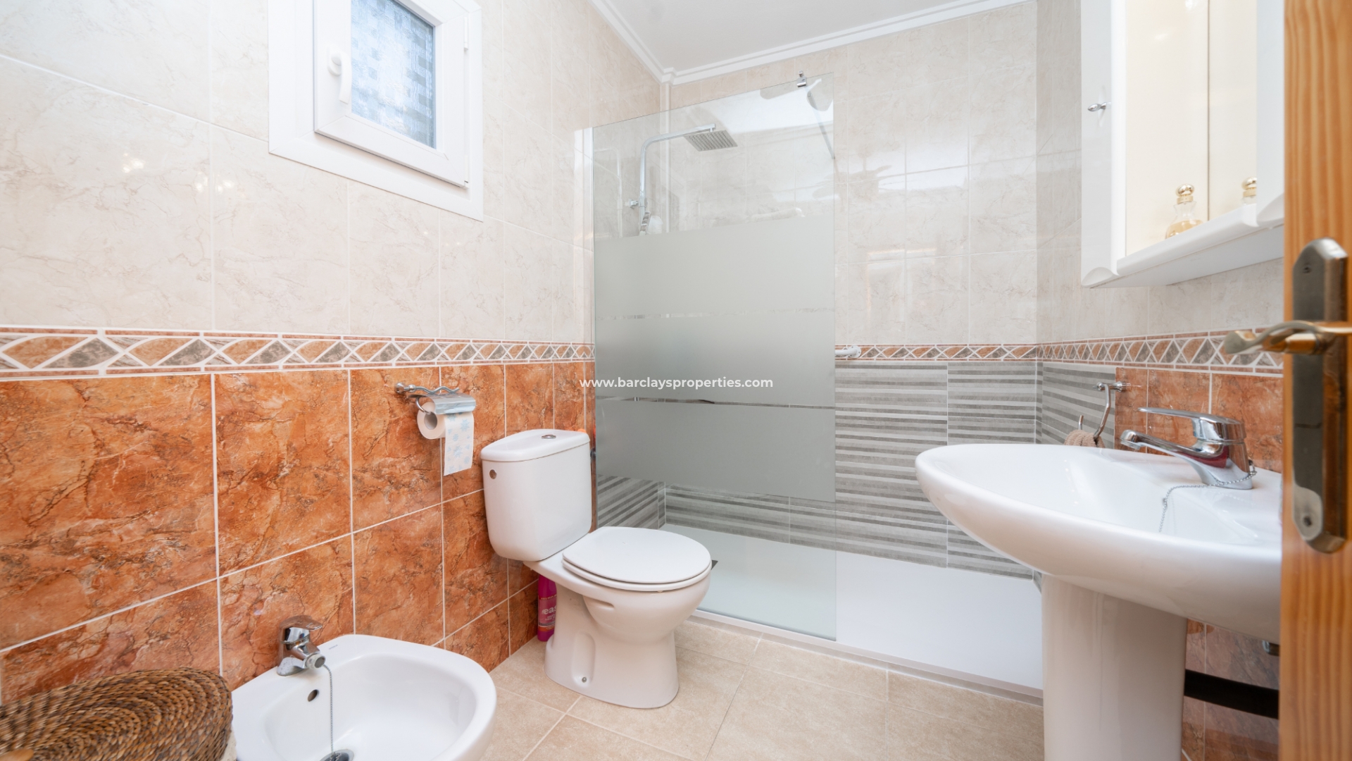 Met twee goed uitgeruste badkamers heeft u het gemak dat u verdient. De grote familiebadkamer heeft een bad, douche, wastafel en toilet. De ensuite badkamer verbonden met de hoofdslaapkamer voegt een extra vleugje luxe toe met een bad, douche, bidet, wastafel en toilet.