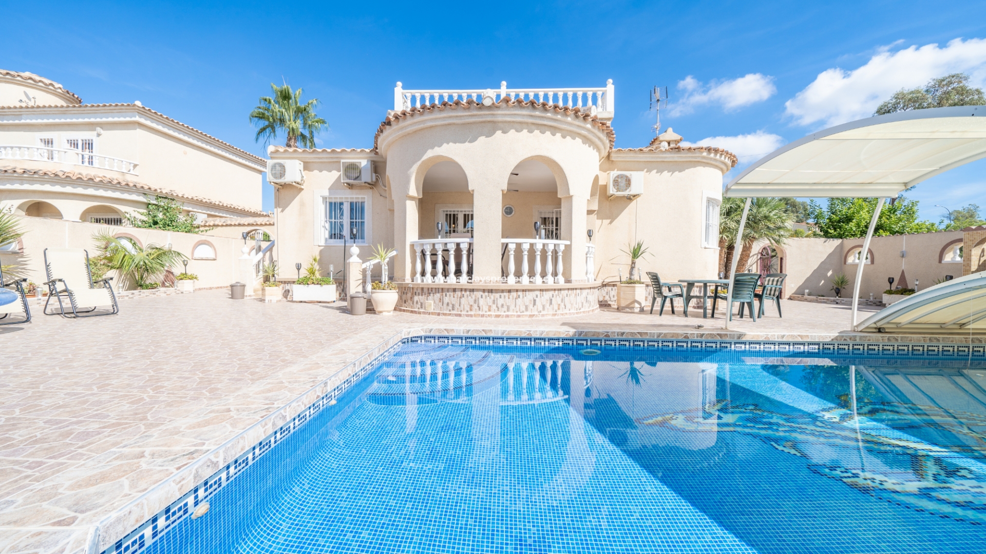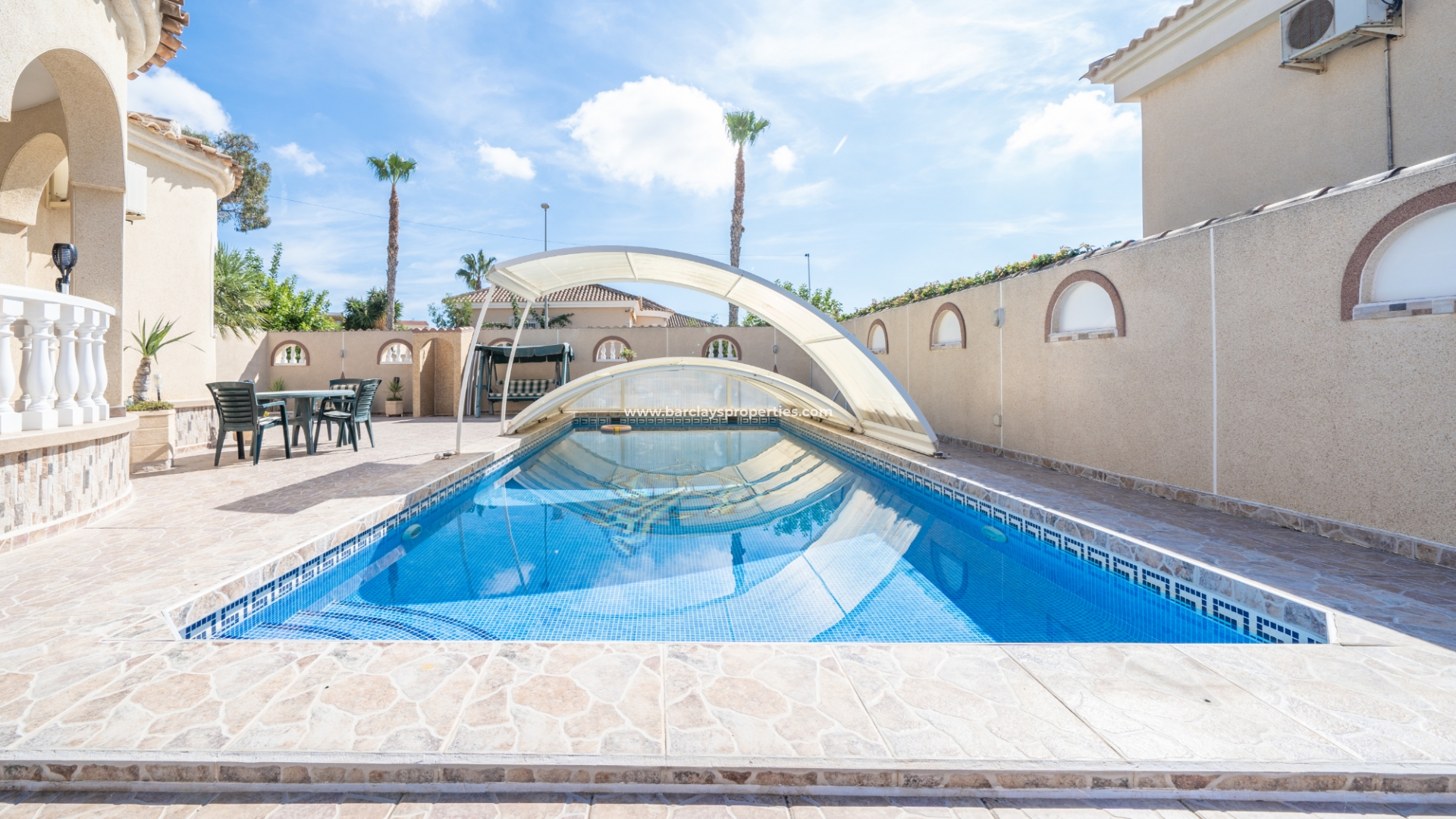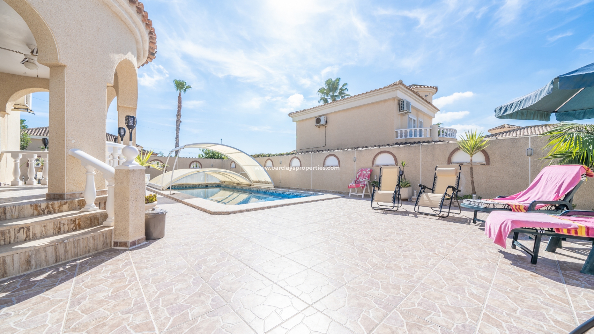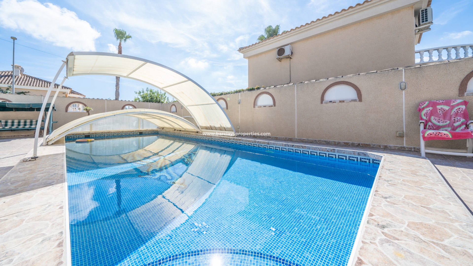 Gelegen in de immer populaire Urbanisatie La Marina, San Fulgencio, vertegenwoordigt deze Prestige Villa met een overdekt privézwembad van 10 x 5 en een eigen buitendouche het toppunt van luxueus wonen in een idyllische mediterrane omgeving.