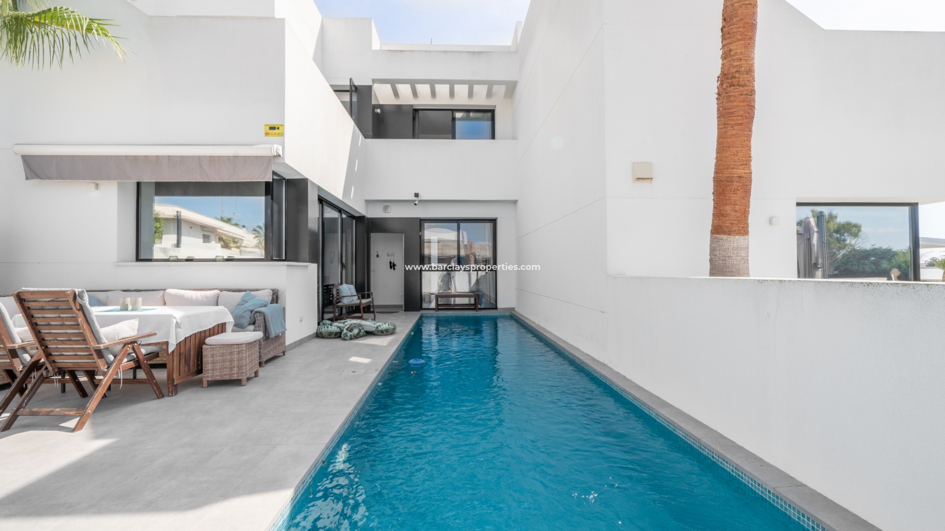 Te koop in de pittoreske omgeving van Urbanisatie La Marina, Costa Blanca, bevindt zich deze prachtige vrijstaande ➡️ nieuwbouwvilla die het toppunt van luxe en modern wonen biedt. Met zijn adembenemende ontwerp en een reeks opmerkelijke kenmerken straalt deze woning charme en verfijning uit.