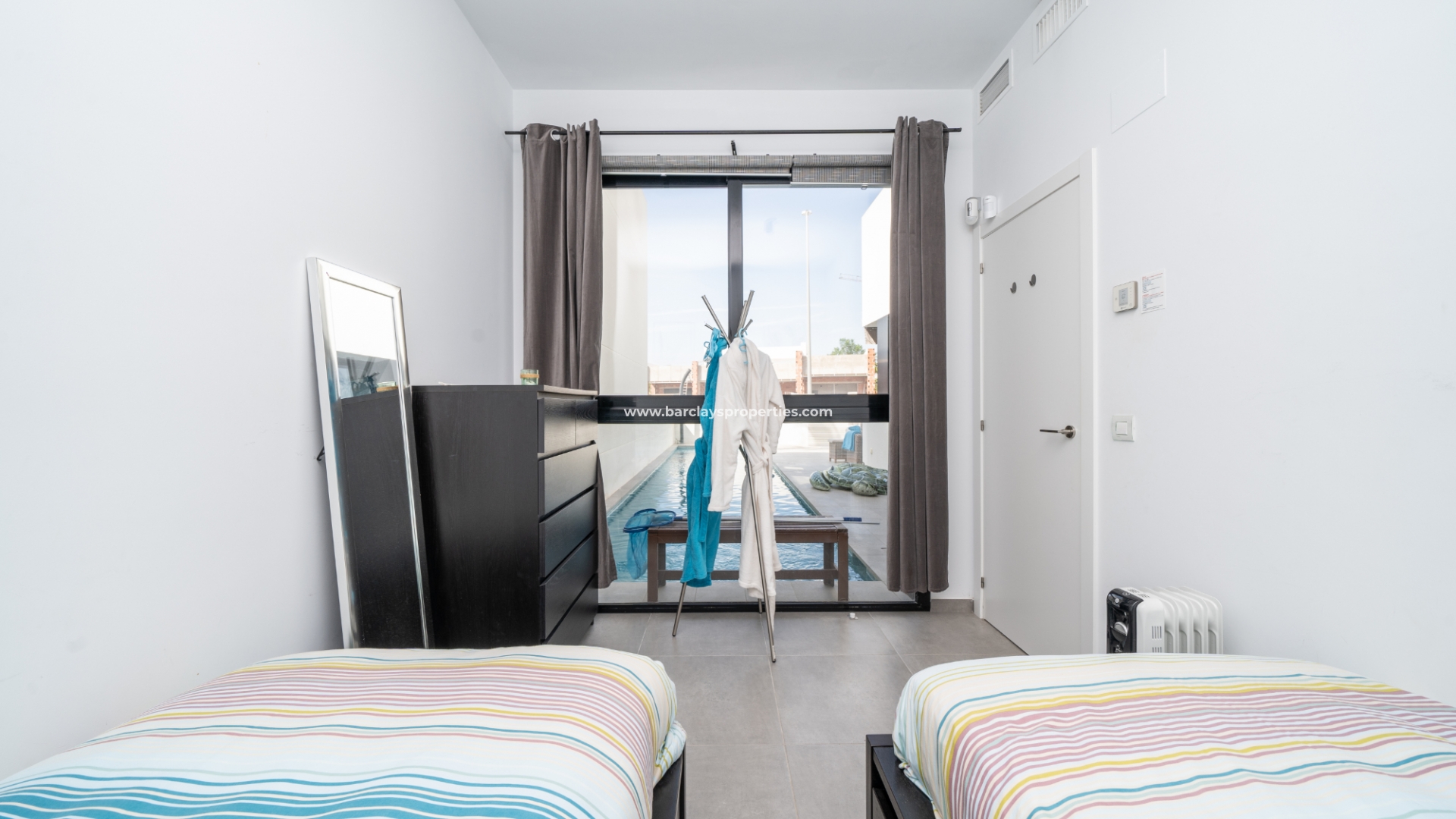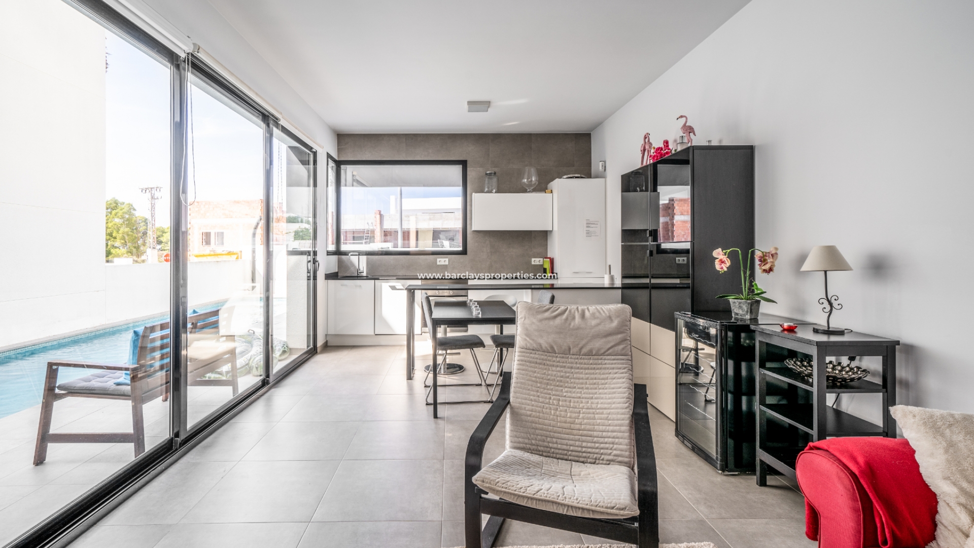 Bekijk onze video-tour om u door deze prachtige villa te leiden. We beginnen in de volledig betegelde tuin met een buitenlounge en een privézwembad met een buitendouche om af te spoelen en op te frissen. Bij het betreden van de villa vinden we een lichte en luchtige woonkamer met een moderne open keuken; dit gebied heeft schuifdeuren die naar het zwembad leiden. Er is ook een slaapkamer op de begane grond en een badkamer met douche, hangend toilet en modern wastafel / wastafelmeubel, evenals een wasruimte. Een achterdeur leidt ons naar de achterkant van het pand, waar zich een berging bevindt, ideaal om grotere items droog en veilig te houden.