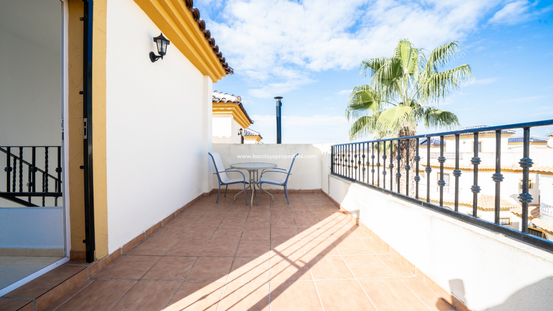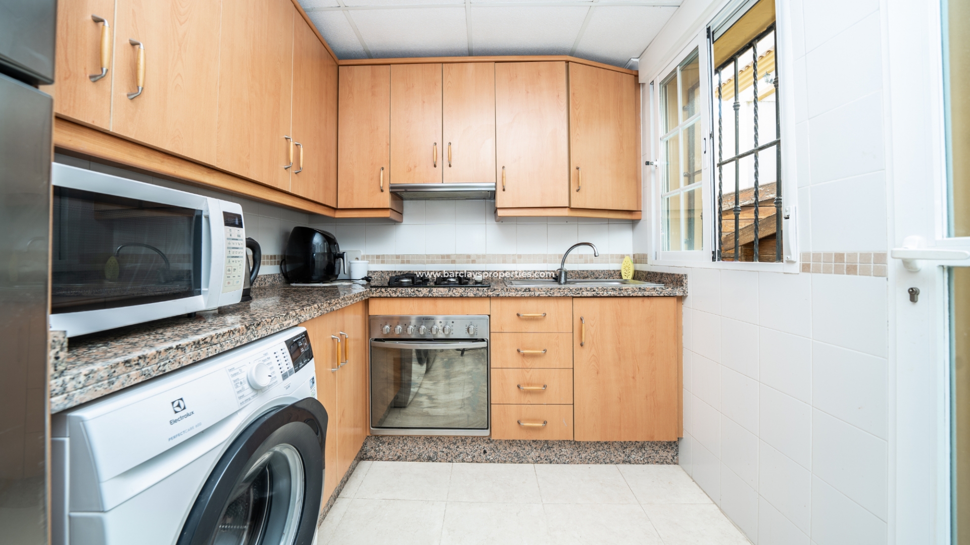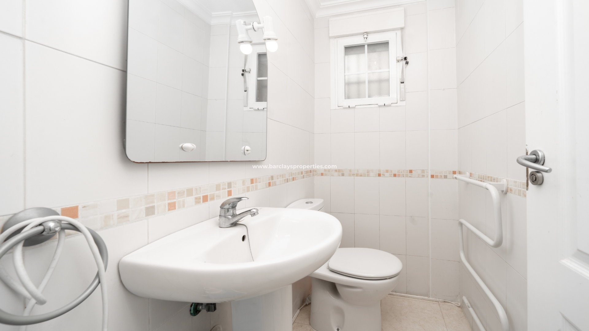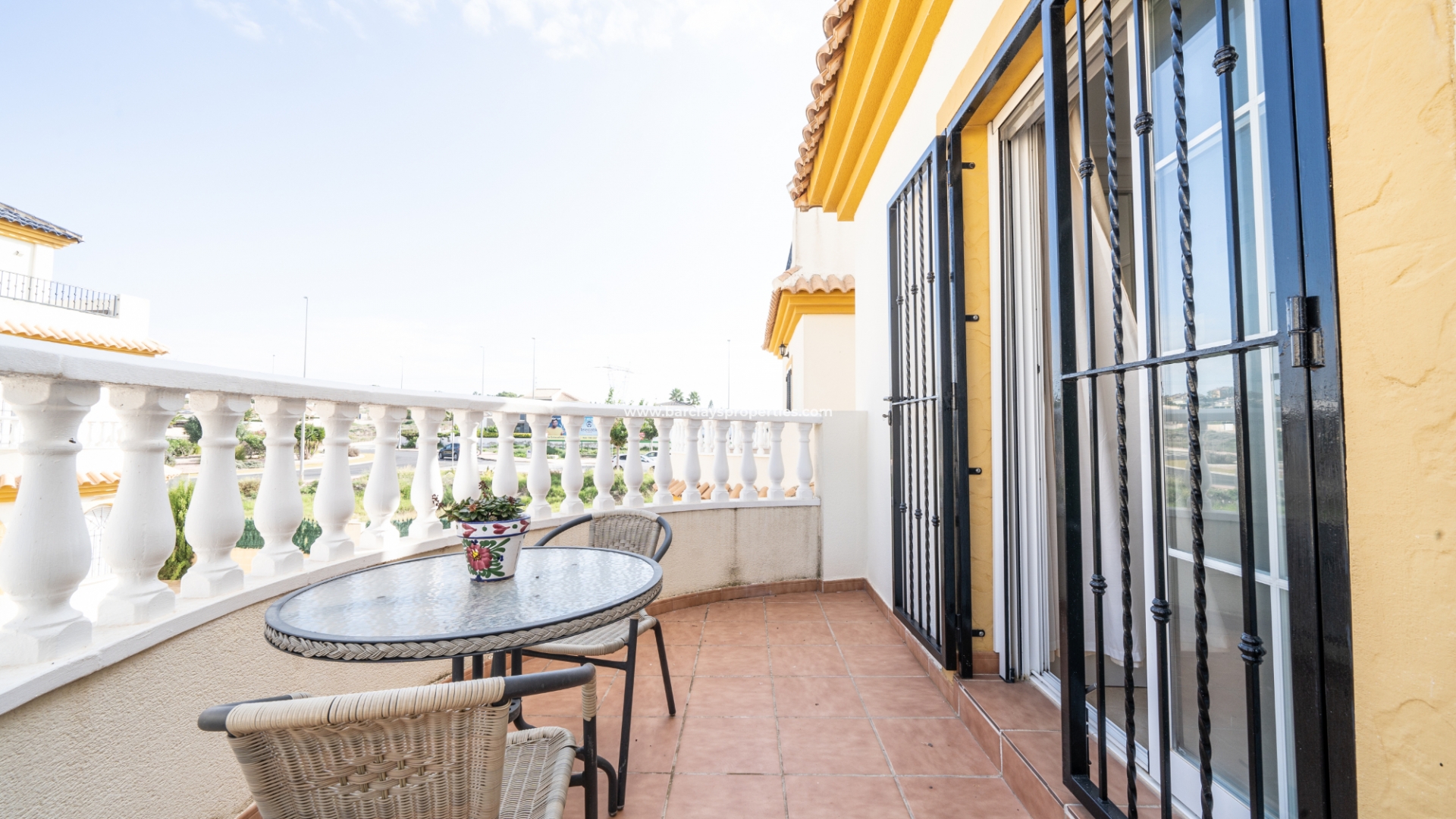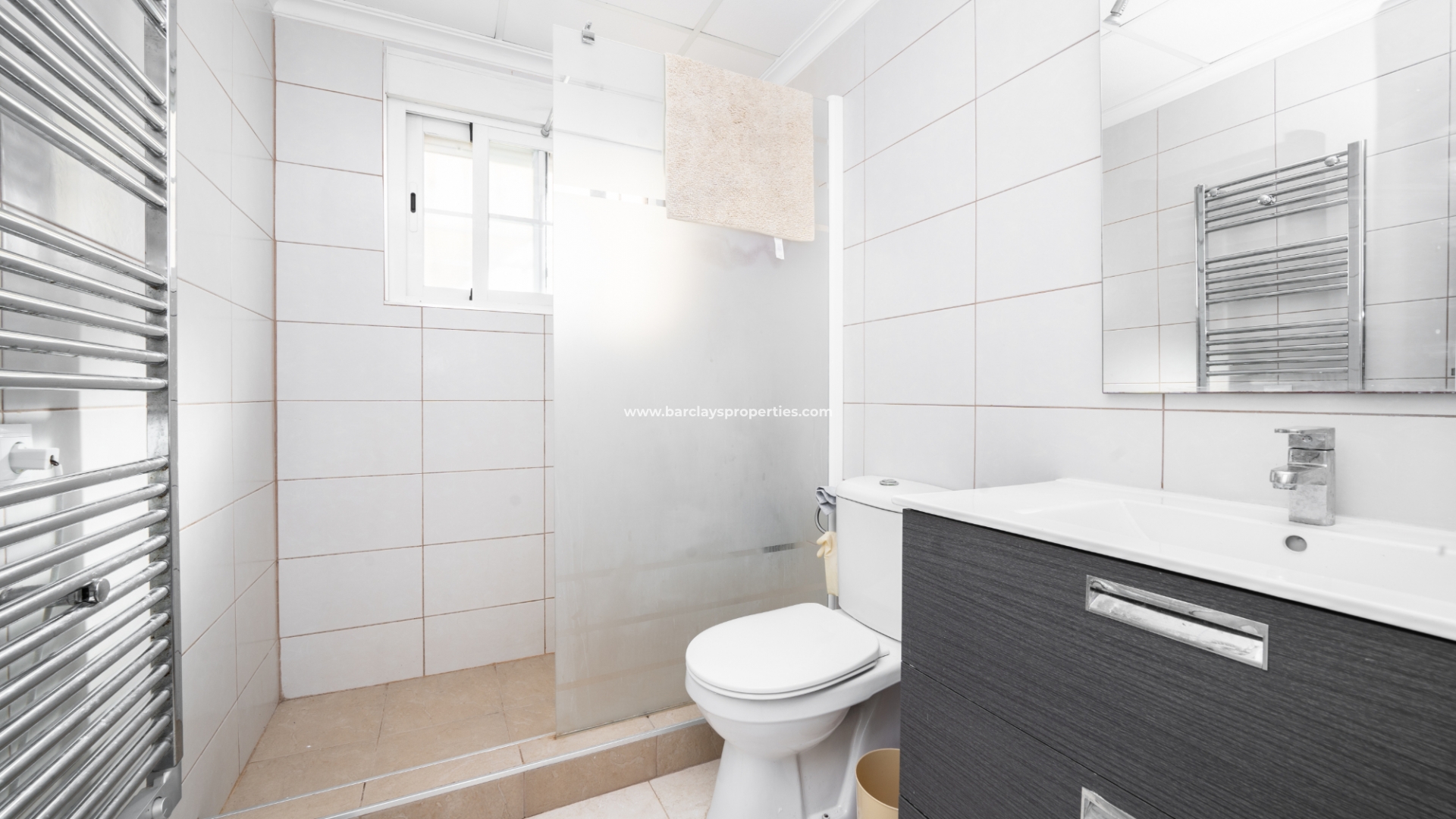 We betreden de volledig betegelde tuin om off-road parkeren, een buitenzitgedeelte en voor liefhebbers van buitenactiviteiten is er een ingebouwde BBQ-ruimte die ideaal is voor entertainment en om van het Spaanse klimaat te genieten. Een opslagschuur aan de achterkant van het huis biedt praktische ruimte voor gereedschap en apparatuur.