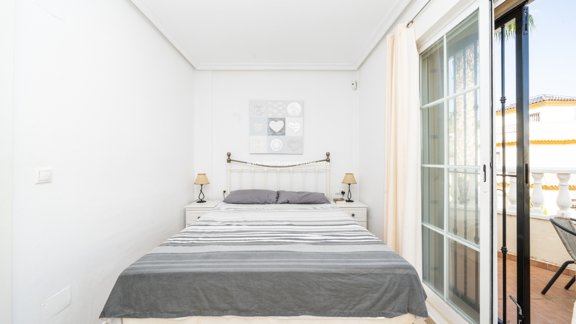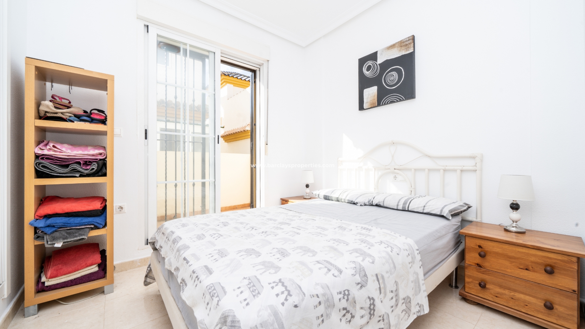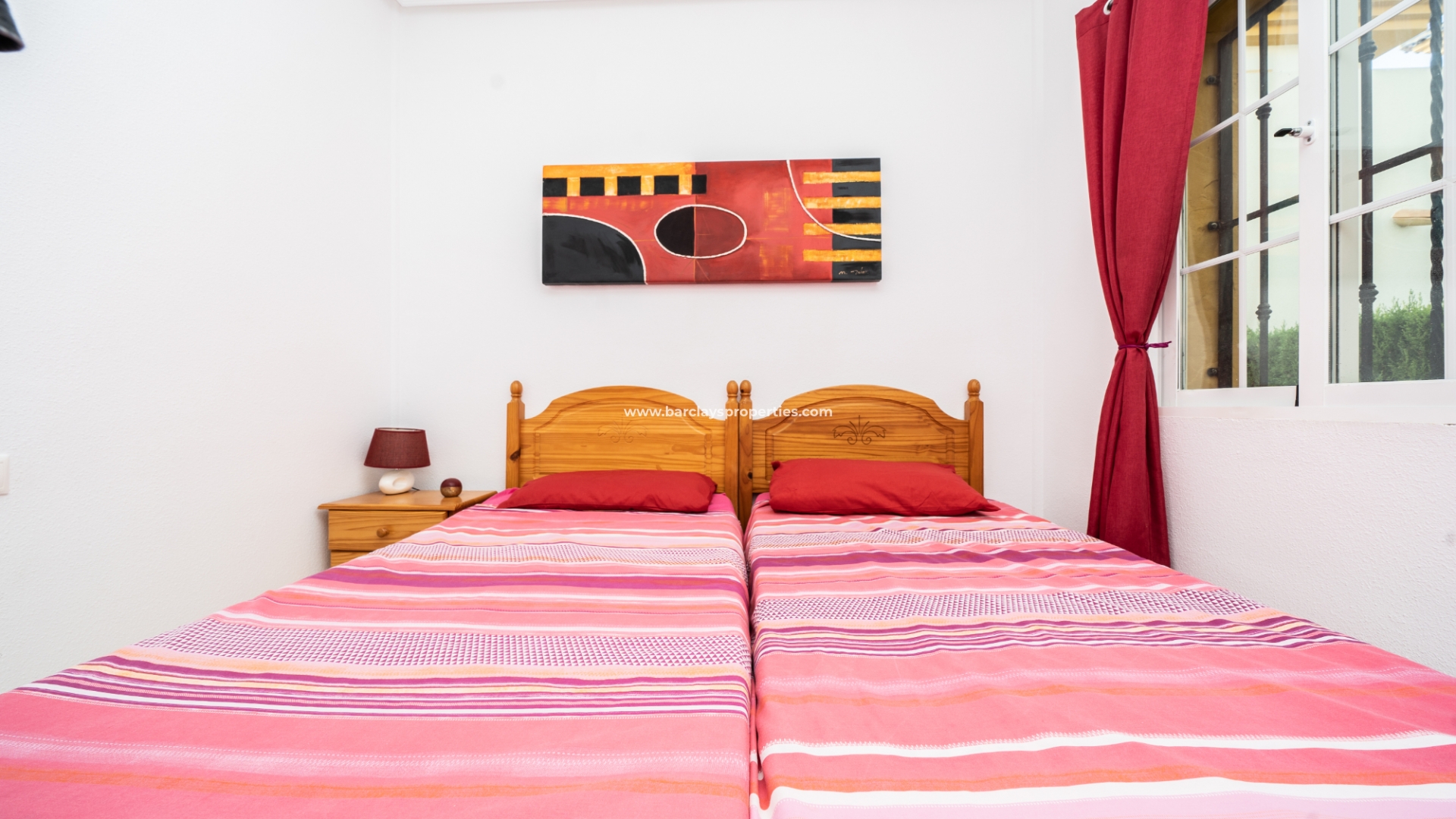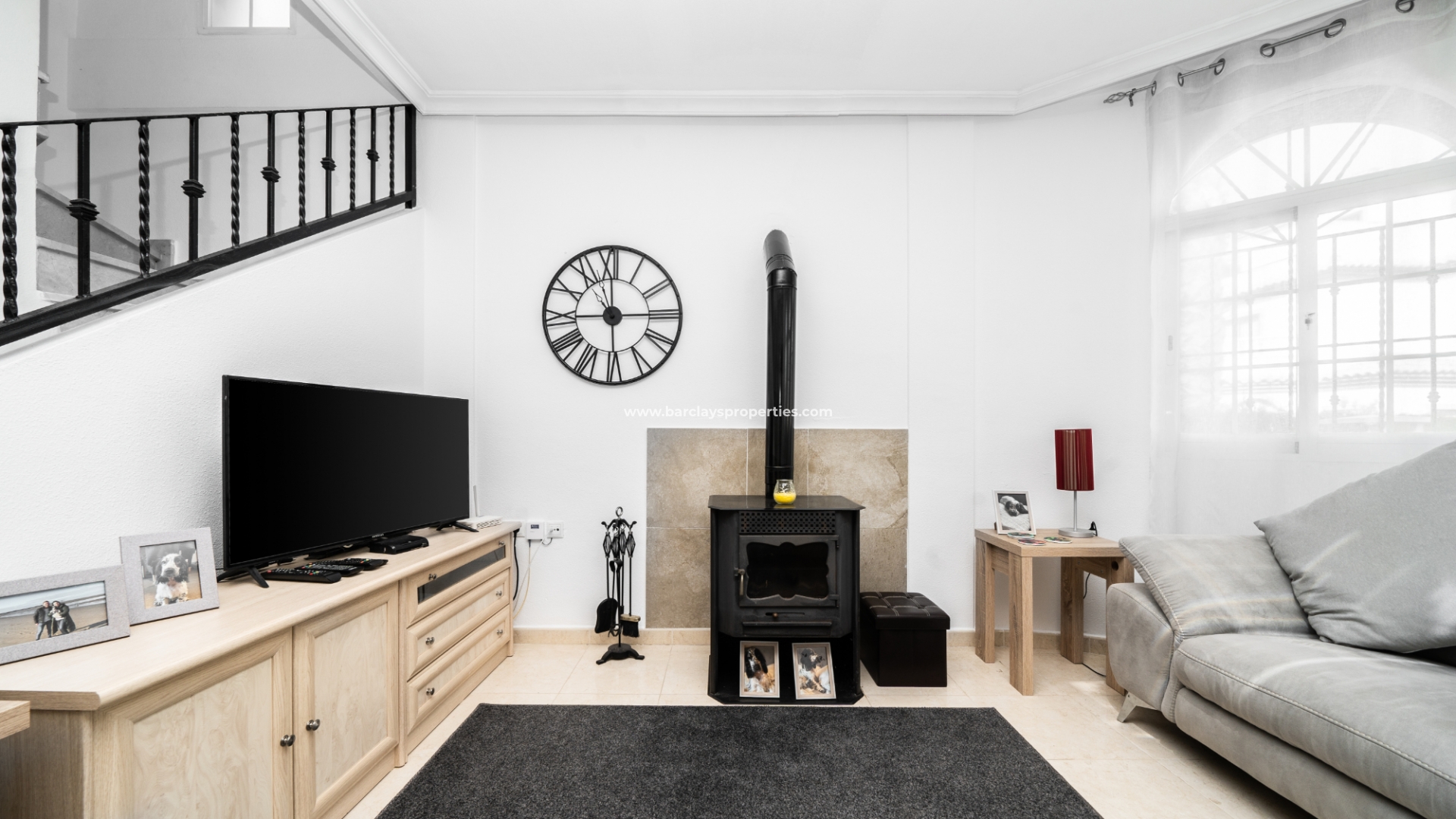 We betreden de volledig betegelde tuin om off-road parkeren, een buitenzitgedeelte en voor liefhebbers van buitenactiviteiten is er een ingebouwde BBQ-ruimte die ideaal is voor entertainment en om van het Spaanse klimaat te genieten. Een opslagschuur aan de achterkant van het huis biedt praktische ruimte voor gereedschap en apparatuur.