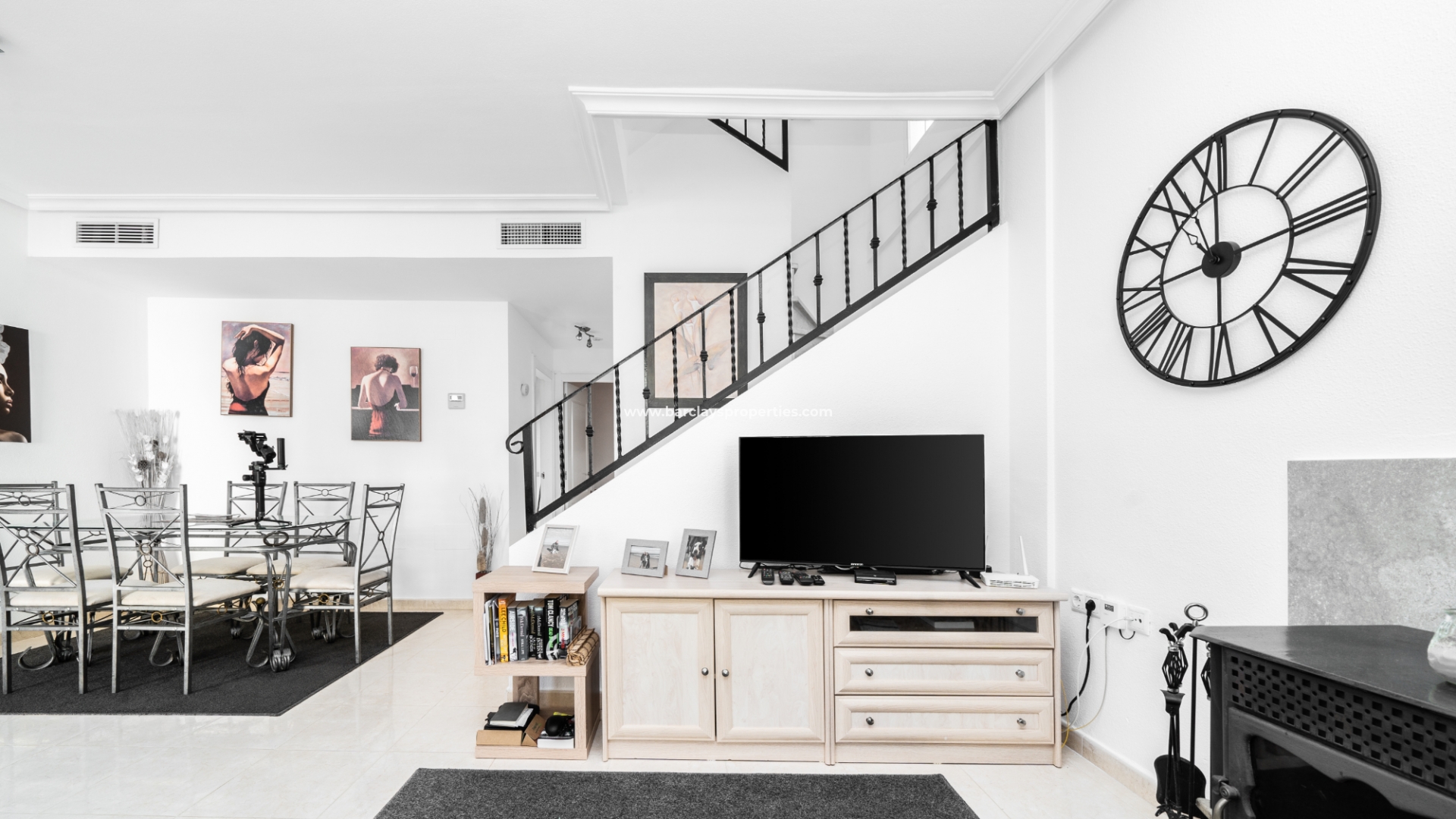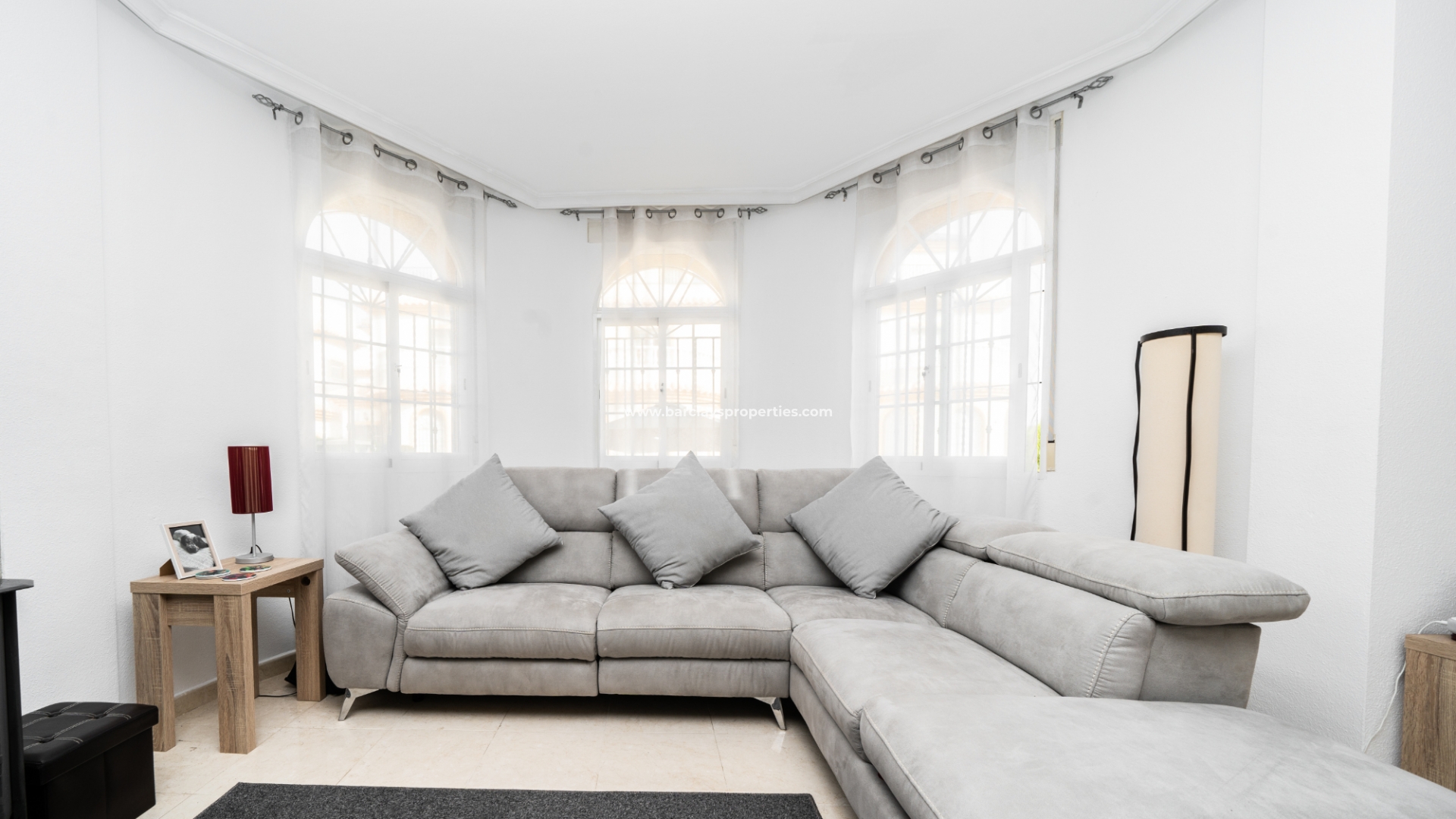 De villa zelf heeft drie slaapkamers en twee badkamers, wat voldoende ruimte biedt voor familieleven of het ontvangen van gasten. Onlangs zowel van binnen als van buiten geschilderd, presenteert de woning een frisse en uitnodigende uitstraling, klaar voor nieuwe bewoners.