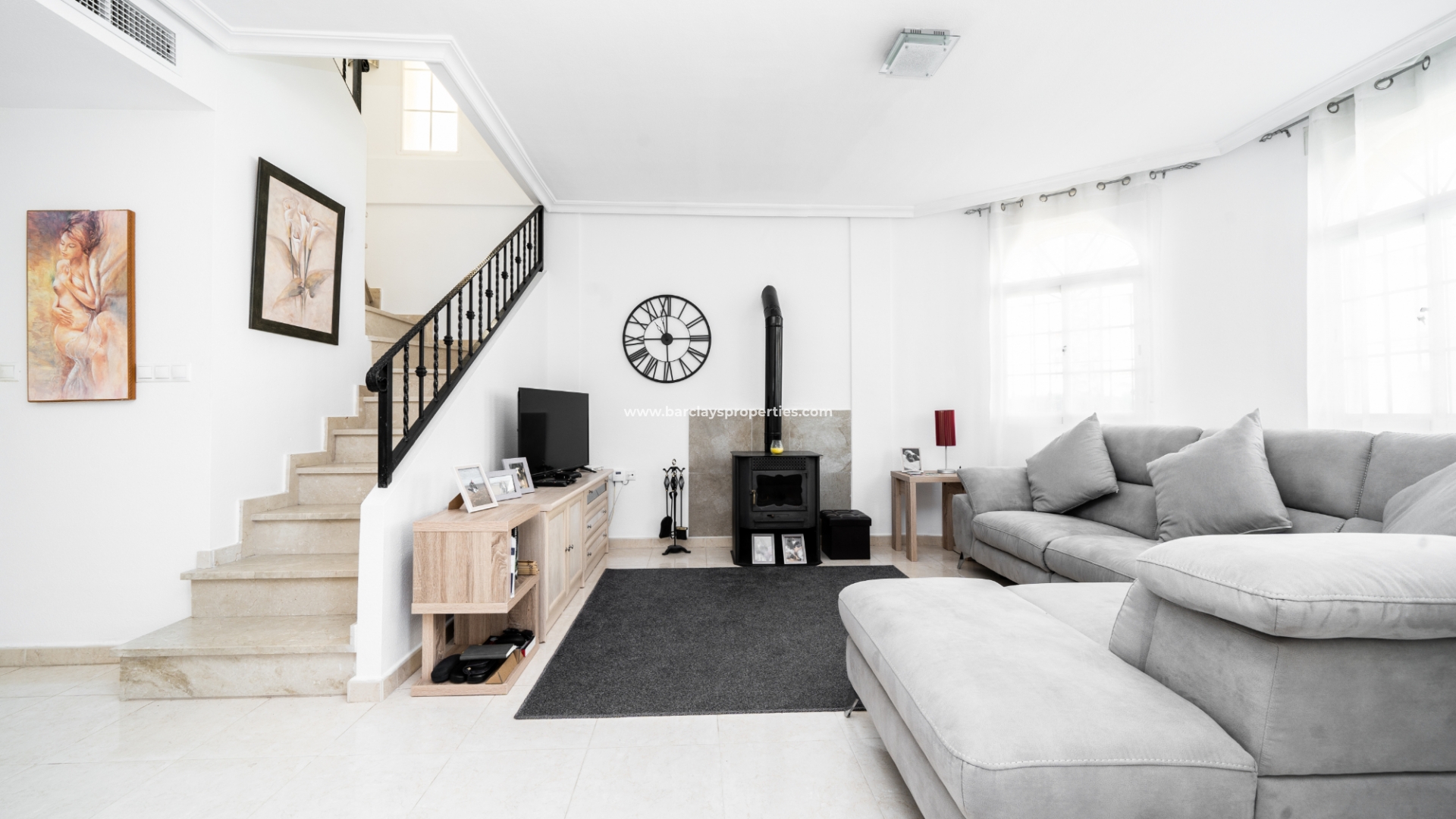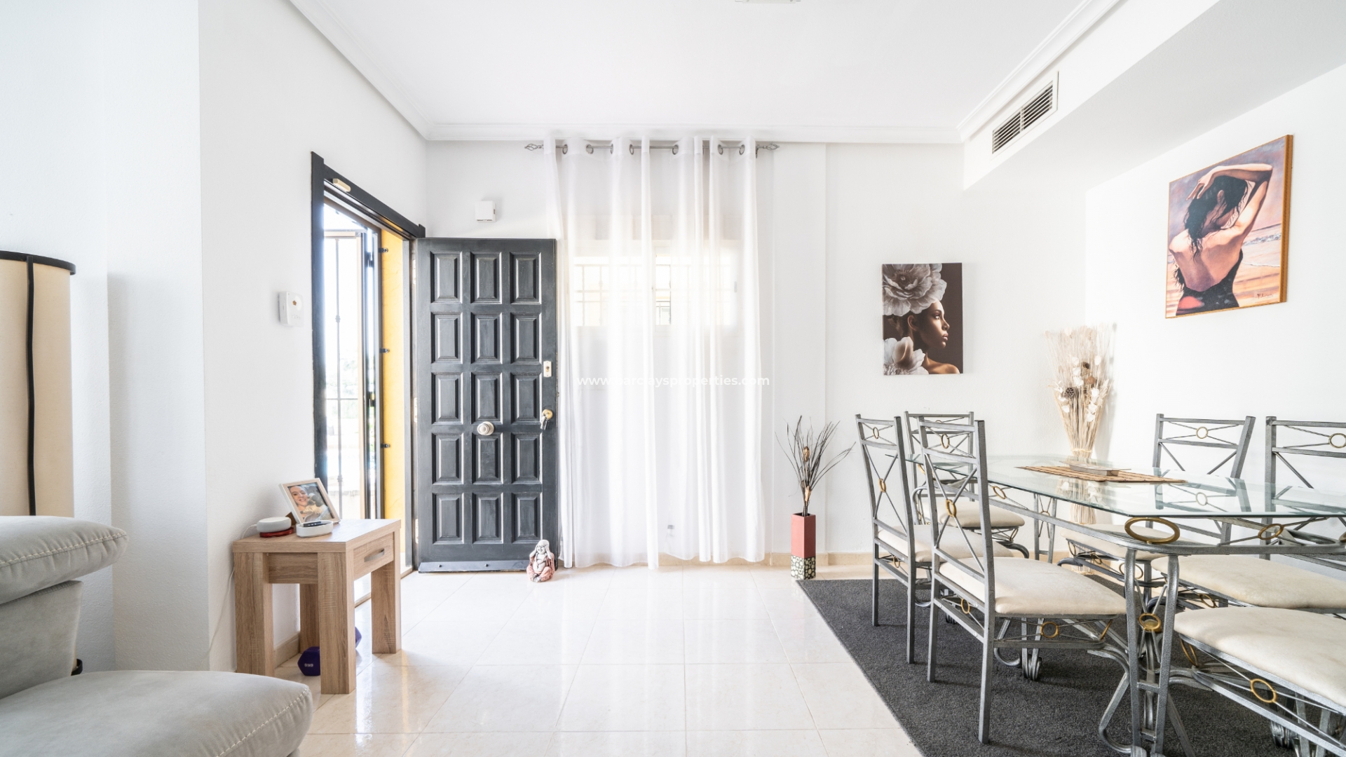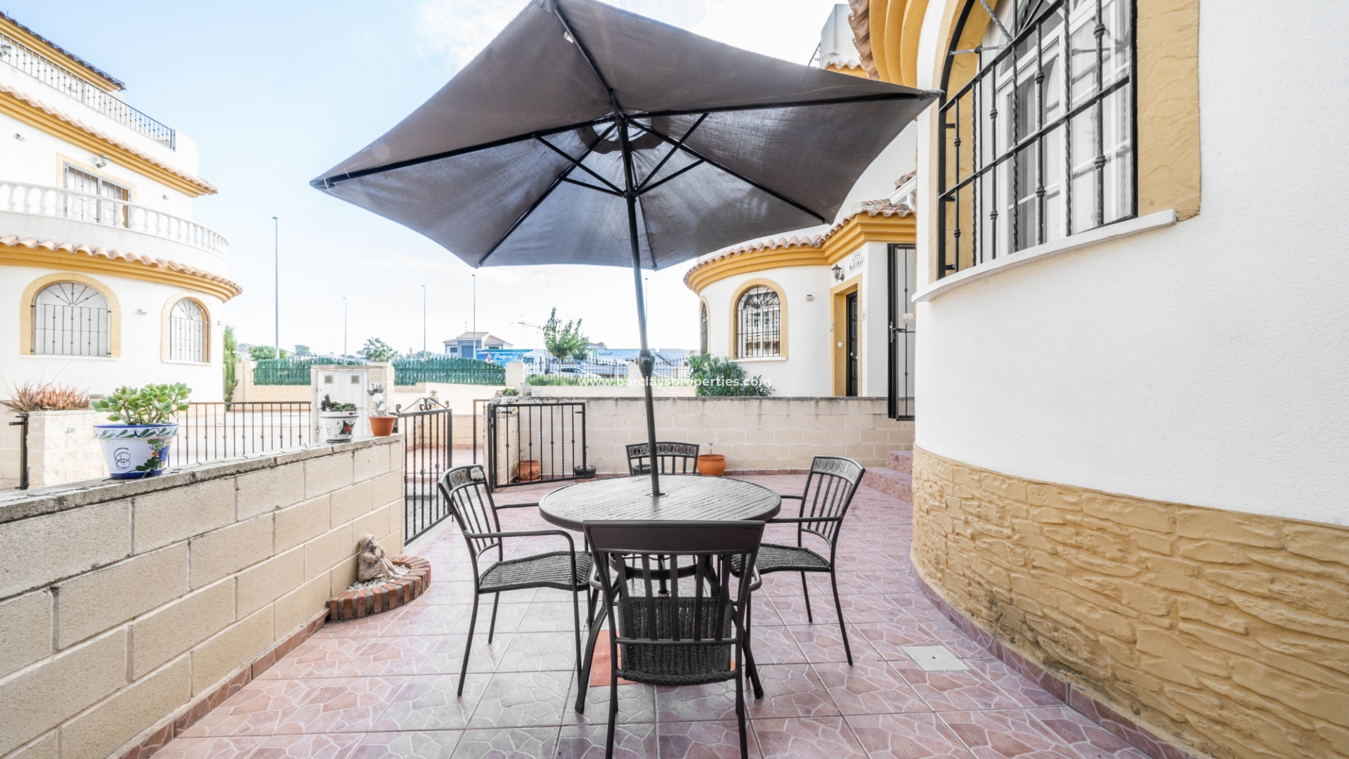 Ontdek een charmante vrijstaande villa, een model "Villas del Palmeral" gelegen in de rustige Urbanisatie El Oasis, grenzend aan de Urbanisatie La Marina in San Fulgencio. Deze woning is een rustig toevluchtsoord, biedt een gastvrije sfeer en handige toegang tot essentiële voorzieningen die op loopafstand te vinden zijn.