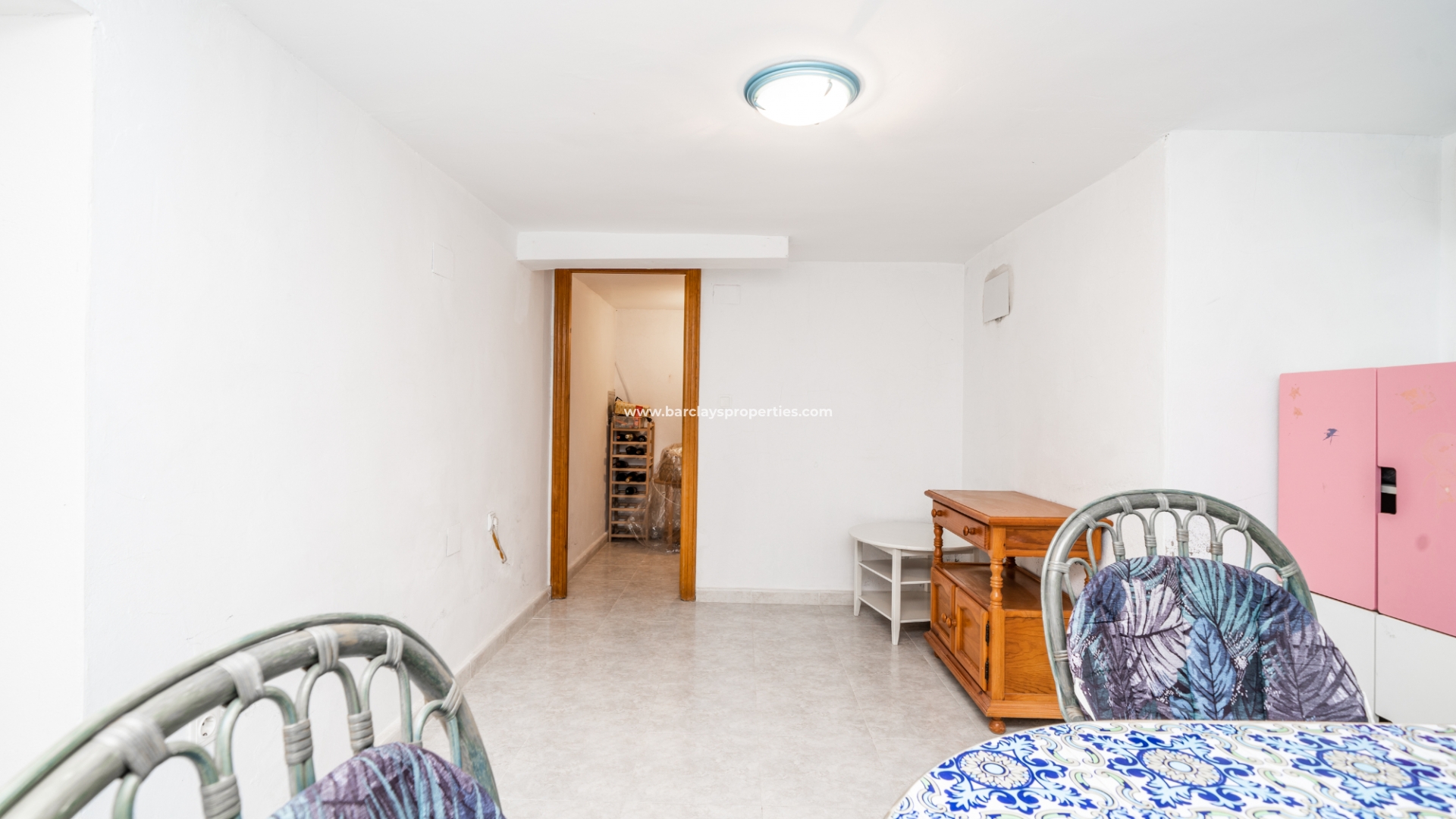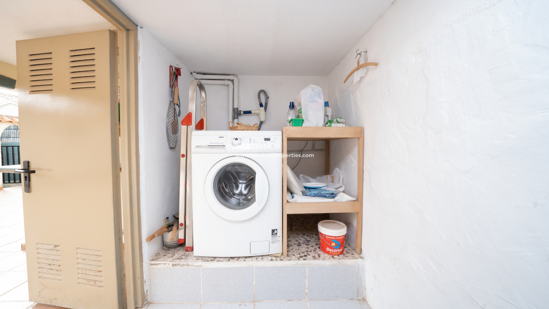 De villa heeft ook een kelder die via de achterkant van het pand bereikbaar is en twee kamers bevat, beide met airconditioning, en twee aparte opslagruimtes. In de kelder bevindt zich een wasruimte met een toilet en wastafel. Bovendien is er een bijkeuken met een wasmachine en extra opslagruimte. Een poort leidt van de achtertuin naar een groen gebied met veel schaduwrijke zitplekken om te ontspannen.