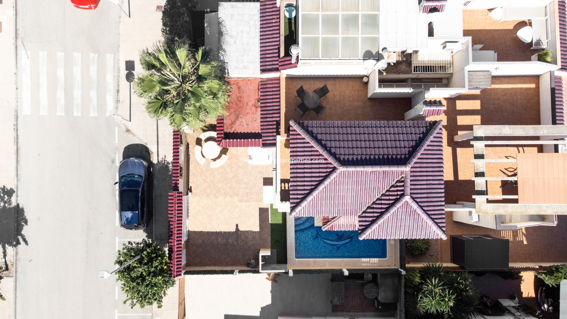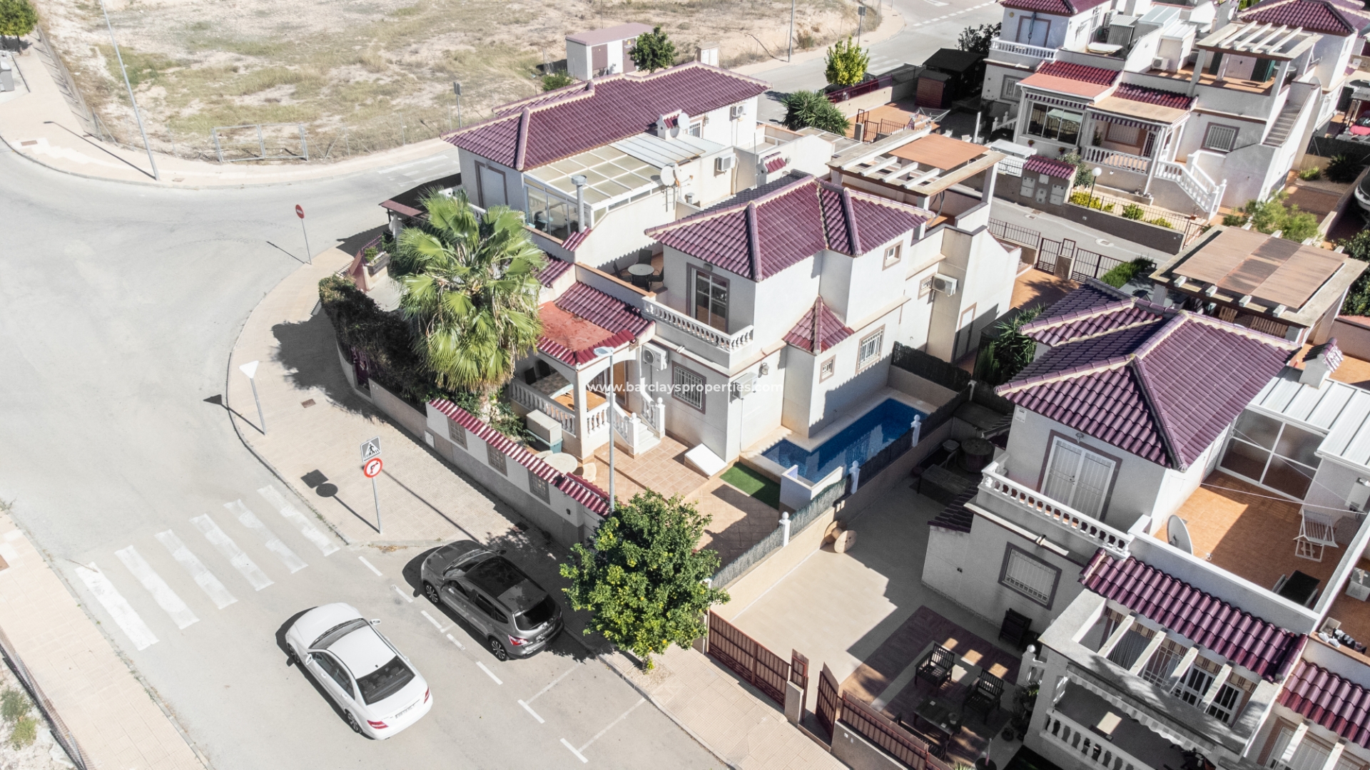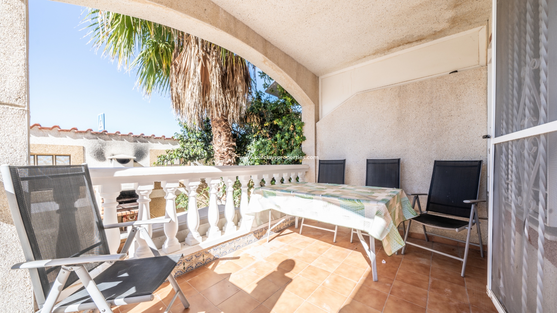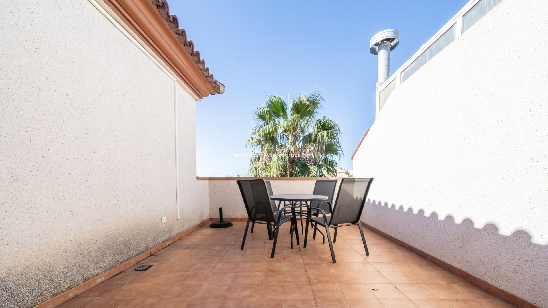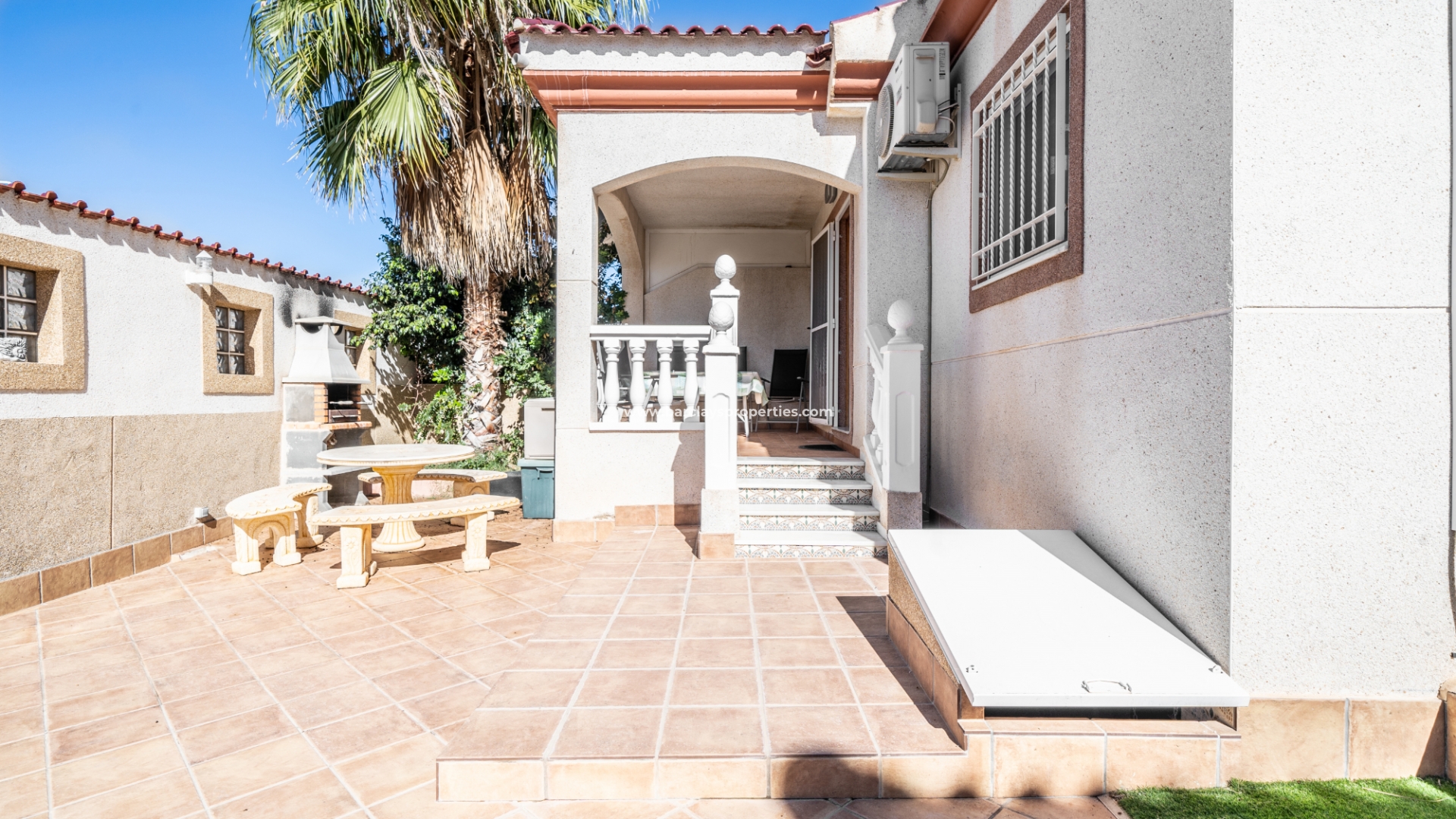 De tuin is volledig bestraat, wat betekent dat deze weinig onderhoud vergt. Ondanks het gemeenschappelijke zwembad heeft de woning het extra voordeel van een eigen privézwembad ☀ in de tuin met een kunstgrasgebied, ideaal om te zonnebaden, en een buitendouche om af te spoelen. Er is een parkeerplaats buiten de weg met elektrische poorten en een mooie barbecueplaats met een tafel en stoelen van natuursteen om in de buitenlucht te dineren.