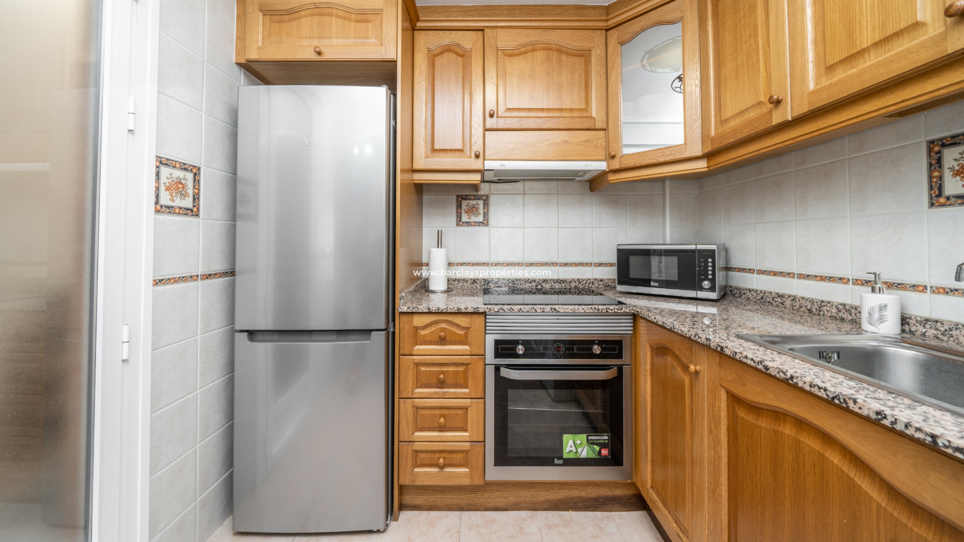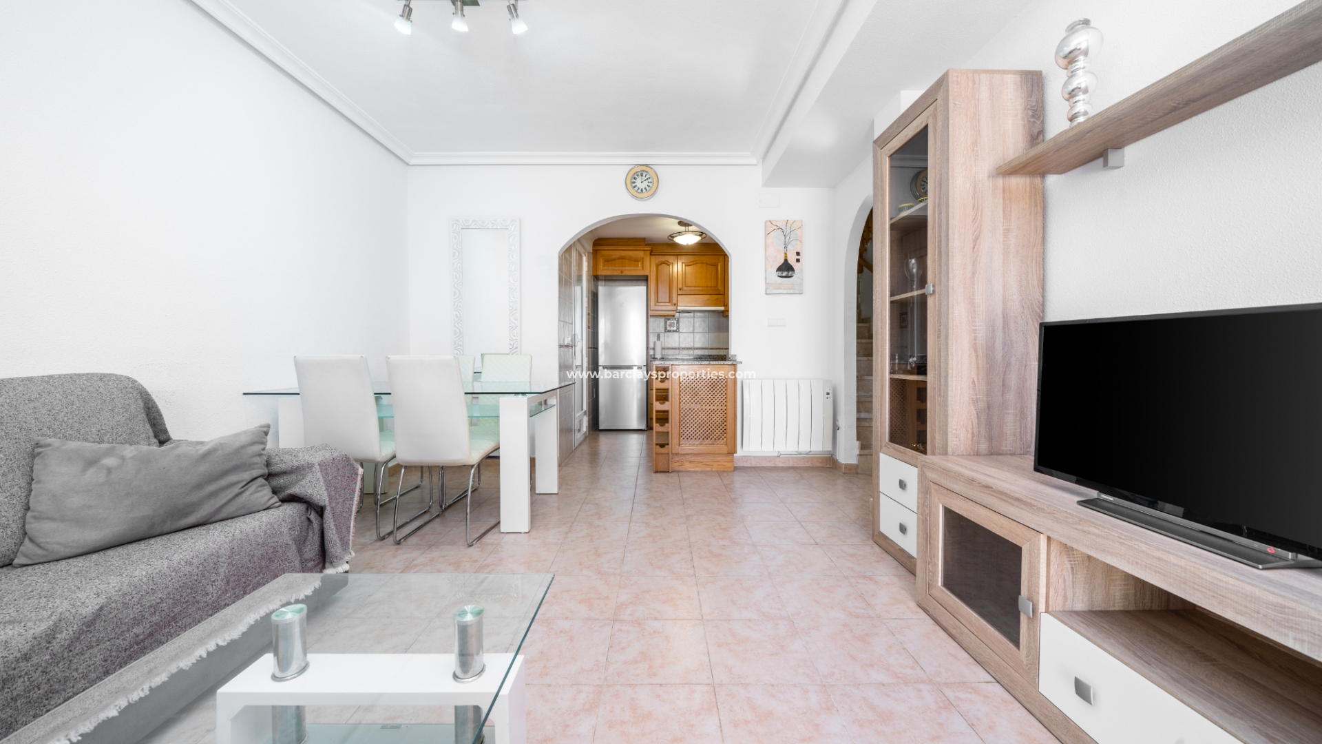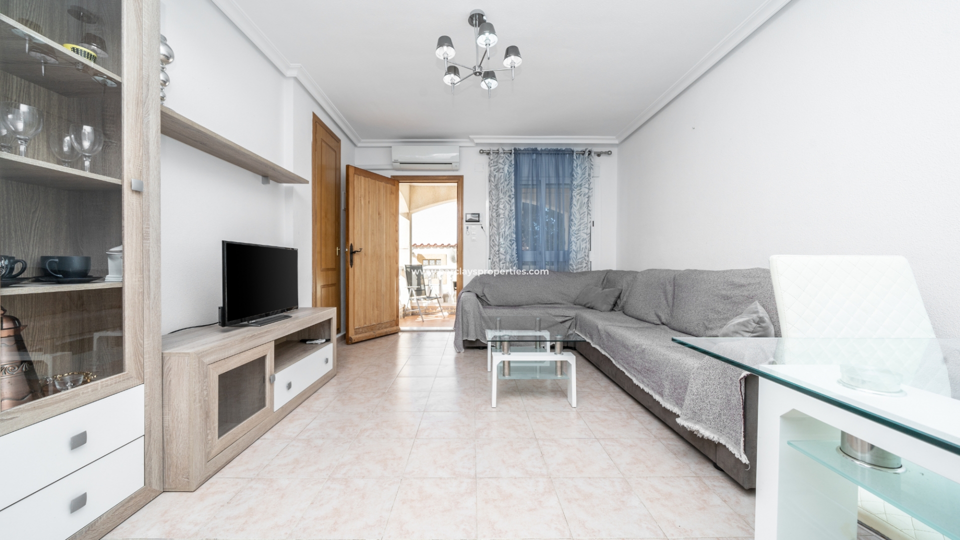 Hier introduceren we deze zuidwestelijk georiënteerde woning van het model "Elena", gelegen in een besloten gemeenschap in een rustige omgeving binnen de urbanisatie La Marina. Voor wie van het strand houdt, ligt het op slechts 5 minuten rijden van de gouden stranden van "Playas La Marina", en de luchthaven van Alicante-Elche bevindt zich op slechts 20 minuten rijden van de woning.