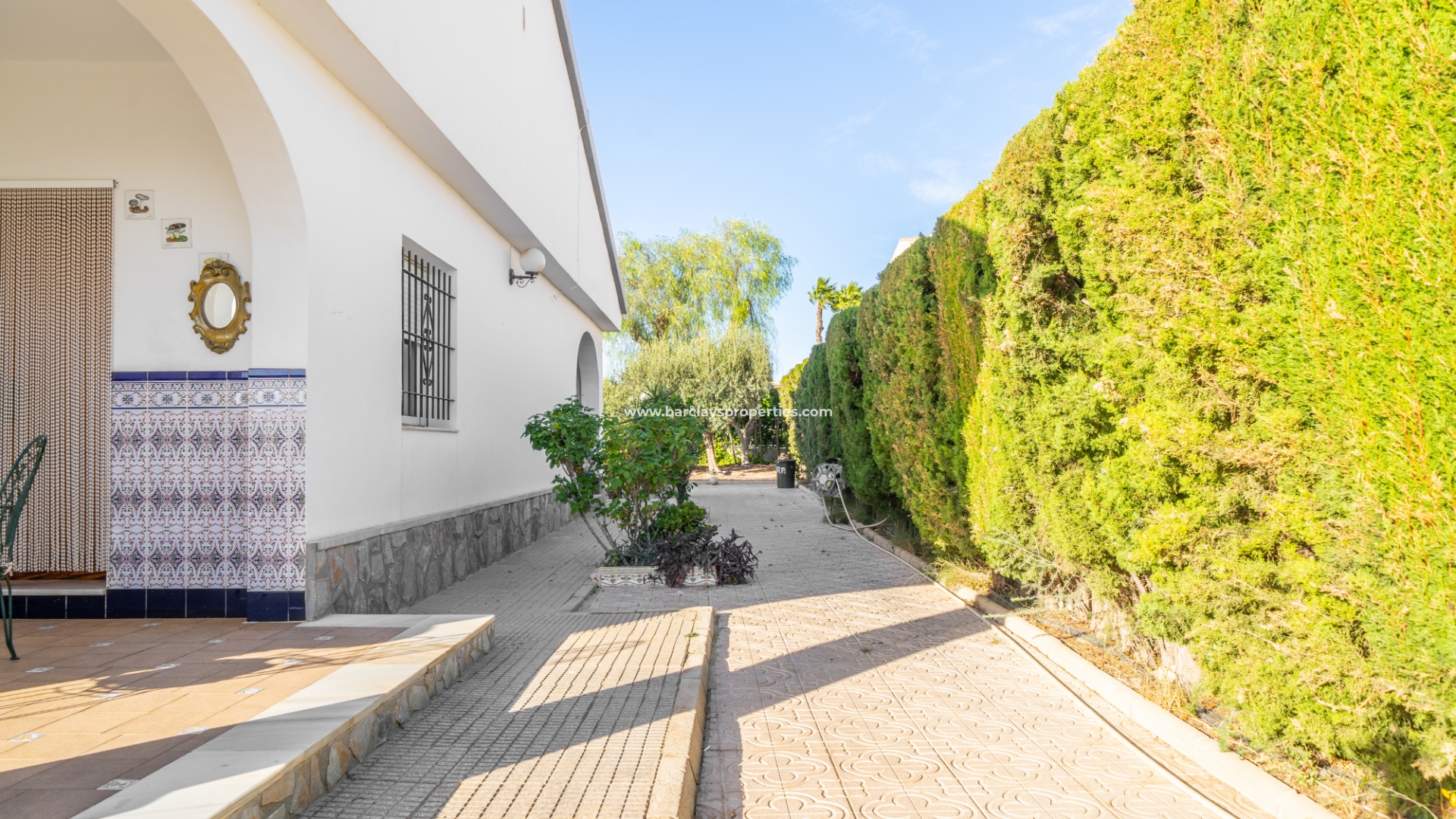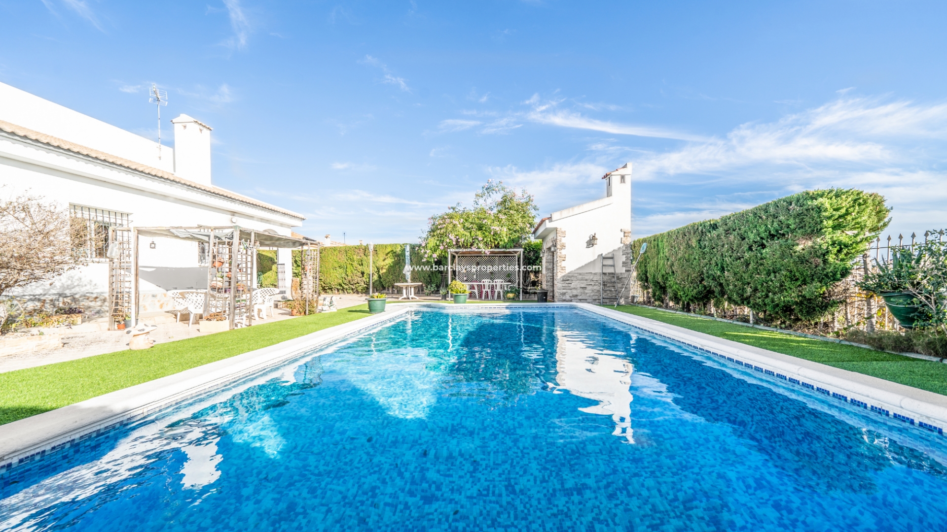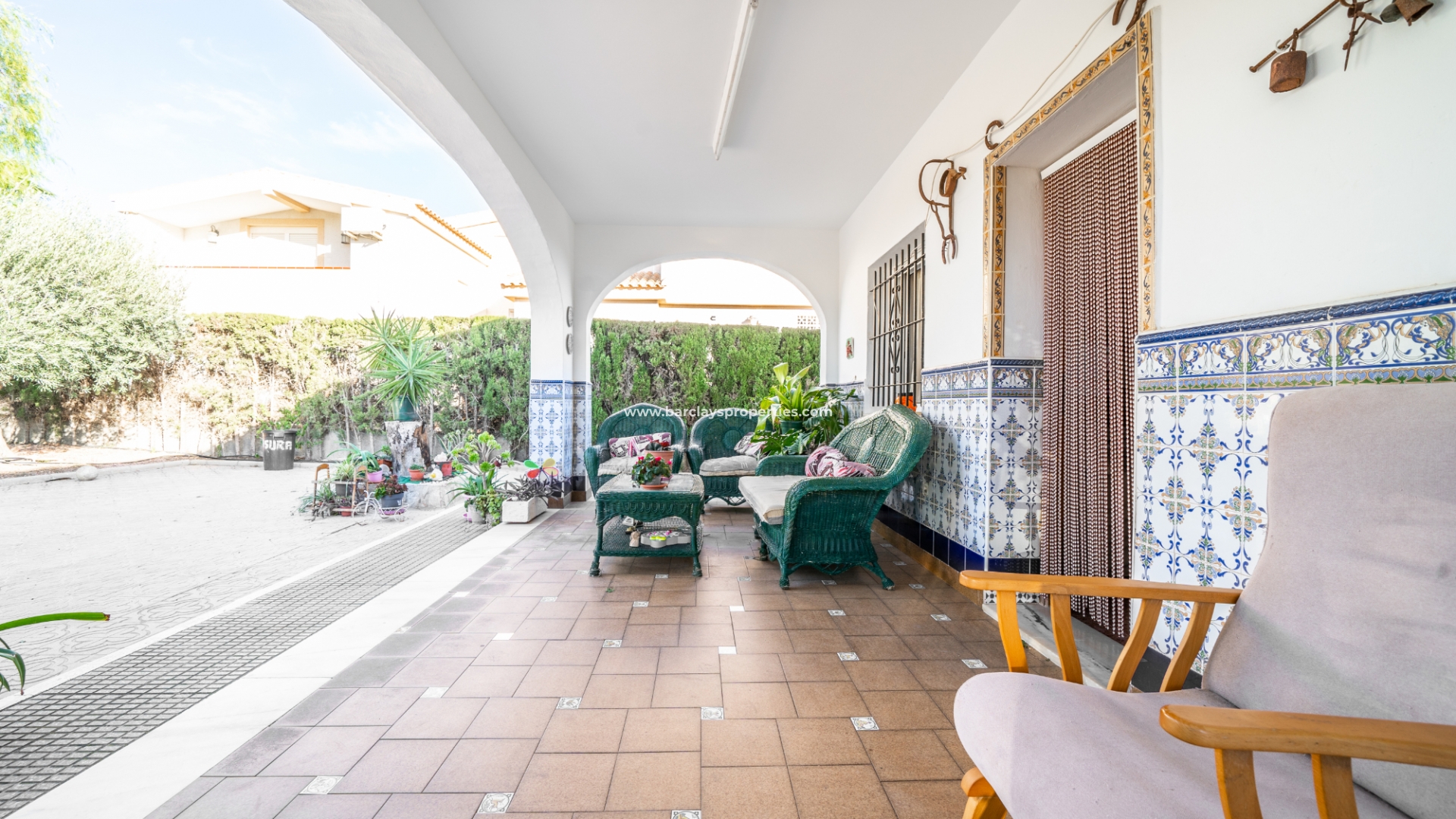 Deze ruime villa, gelegen in het rustige gebied van La Marina, biedt een unieke kans om een stukje mediterraans paradijs te bezitten. Met vier slaapkamers en twee badkamers is deze deels gemeubileerd woning een toonbeeld van comfort en stijl. Vanaf het moment dat u het terrein betreedt, zult u worden betoverd door zijn serene charme.