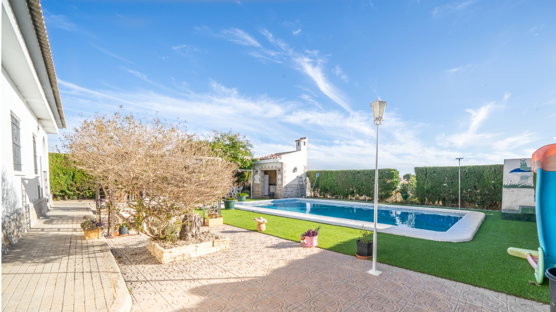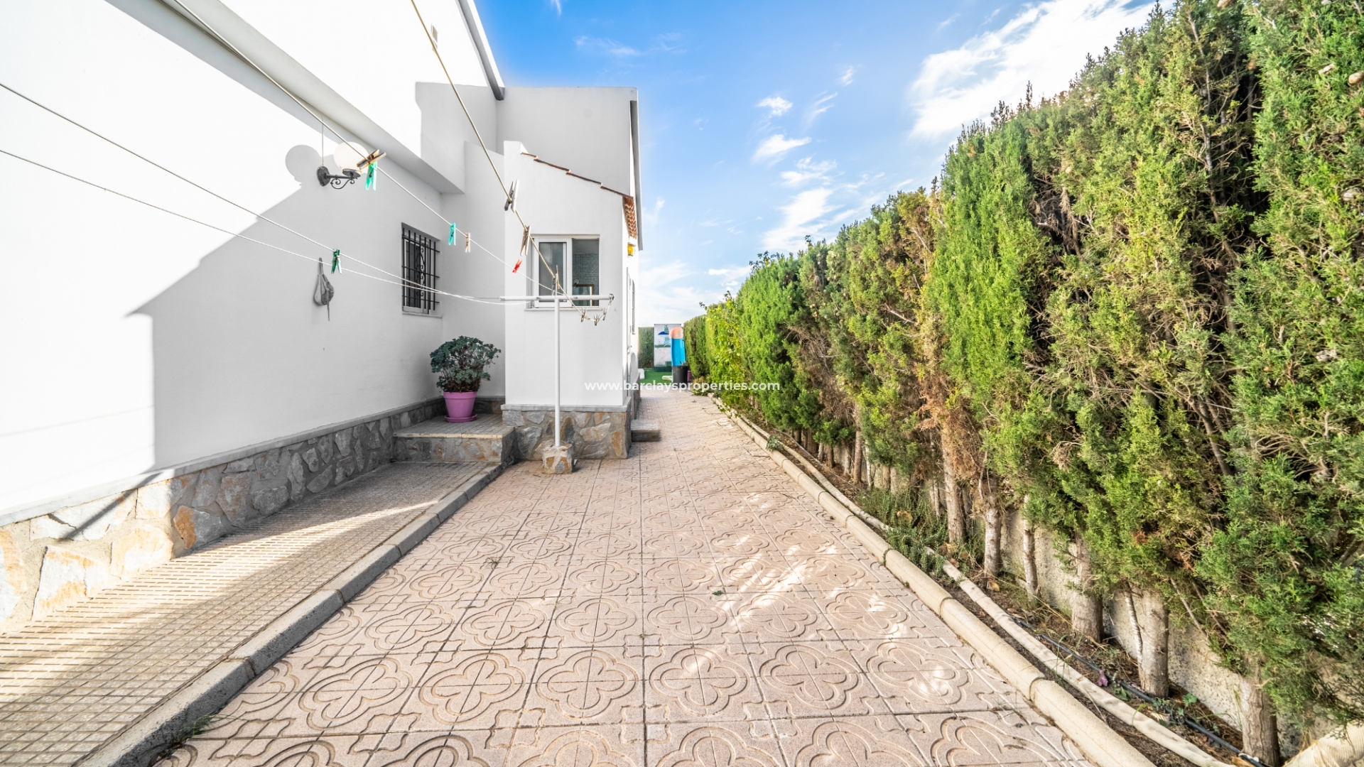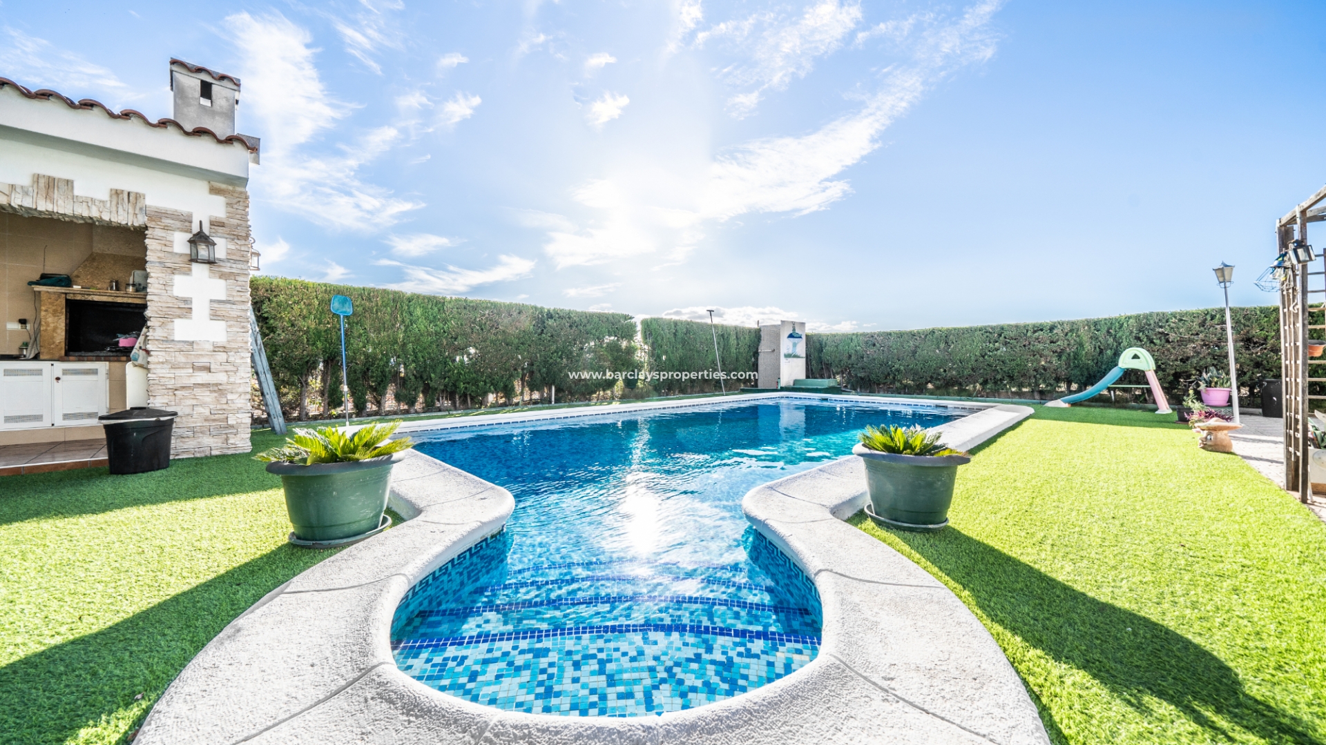 Deze ruime villa, gelegen in het rustige gebied van La Marina, biedt een unieke kans om een stukje mediterraans paradijs te bezitten. Met vier slaapkamers en twee badkamers is deze deels gemeubileerd woning een toonbeeld van comfort en stijl. Vanaf het moment dat u het terrein betreedt, zult u worden betoverd door zijn serene charme.