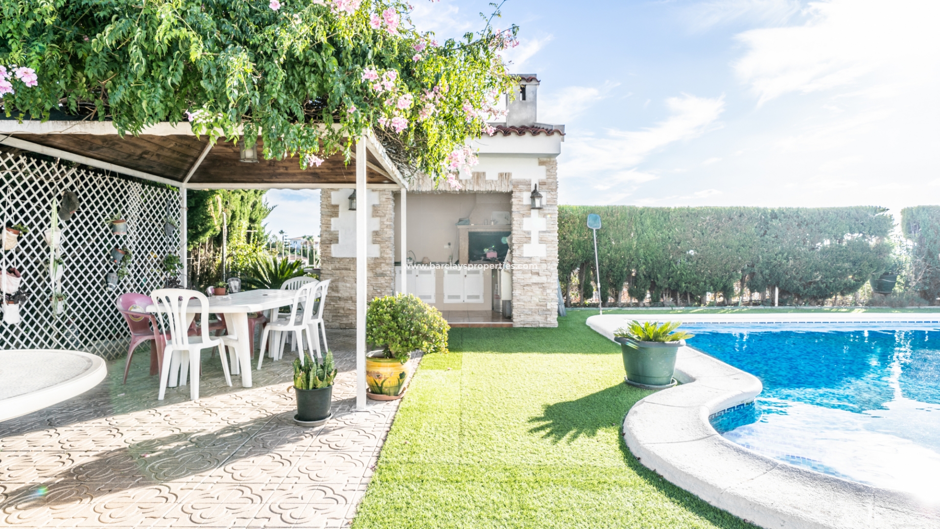 Samengevat is deze villa in La Marina een werkelijk uitzonderlijke woning die het beste combineert van binnen- en buitenwonen. Van het privézwembad en de weelderige tuinen tot de buitenkeuken en de ruime interieurs, het biedt een elegante en ontspannen levensstijl. Mis deze kans niet om het uwe te maken en te genieten van de schoonheid van de Middellandse Zee in uw eigen huis.