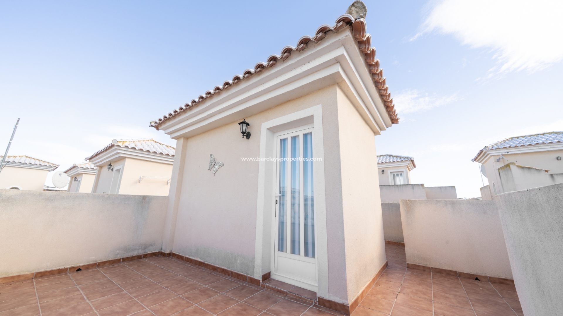 We zijn verheugd om dit vrijstaande model "Villas del Palmeral" te presenteren, gelegen in een afgesloten privégemeenschap met toegang tot een groot goed onderhouden ✅ gemeenschappelijk zwembad.