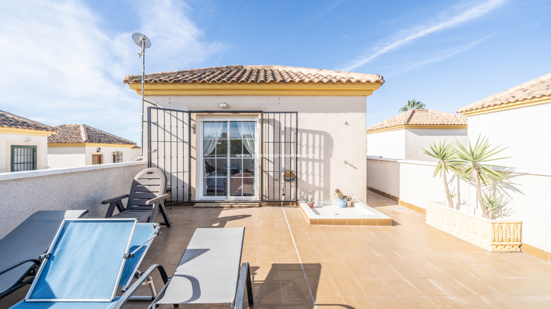 Deze woning in Urb. La Marina, San Fulgencio, biedt een ✅ toplocatie, op slechts 5 minuten rijden van het strand en op 20 minuten van de luchthaven van Alicante. De woning maakt deel uit van een privégemeenschap met toegang tot een goed onderhouden gemeenschappelijk zwembad en tuinen, zodat bewoners kunnen genieten van een gebied om te socializen, fit te blijven en gewoon te ontspannen. Dit model "Sierra Villas" is gunstig gelegen op 10 minuten lopen van het populaire winkelgebied "Consum Square" en op slechts enkele minuten lopen van het openbare sportterrein met een uitstekende selectie van recreatieve faciliteiten, waaronder voetbalvelden, tennis, padel, tafeltennis, een buitenfitnessruimte en voor de kleintjes een kinderspeelplaats.