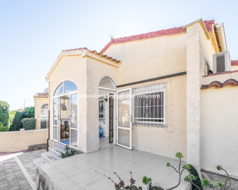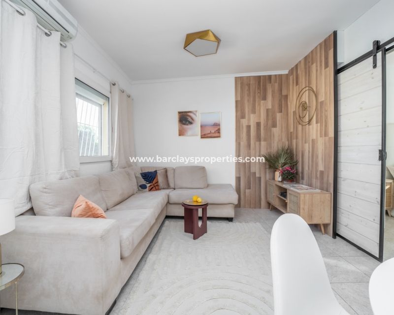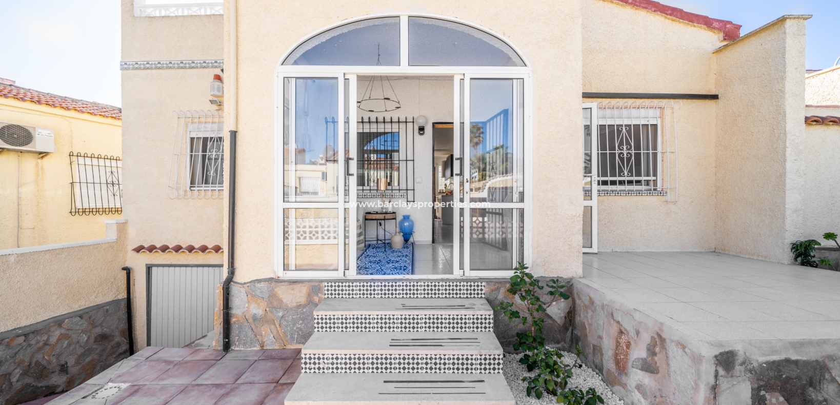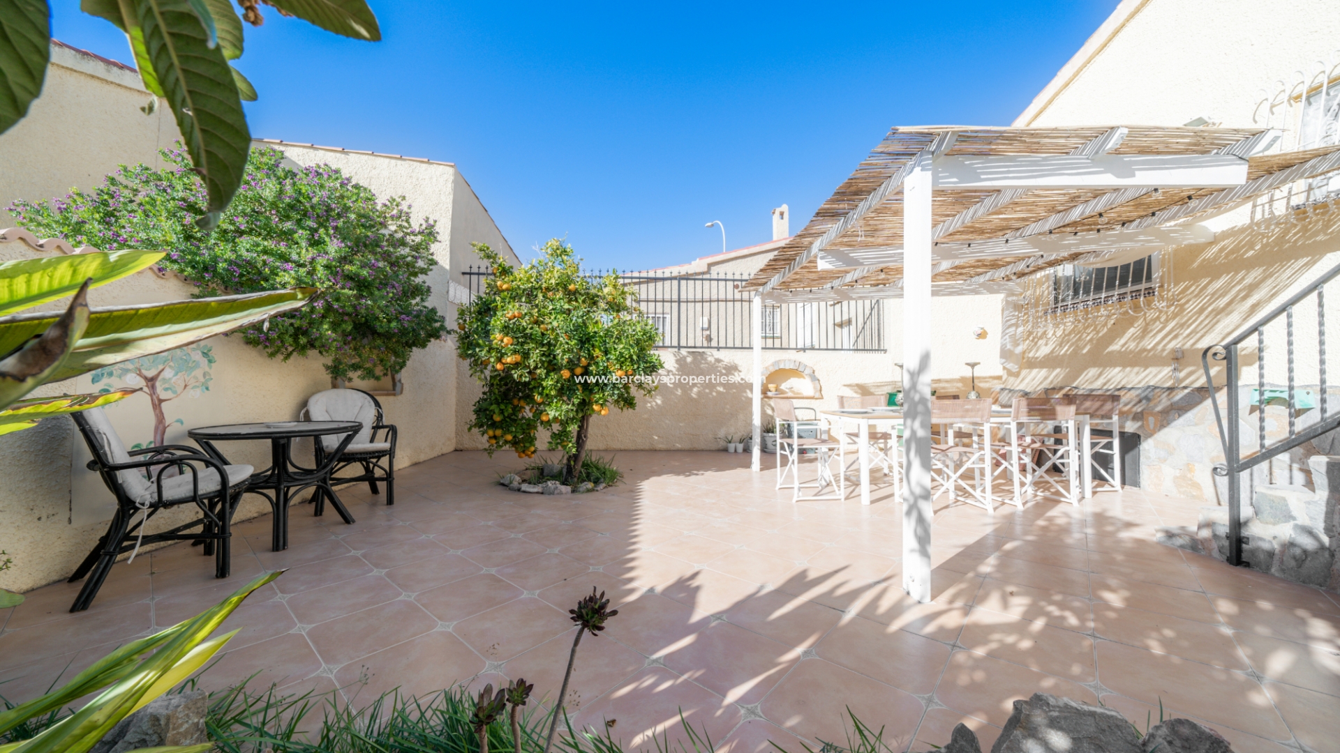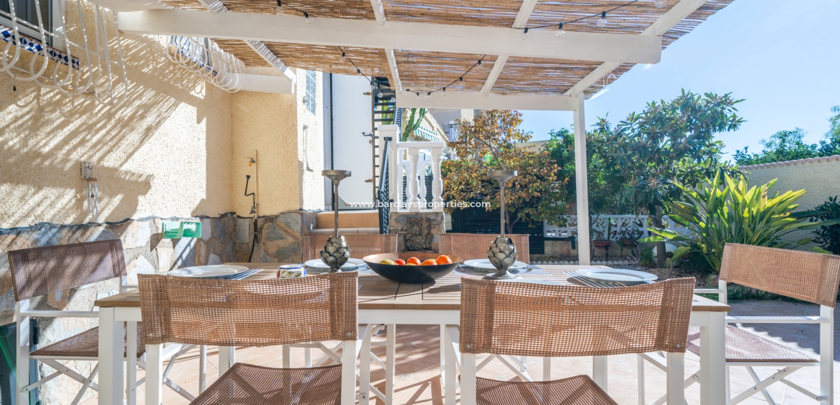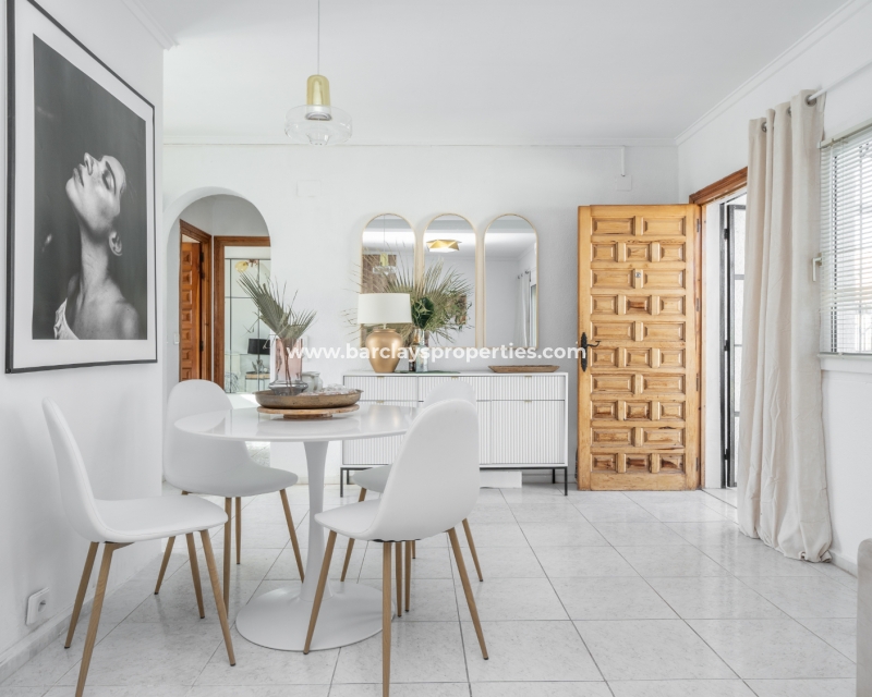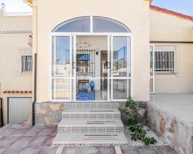 Gelegen in de gewilde Urbanisatie La Marina in San Fulgencio, biedt deze vrijstaande villa een harmonieuze mix van comfort en elegantie. In een oostelijke positie is deze villa van het Rosa-model strategisch gelegen, op slechts ✅2 minuten lopen van voorzieningen, op 5 minuten rijden van het strand en een handige 20 minuten rijden van de luchthaven. Deze woning is uitgebreid en combineert naadloos functionaliteit, stijl en nabijheid van belangrijke voorzieningen.