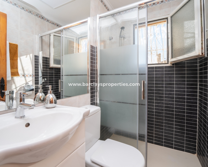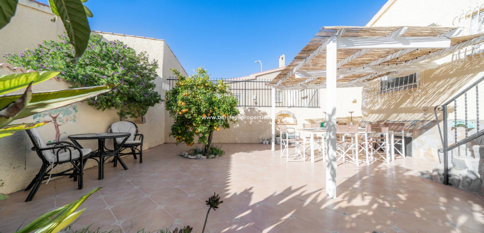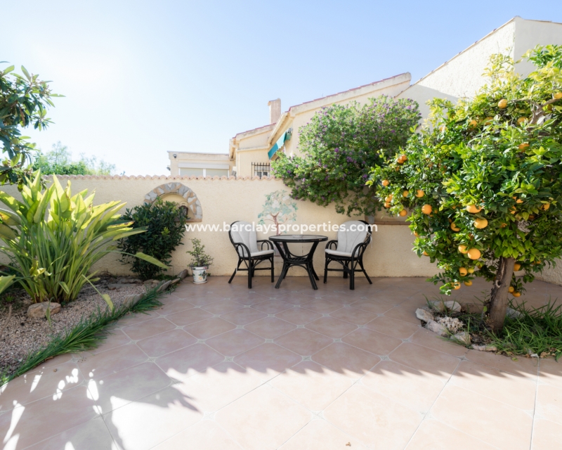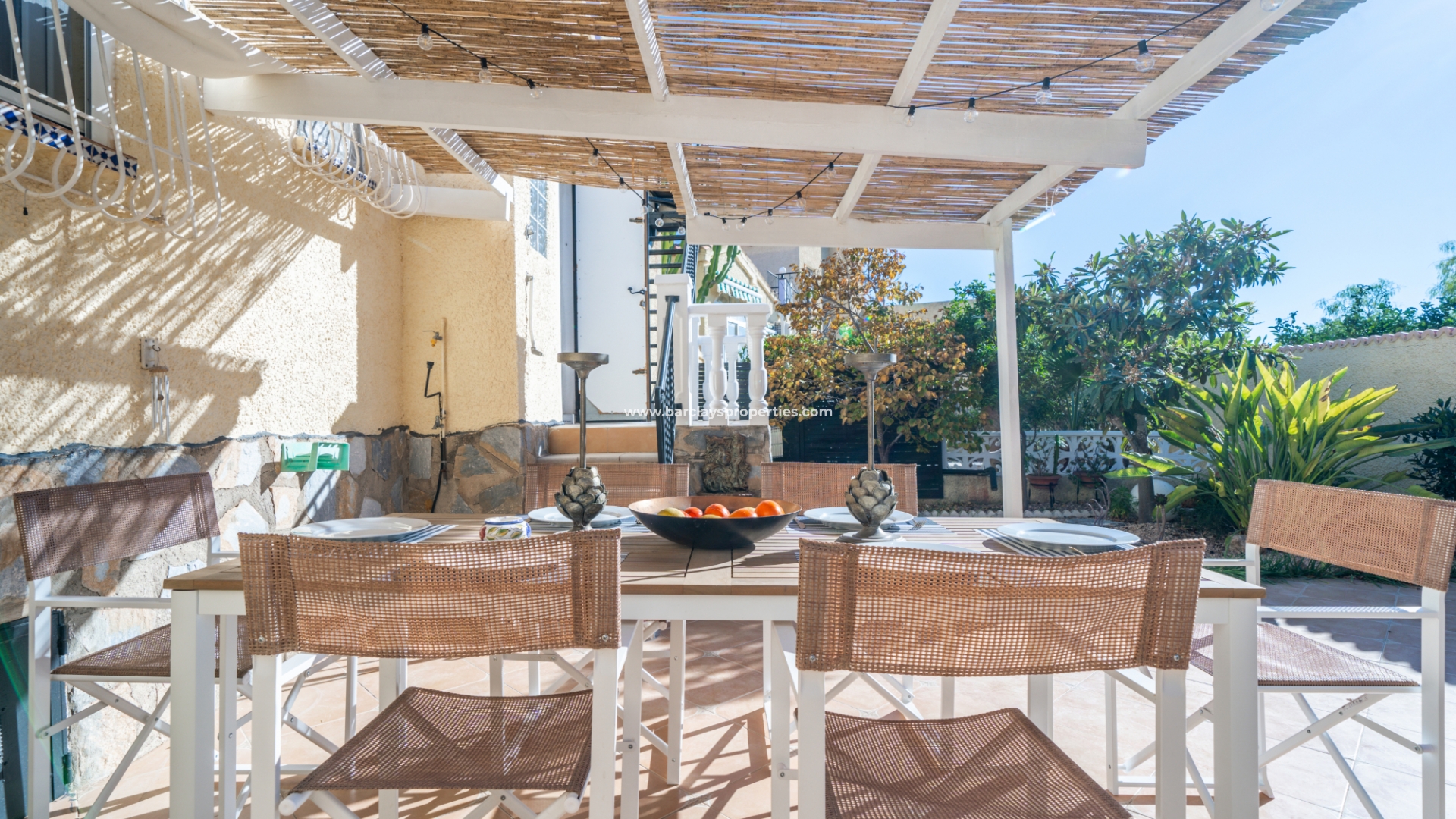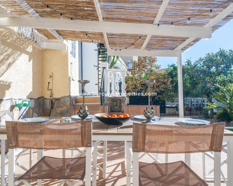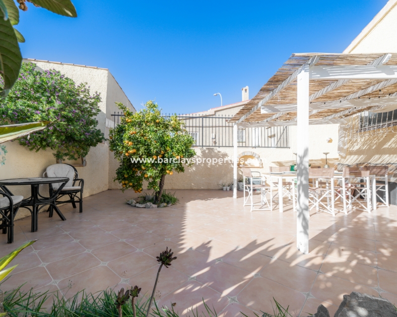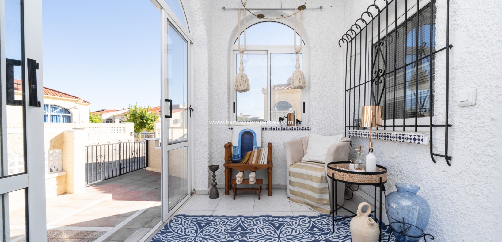 Gelegen in de gewilde Urbanisatie La Marina in San Fulgencio, biedt deze vrijstaande villa een harmonieuze mix van comfort en elegantie. In een oostelijke positie is deze villa van het Rosa-model strategisch gelegen, op slechts ✅2 minuten lopen van voorzieningen, op 5 minuten rijden van het strand en een handige 20 minuten rijden van de luchthaven. Deze woning is uitgebreid en combineert naadloos functionaliteit, stijl en nabijheid van belangrijke voorzieningen.