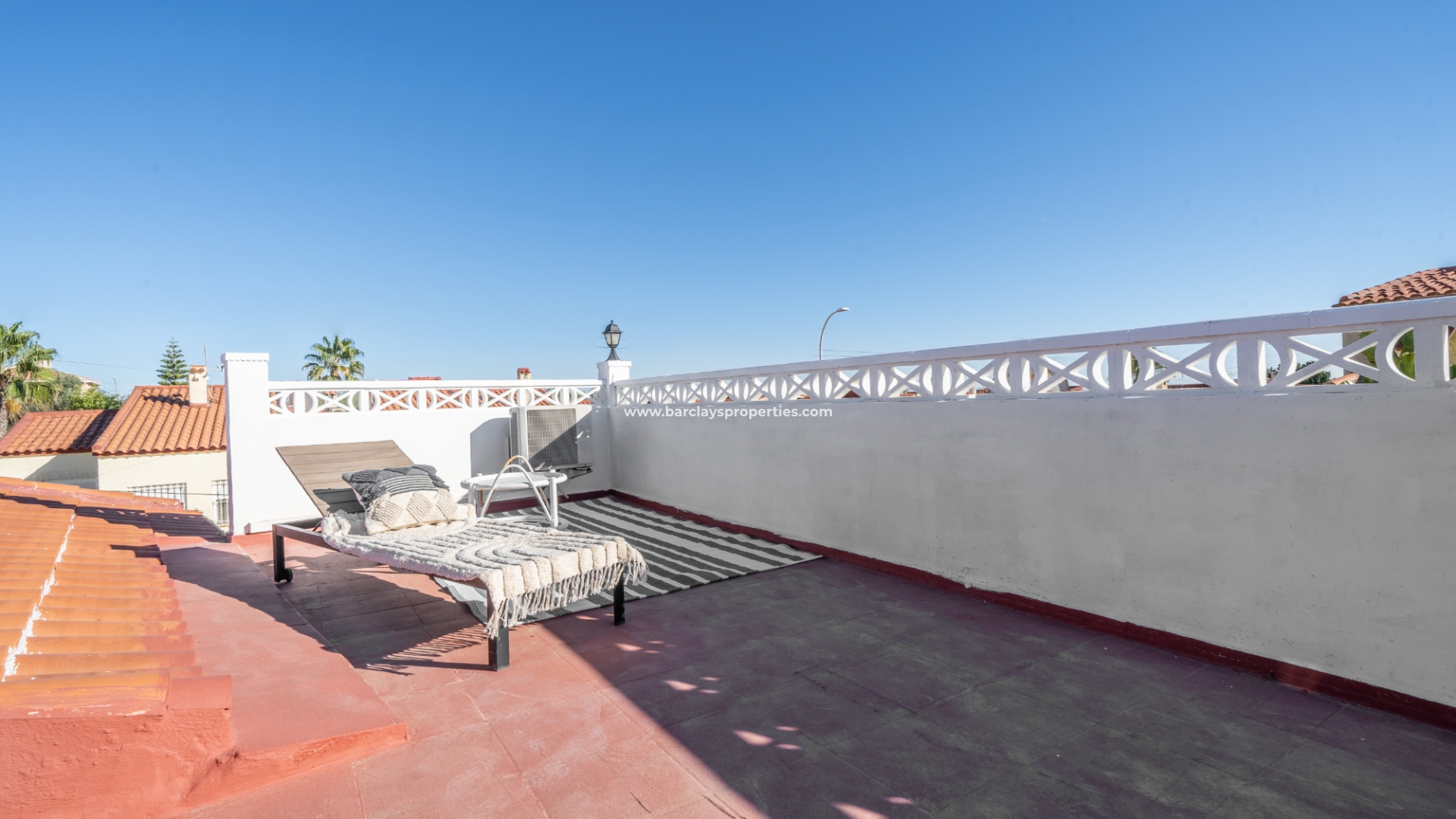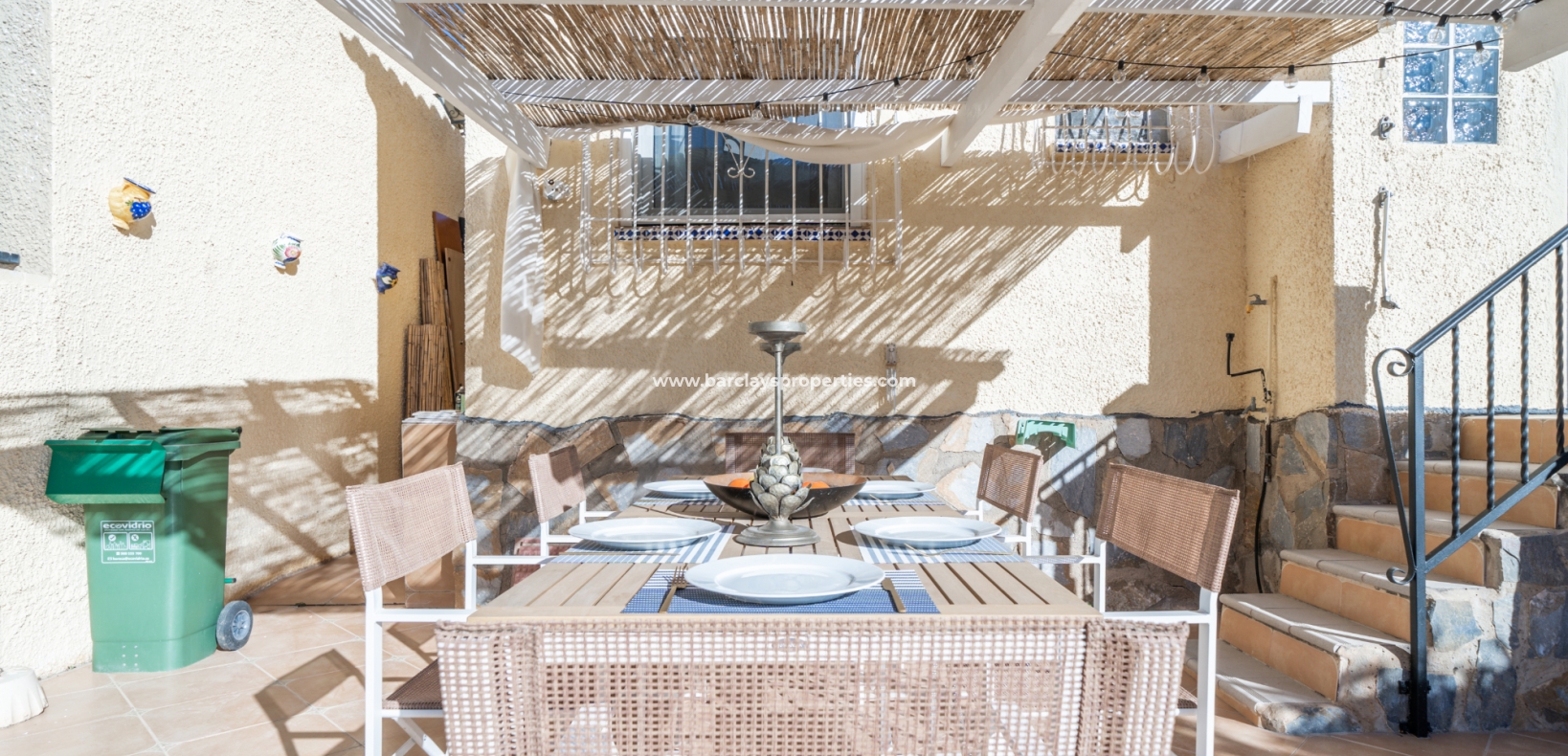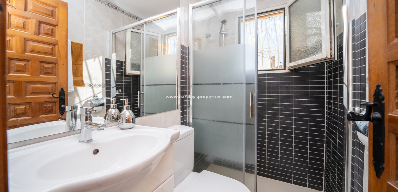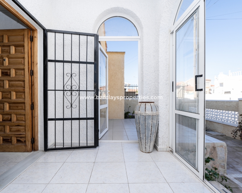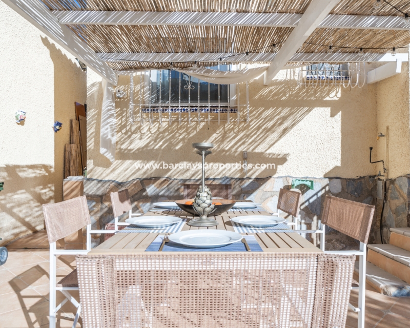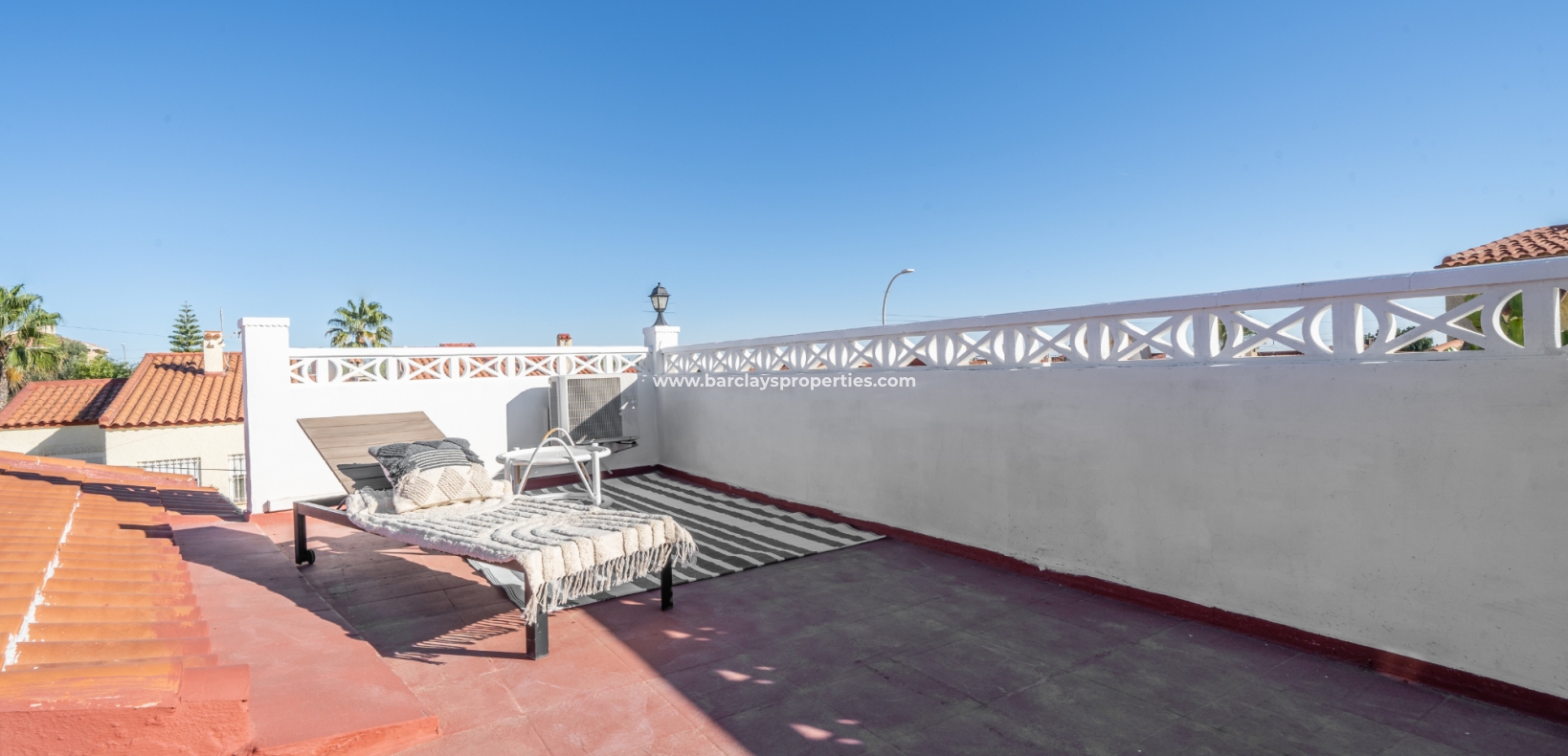 Gelegen in de gewilde Urbanisatie La Marina in San Fulgencio, biedt deze vrijstaande villa een harmonieuze mix van comfort en elegantie. In een oostelijke positie is deze villa van het Rosa-model strategisch gelegen, op slechts ✅2 minuten lopen van voorzieningen, op 5 minuten rijden van het strand en een handige 20 minuten rijden van de luchthaven. Deze woning is uitgebreid en combineert naadloos functionaliteit, stijl en nabijheid van belangrijke voorzieningen.