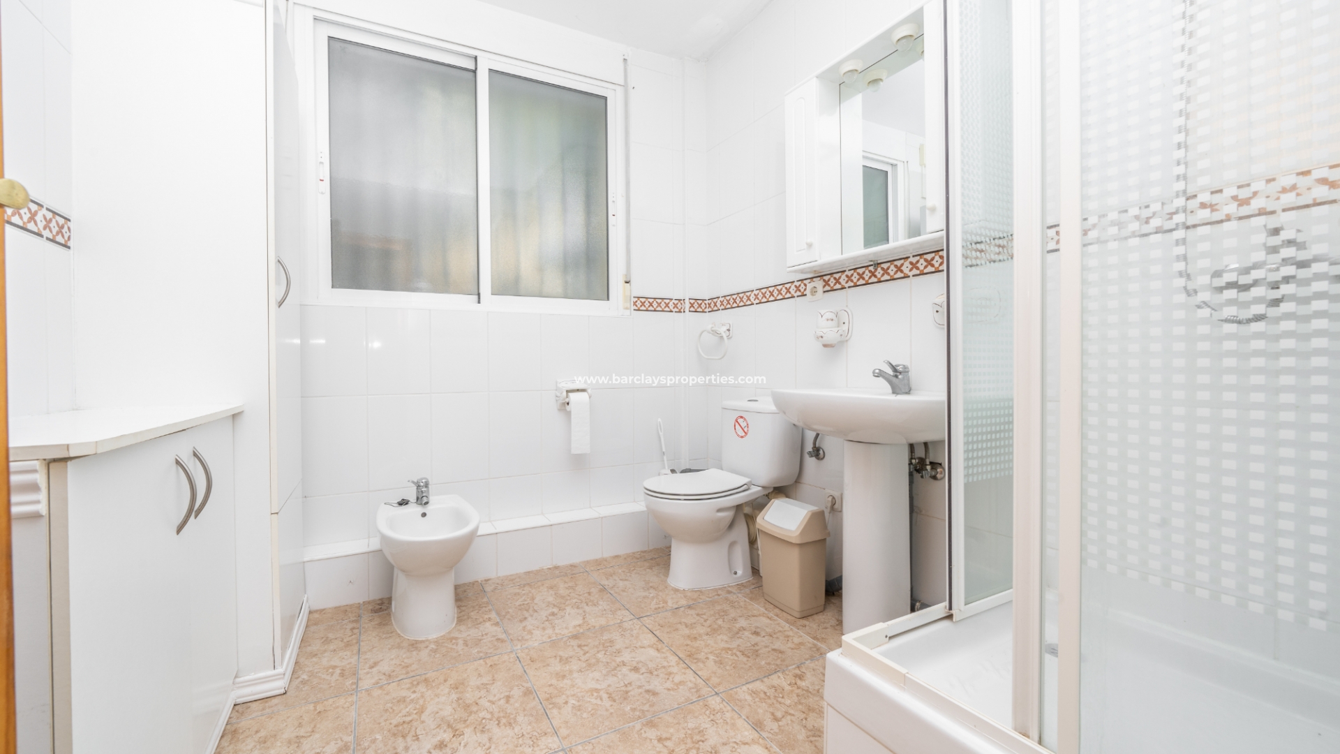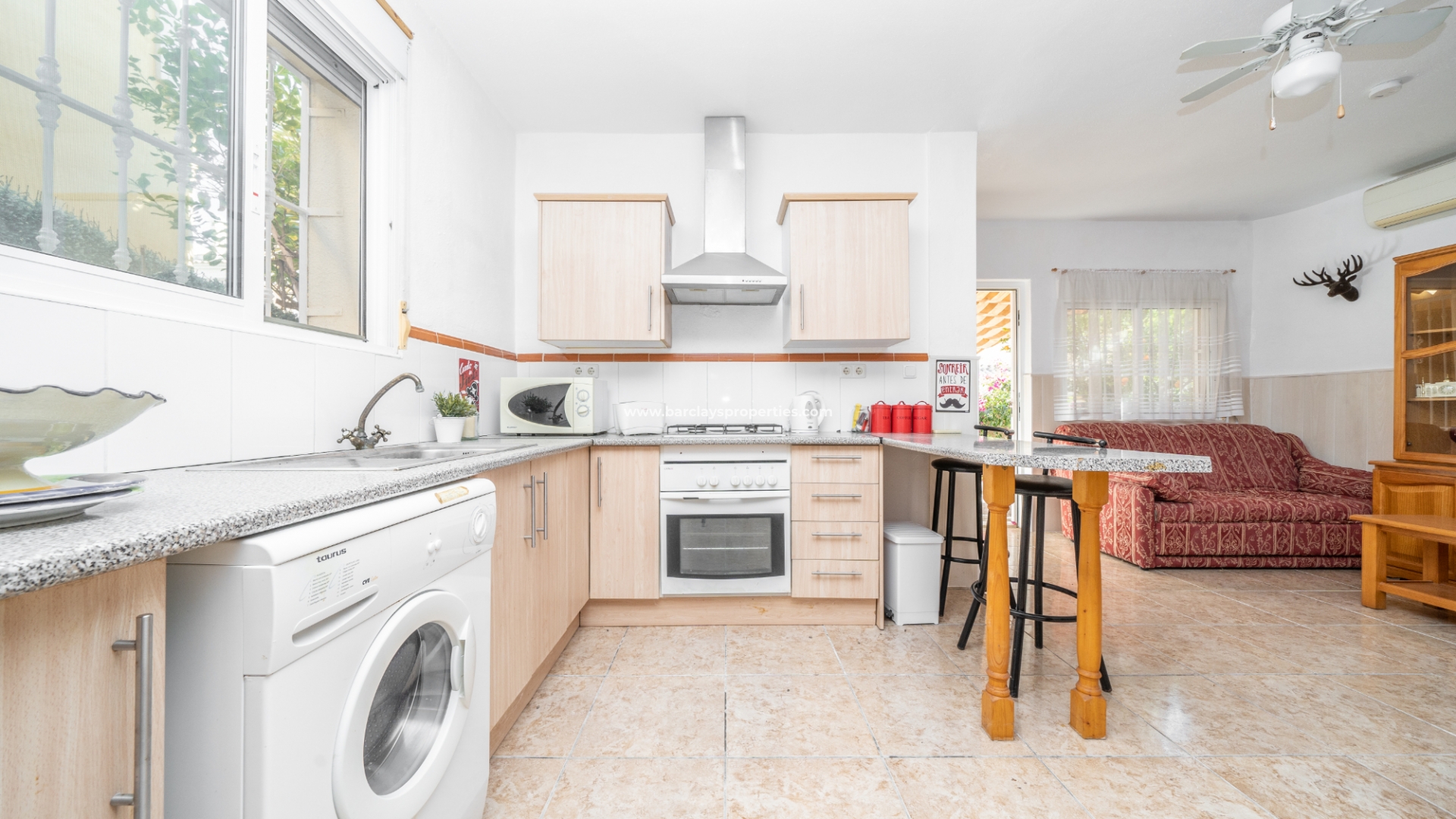 De onderbouw van de woning beschikt over een ruime woon-/eetkamer/open keuken met een ontbijtbar en essentiële apparatuur zoals een wasmachine en afzuigkap. De onderbouw biedt ook een royaal bemeten tweepersoonsslaapkamer met plafondventilatoren, een tweede tweepersoonsslaapkamer ook uitgerust met plafondventilatoren en een grote badkamer met bidet en hoekdouche. Dit deel van de woning is ideaal als gastenverblijf omdat het zelfstandig is.