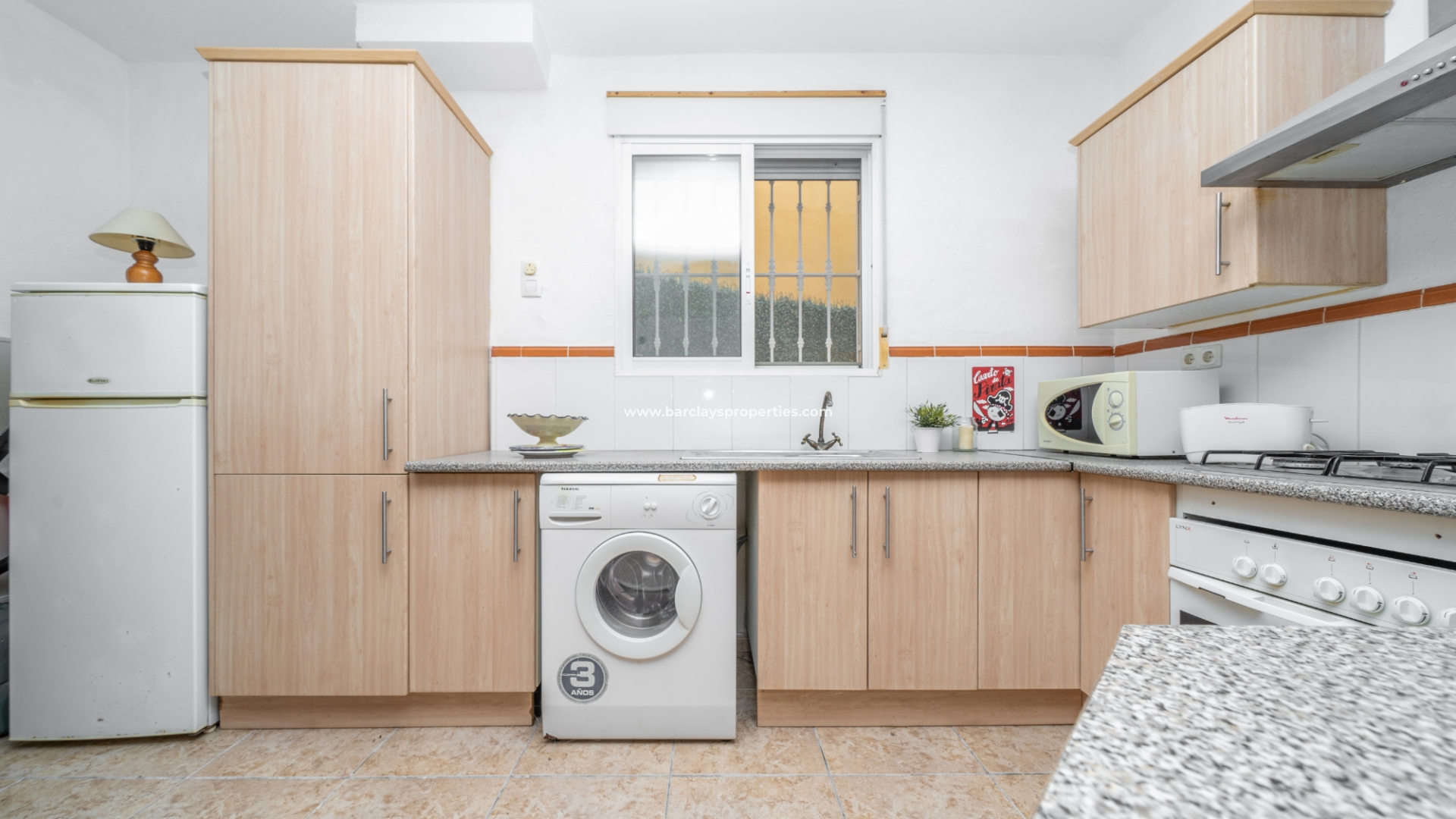 Trappen leiden naar het hoofdgebouw, naar een serre die een veelzijdige ruimte biedt voor alle seizoenen. Vanaf hier leiden trappen naar het dakterras met bubbelbad, zithoek en panoramisch uitzicht. Dit is een geweldig uitkijkpunt om te genieten van de prachtige zonsopkomsten en rode luchten die we hier aan de Costa Blanca ervaren. Ook vanuit de serre hebben we toegang tot het hoofdgebouw, dat gedeeltelijk is ingericht en voorzien is van een grote woon-/eetkamer, een volledig uitgeruste keuken met granieten werkbladen, een ruime tweepersoonsslaapkamer met inbouwkasten en airconditioning, en een tweede tweepersoonsslaapkamer ook uitgerust met inbouwkasten. De goed uitgeruste badkamer bevat een groot bad, toilet en wastafel, waarmee deze uitnodigende en functionele woning wordt vervolledigd.