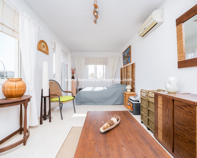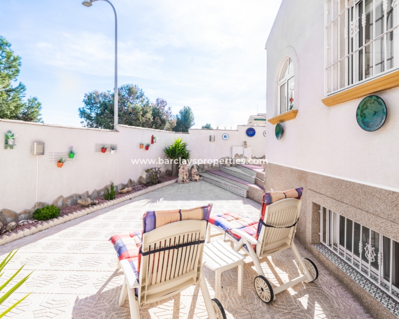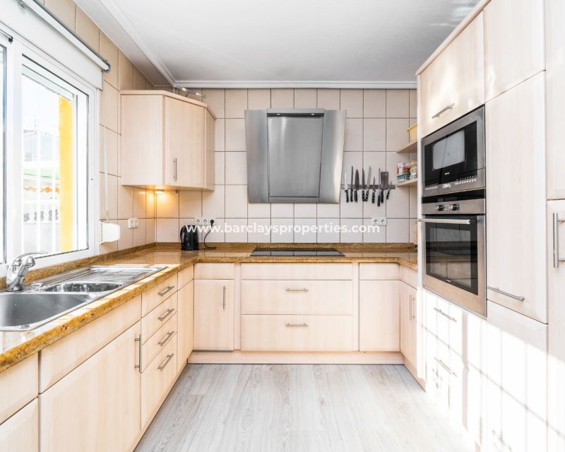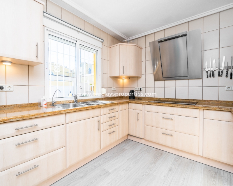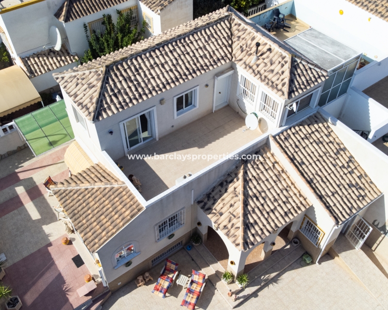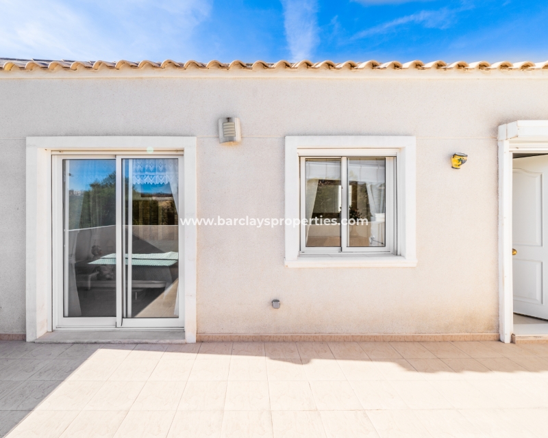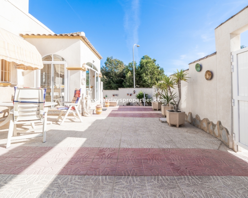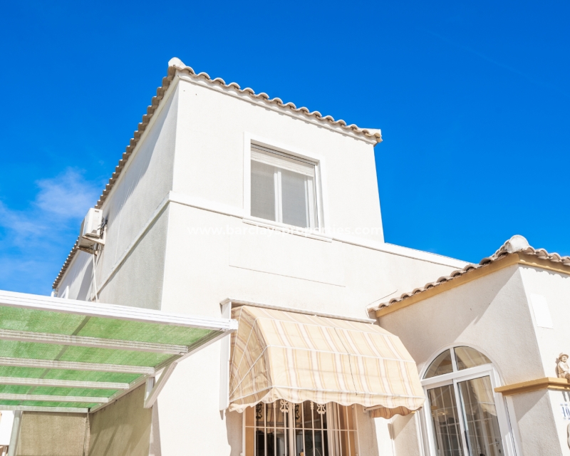 Deze charmante, op het zuiden gelegen helft van een dubbele villa bevindt zich in de gewilde wijk Urb. La Marina en biedt een sereen toevluchtsoord met prachtig uitzicht. De woning strekt zich uit over een bebouwde oppervlakte van 200 m2 en staat op een perceel van 170 m2. Er zijn ✅twee gemeenschappelijke zwembaden en tuinen die een perfecte plek bieden om af te koelen, terwijl het zonneterras een ontspannen ruimte biedt om van de zon te genieten.
