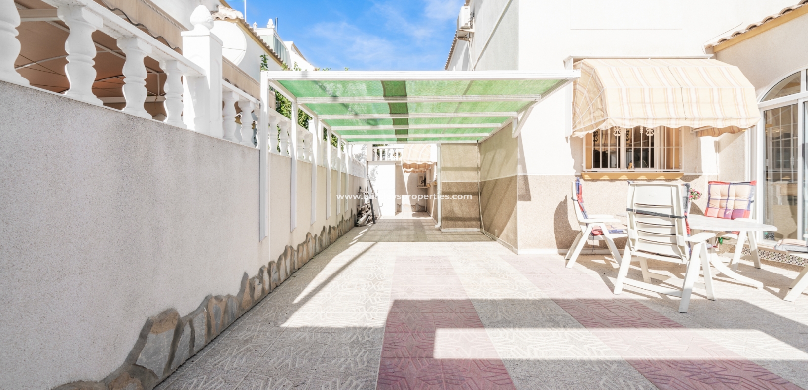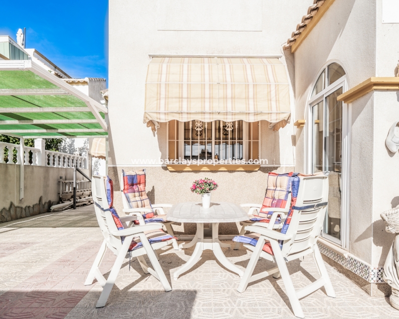 Dit is jouw kans om deze charmante helft van een dubbele woning in Urb. La Marina te bezitten, die een perfecte mix biedt van comfort, gemak en betoverend uitzicht.