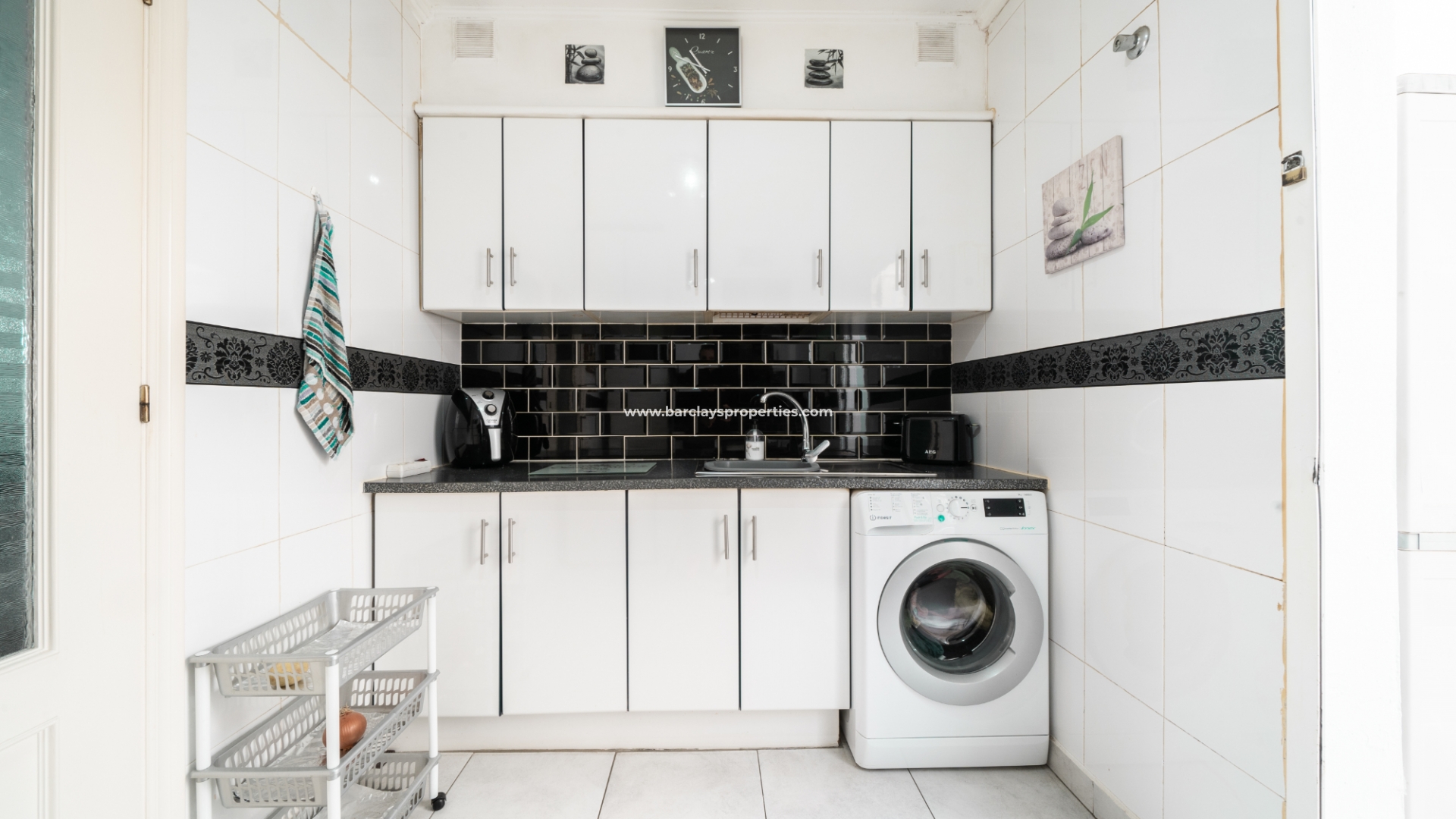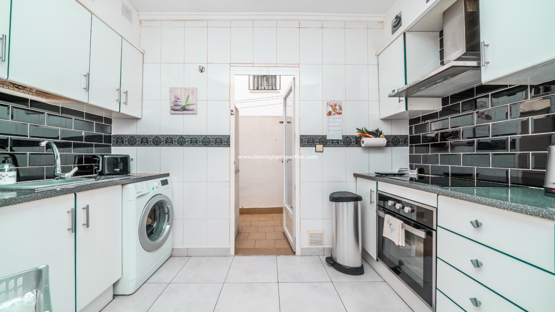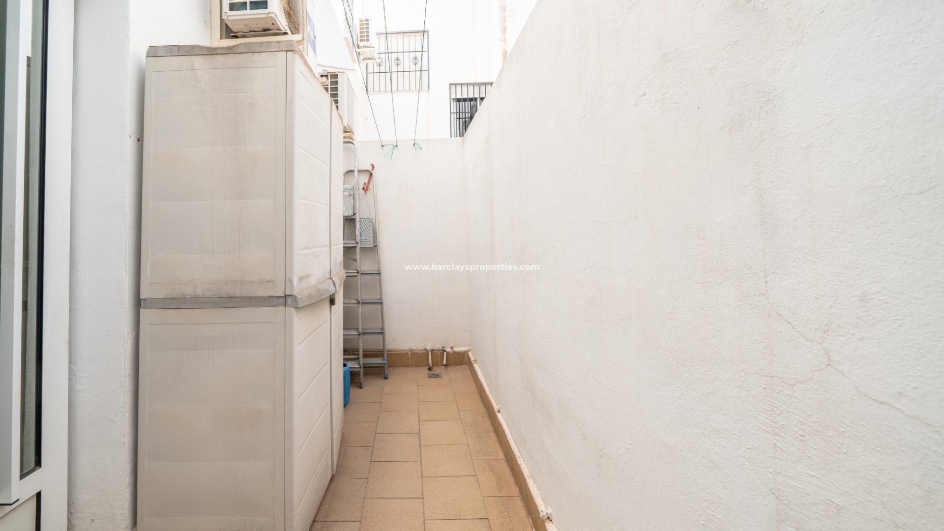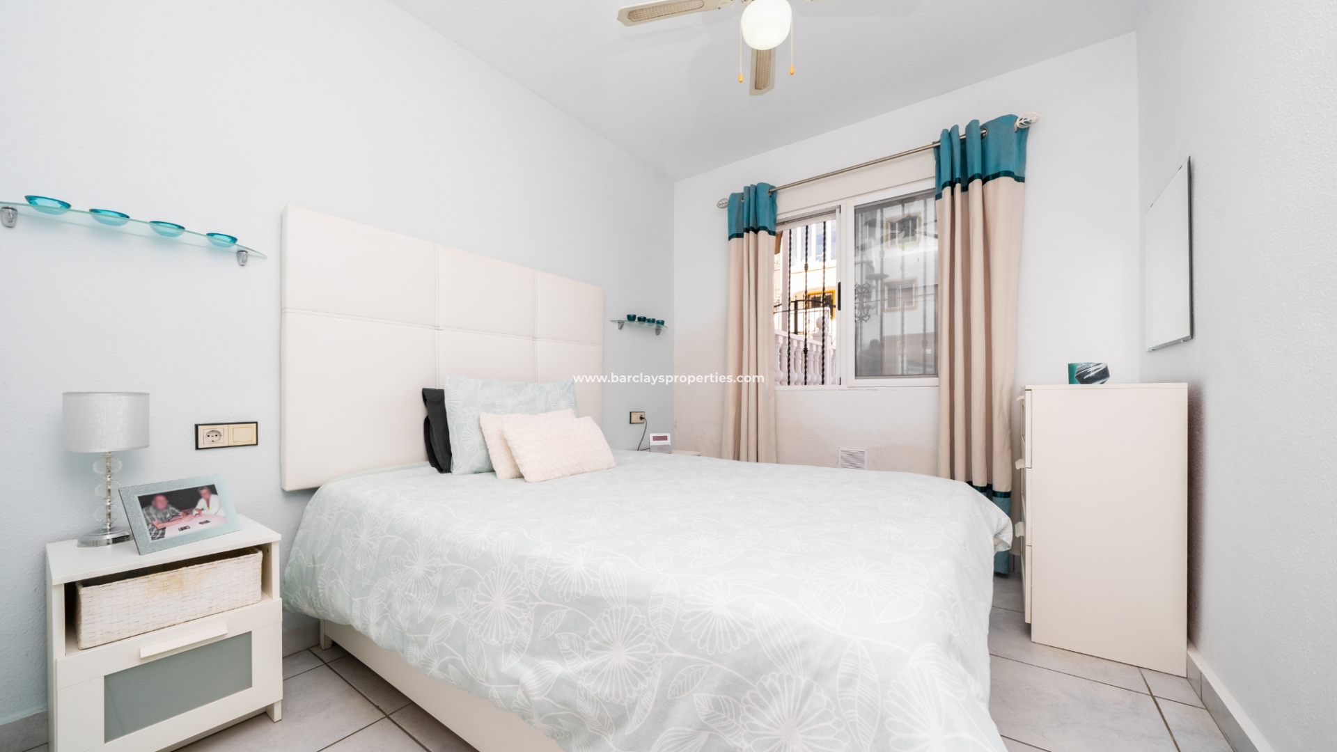In het interieur vinden we een uitnodigende, lichte woonkamer met een toegewezen eethoek, voorzien van airconditioning en een plafondventilator voor comfort het hele jaar door. Een onafhankelijke volledig ingerichte keuken bevindt zich vanuit de woonkamer en beschikt over nieuwe werkbladen die dit gebied een frisse, moderne uitstraling geven. Vanaf hier hebben we toegang tot een achterpatio met hoge muren. Vanuit een booghal vinden we twee ruime slaapkamers (beide met inbouwkasten en plafondventilatoren) en een badkamer met een inloopdouche met een design van glazen stenen, een wc en wastafel/meubel. Deze woning heeft nieuwe vloeren in het hele appartement, wat een vleugje elegantie toevoegt.