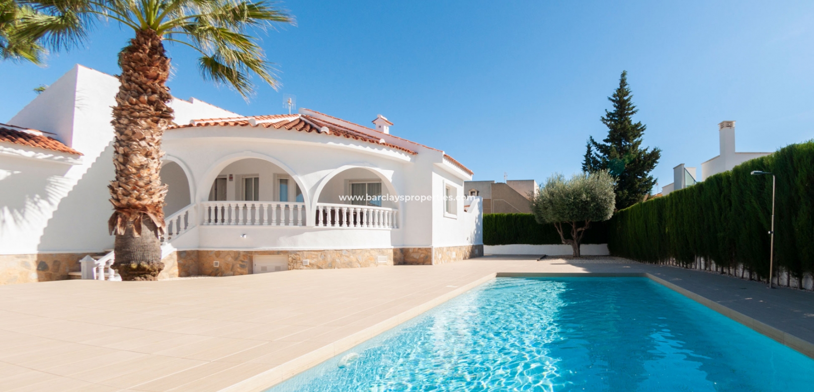Dit is een spectaculaire villa in klassieke mediterrane stijl ☀️ die je hart zal veroveren bij het eerste gezicht. Met drie slaapkamers en twee badkamers biedt het de ideale ruimte en comfort om te genieten van het leven aan de zonnige Costa Blanca. Met een privézwembad van 9x4 ✅ en parkeergelegenheid, evenals een enorm perceel, heb je alle ruimte die je nodig hebt om te ontspannen en te genieten van de milde winters en warme zomers die deze regio kenmerken. Bovendien maakt de indeling een gemakkelijke conversie mogelijk naar een villa met vier slaapkamers ✅, wat nog meer flexibiliteit biedt om aan je behoeften en voorkeuren te voldoen.