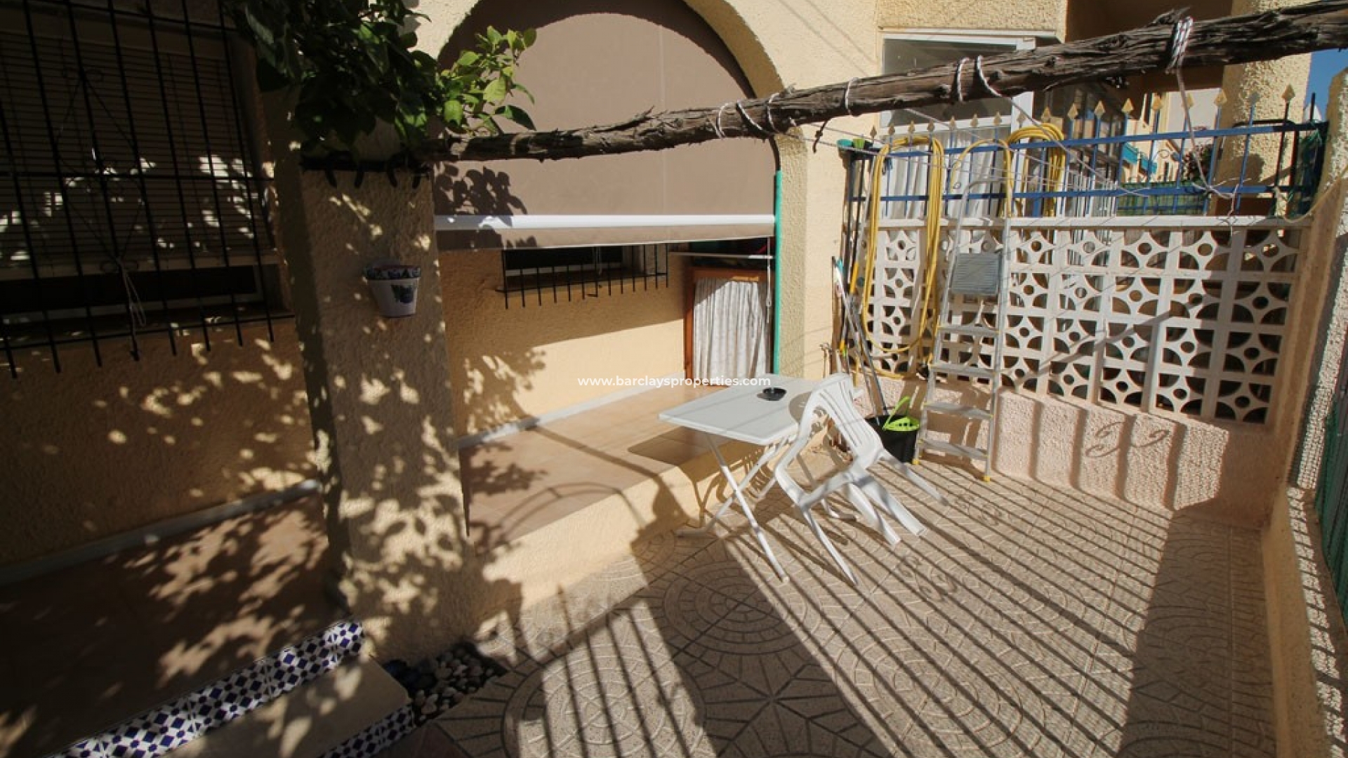 We zijn verheugd om dit op het oosten gerichte Rijtjes huis model "Fina", dat te koop is in de populaire urbanisatie van La Marina, te presenteren. Het pand ligt in een rustig maar centraal gedeelte van de urbanisatie, op loopafstand van een van onze lokale commerciële gebieden, ook in de buurt van het pand vindt u een aantal groene beschermde gebieden.
