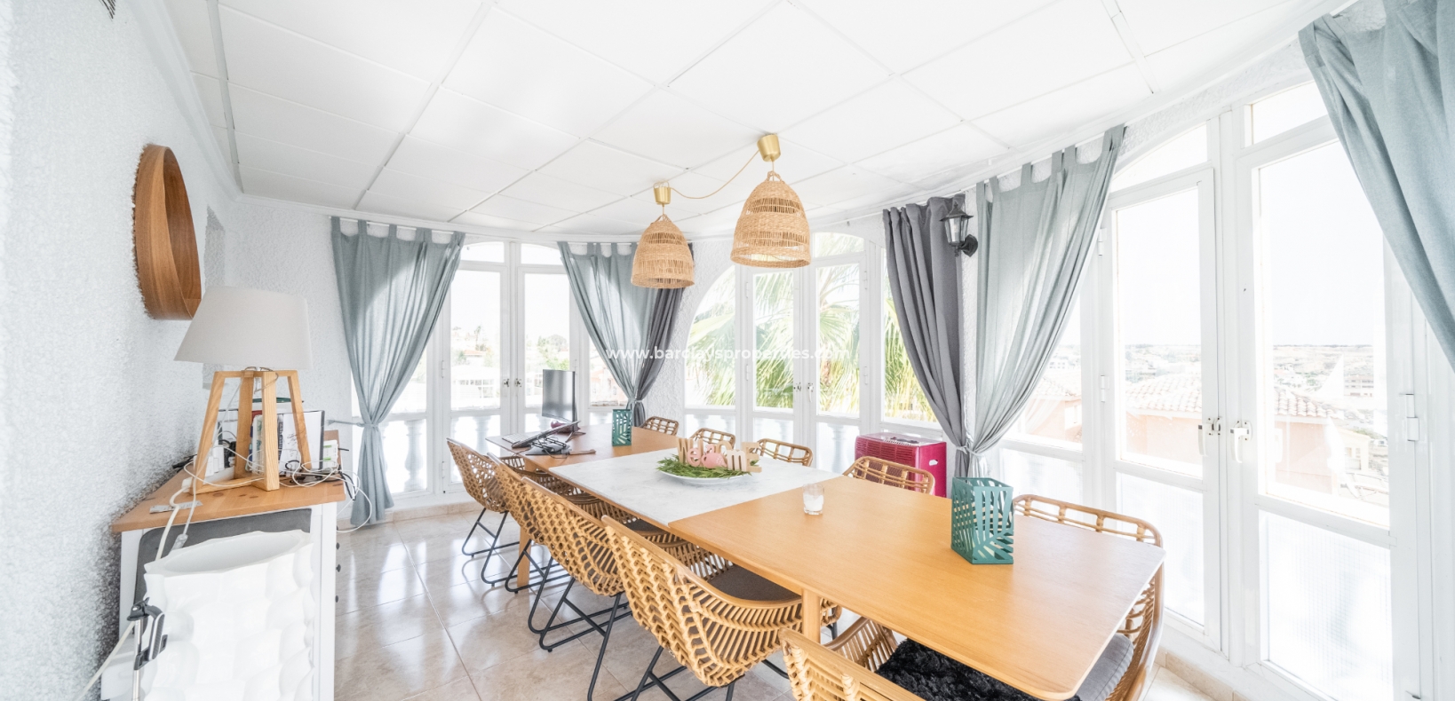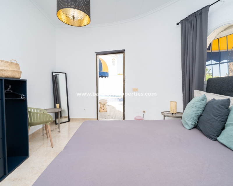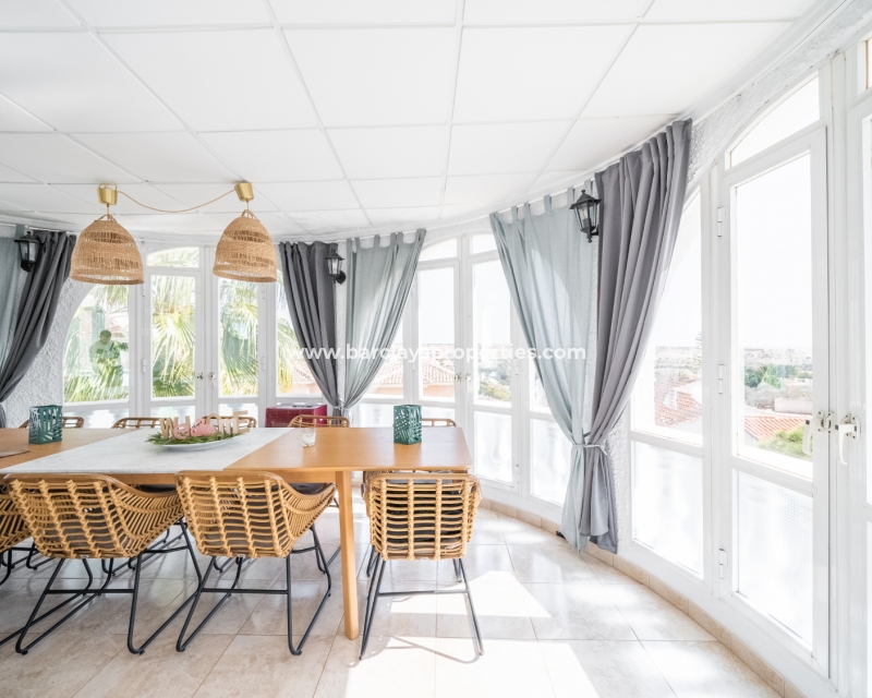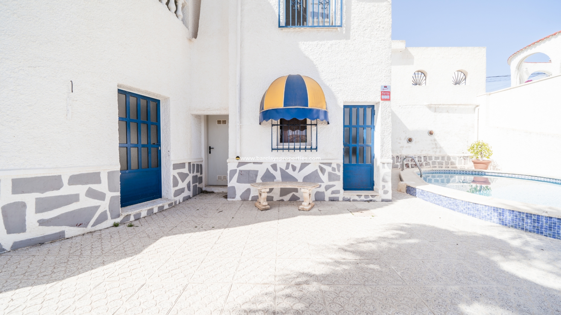 Gelegen in de gewilde urbanisatie La Marina aan de prachtige Costa Blanca, deze vrijstaande villa met 178m2 bebouwing, een model "Yolanda" combineert naadloos luxueus wonen met kustcharme op een groot perceel van 811m2. Vanaf de rustige ligging tot aan de reeks gewilde kenmerken, waaronder ➡️ een eigen zwembad van 8 x 4, biedt deze woning een betoverend toevluchtsoord voor degenen die hunkeren naar de essentie van de ➡️ Mediterrane levensstijl. Gunstig ➡️ gelegen op slechts 5 minuten lopen van lokale voorzieningen, het levendige hart van de urbanisatie, en binnen handbereik van het strand en de dichtstbijzijnde luchthaven, biedt deze villa een ongeëvenaarde kans om kustleven op zijn best te ervaren.