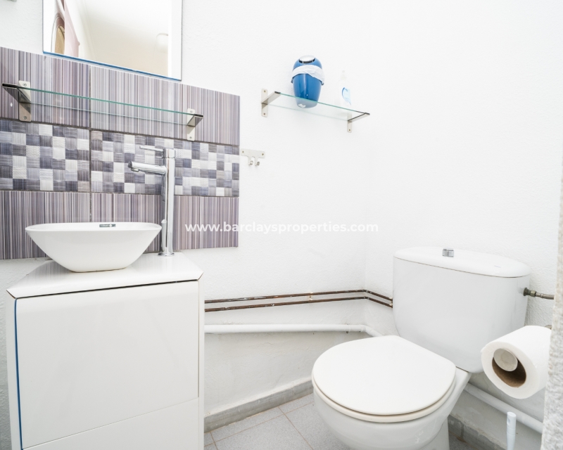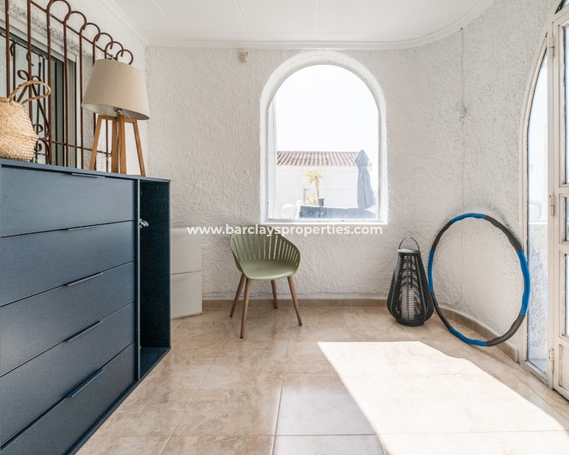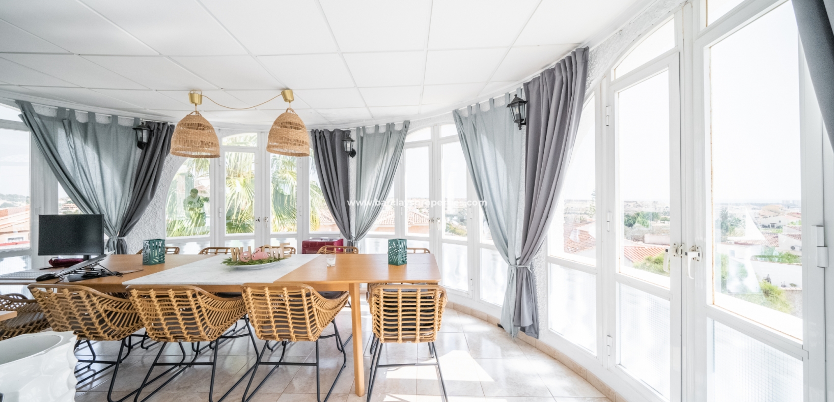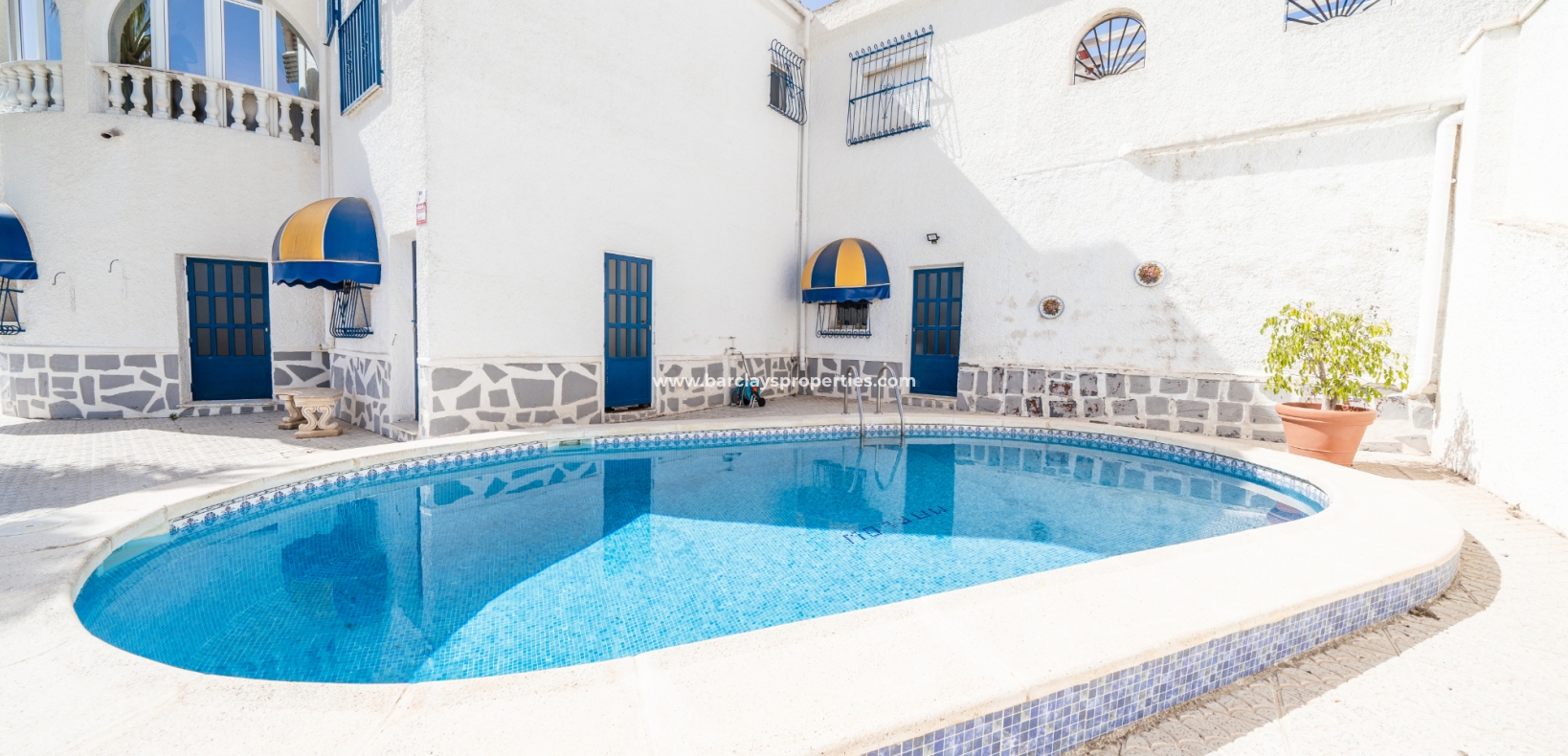 Gelegen in de gewilde urbanisatie La Marina aan de prachtige Costa Blanca, deze vrijstaande villa met 178m2 bebouwing, een model "Yolanda" combineert naadloos luxueus wonen met kustcharme op een groot perceel van 811m2. Vanaf de rustige ligging tot aan de reeks gewilde kenmerken, waaronder ➡️ een eigen zwembad van 8 x 4, biedt deze woning een betoverend toevluchtsoord voor degenen die hunkeren naar de essentie van de ➡️ Mediterrane levensstijl. Gunstig ➡️ gelegen op slechts 5 minuten lopen van lokale voorzieningen, het levendige hart van de urbanisatie, en binnen handbereik van het strand en de dichtstbijzijnde luchthaven, biedt deze villa een ongeëvenaarde kans om kustleven op zijn best te ervaren.