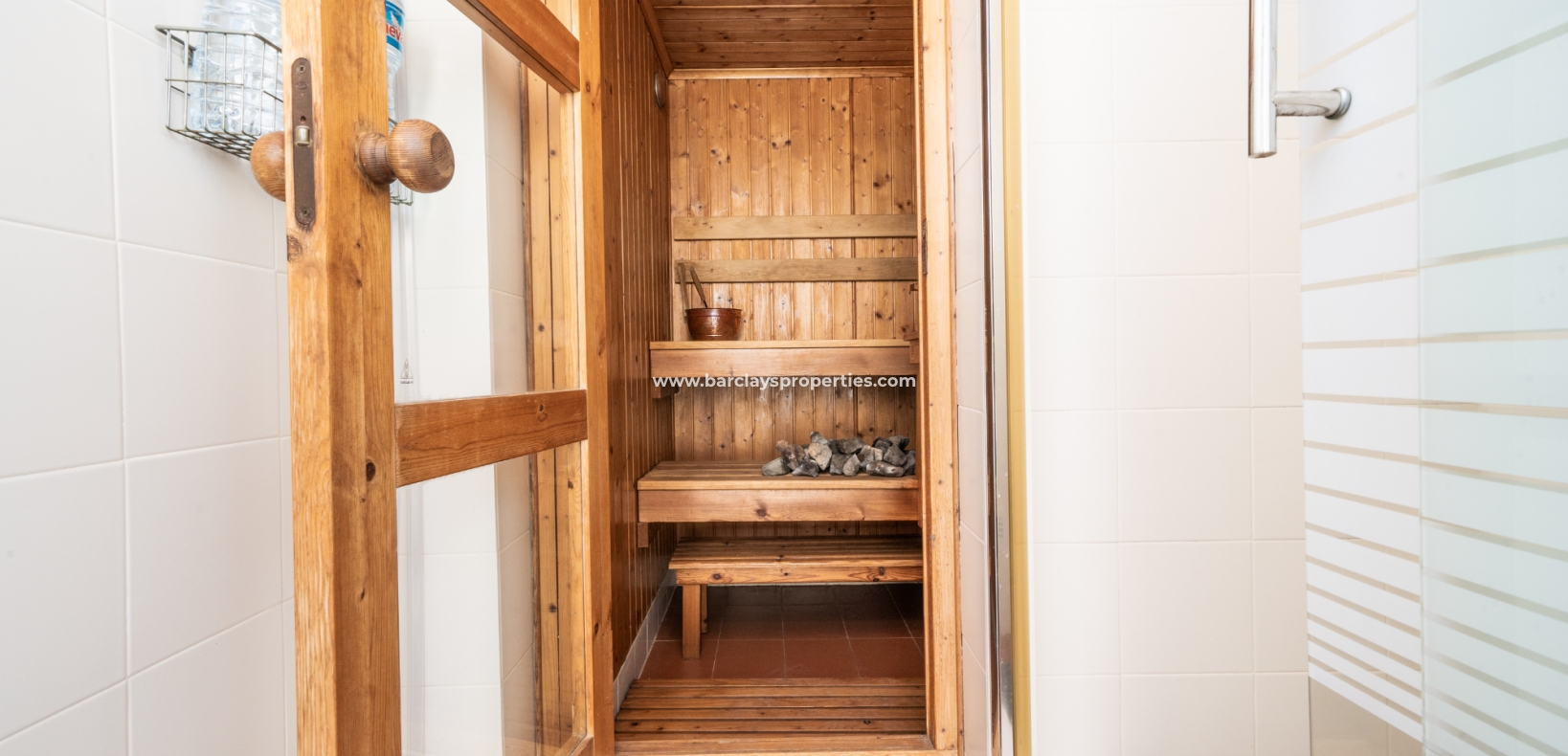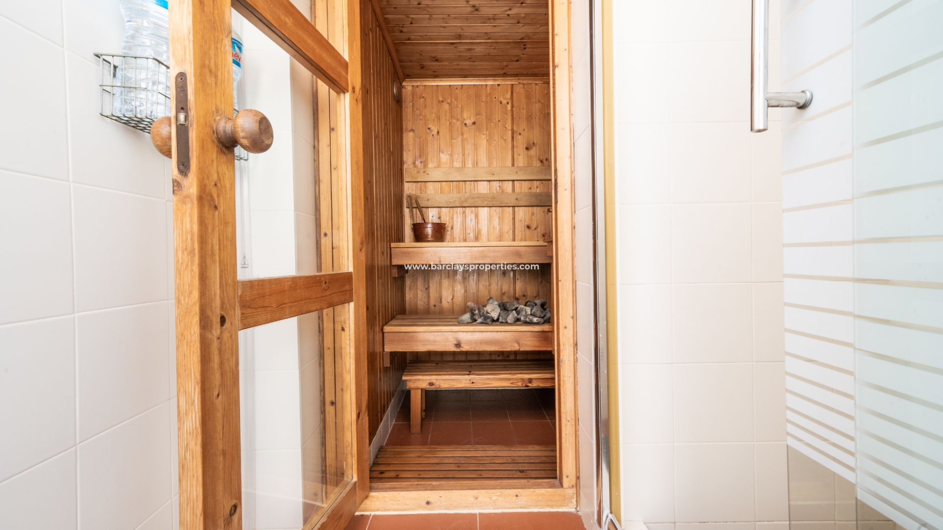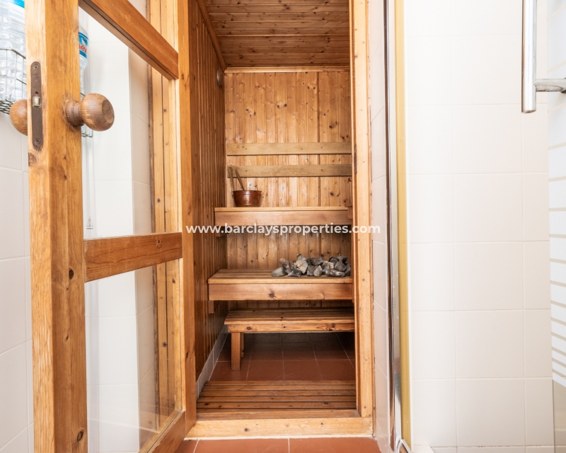 Daal af naar het lagere niveau om een veelzijdige ruimte te vinden die is ontworpen voor ontspanning en verjonging. Hier wacht een slaapkamer / woonkamer, compleet met airconditioning en een inloopkast. Ook op dit niveau vinden we een goed uitgeruste kitchenette, een washok met wastafel, een sauna met inloopdouche, en een bijkeuken met wasfaciliteiten die praktisch luxe toevoegen aan het huis. Dit is een ideale accommodatie voor bezoekende gasten.