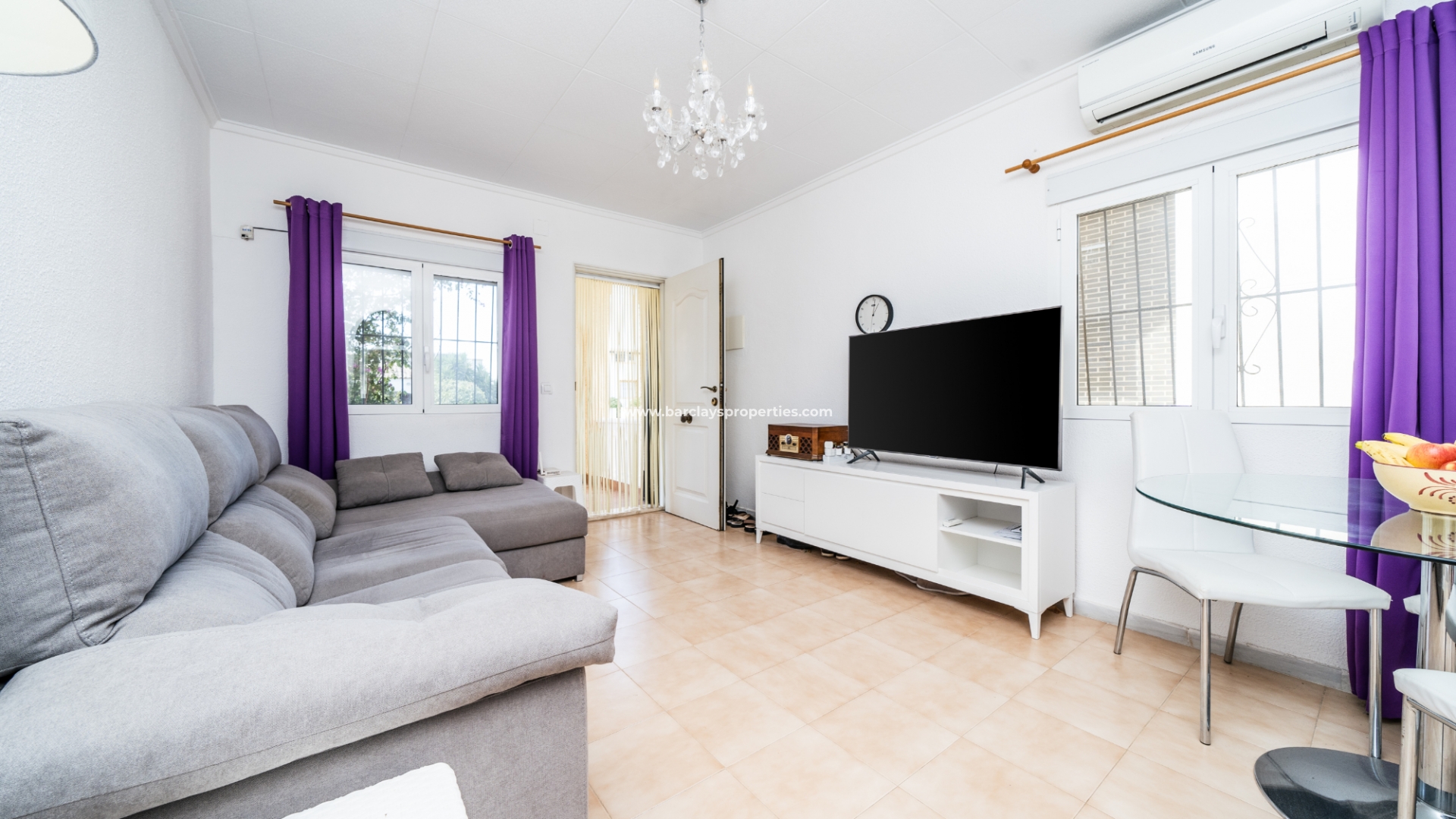Stap naar binnen om een zorgvuldig onderhouden interieur te ontdekken, waar functionaliteit elegantie ontmoet. De ruime woonkamer is licht en uitnodigend, voorzien van airconditioning - deze ruimte is een comfortabele toevluchtsoord voor ontspanning of entertainment.