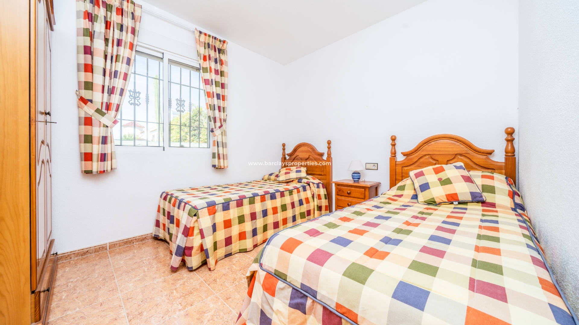Laten we eens kijken naar de binnenkant van deze woning; de woonkamer biedt een uitnodigende ruimte, compleet met airconditioning voor het hele jaar door comfort. De hoofdslaapkamer biedt voldoende ruimte, met een tweepersoonsbed, ingebouwde kast en plafondventilator. Op dezelfde wijze biedt de tweede slaapkamer comfort en gemak met een tweepersoonsbed, ingebouwde kast en plafondventilator. De derde slaapkamer biedt flexibiliteit met twee eenpersoonsbedden.