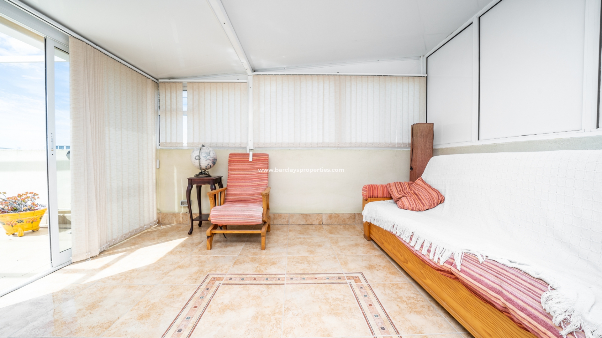 De leefruimte uitbreidend, wacht een royale serre op je, uitgerust met een buitenzonnescherm voor het genieten van de buitenlucht. Deze geschakelde woning vertegenwoordigt een fantastische verhuurinvestering aan de Costa Blanca en zal de gelukkige nieuwe eigenaar zeker een geweldig rendement op zijn geld bieden, aangezien La Marina altijd een gewilde omgeving is geweest voor verhuur binnen de Valenciaanse Gemeenschap.