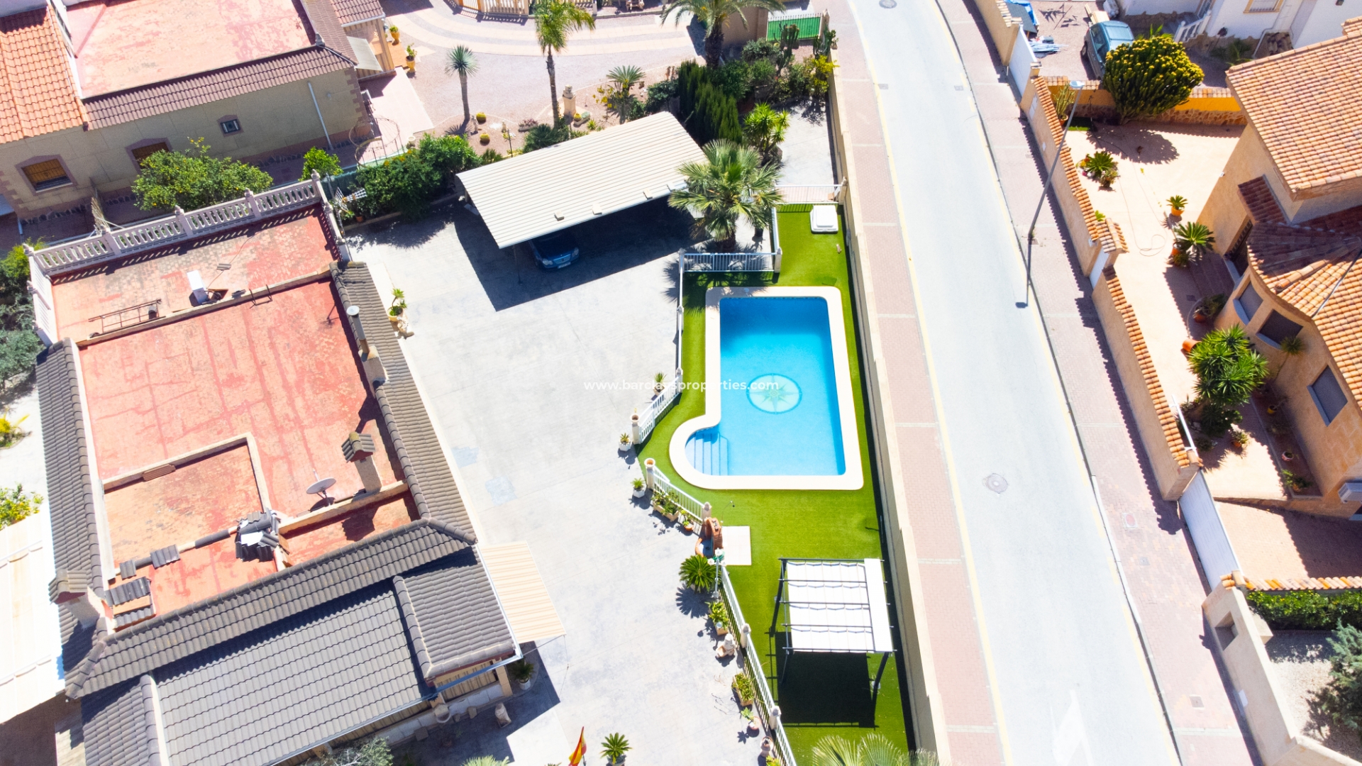 Welkom bij het toonbeeld van mediterraan leven in Urb. La Marina, La Escuera! Deze vrijstaande villa biedt een zeldzame kans om te genieten van de rust aan zee, terwijl u toch gemakkelijk toegang heeft tot stedelijke voorzieningen. Met een royaal perceel van 888 vierkante meter biedt deze woning voldoende ruimte voor zowel binnen- als buitenactiviteiten. Gelegen op slechts 3 kilometer van de ongerepte gouden zandstranden van La Marina☀, kunnen bewoners genieten van de aantrekkingskracht van het kustleven voor hun deur. De strategische ligging van het pand, op slechts 1 kilometer afstand van een bruisend commercieel gebied, zorgt voor moeiteloze toegang tot een scala aan voorzieningen. Voor golfliefhebbers ligt de gerenommeerde golfbaan La Marquesa op slechts 10 kilometer afstand, terwijl de nabijheid van de luchthaven van Alicante-Elche, op 25 kilometer van de villa, de aantrekkingskracht van dit uitzonderlijke aanbod vergroot.