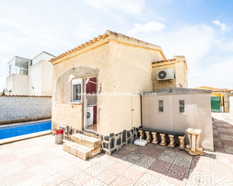 Gelegen in de populaire wijk La Marina, San Fulgencio, biedt deze charmante vrijstaande woning een rustig toevluchtsoord, met de gouden zandstranden van La Marina op slechts 5 minuten rijden en voorzieningen op slechts 10 minuten lopen van de villa, waaronder supermarkten, een bank, diverse winkels, de dokterspraktijk, een apotheek, toeristische informatie en een fantastische selectie van bars en restaurants. Bovendien ligt de luchthaven van Alicante op slechts 25 minuten rijden, waardoor reisarrangementen moeiteloos kunnen worden geregeld voor zowel bewoners als potentiële gasten.