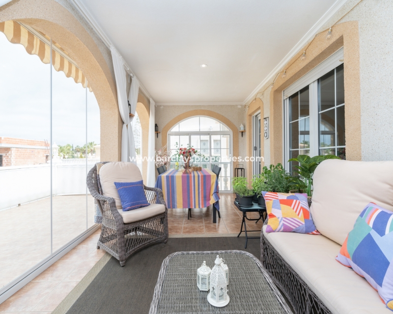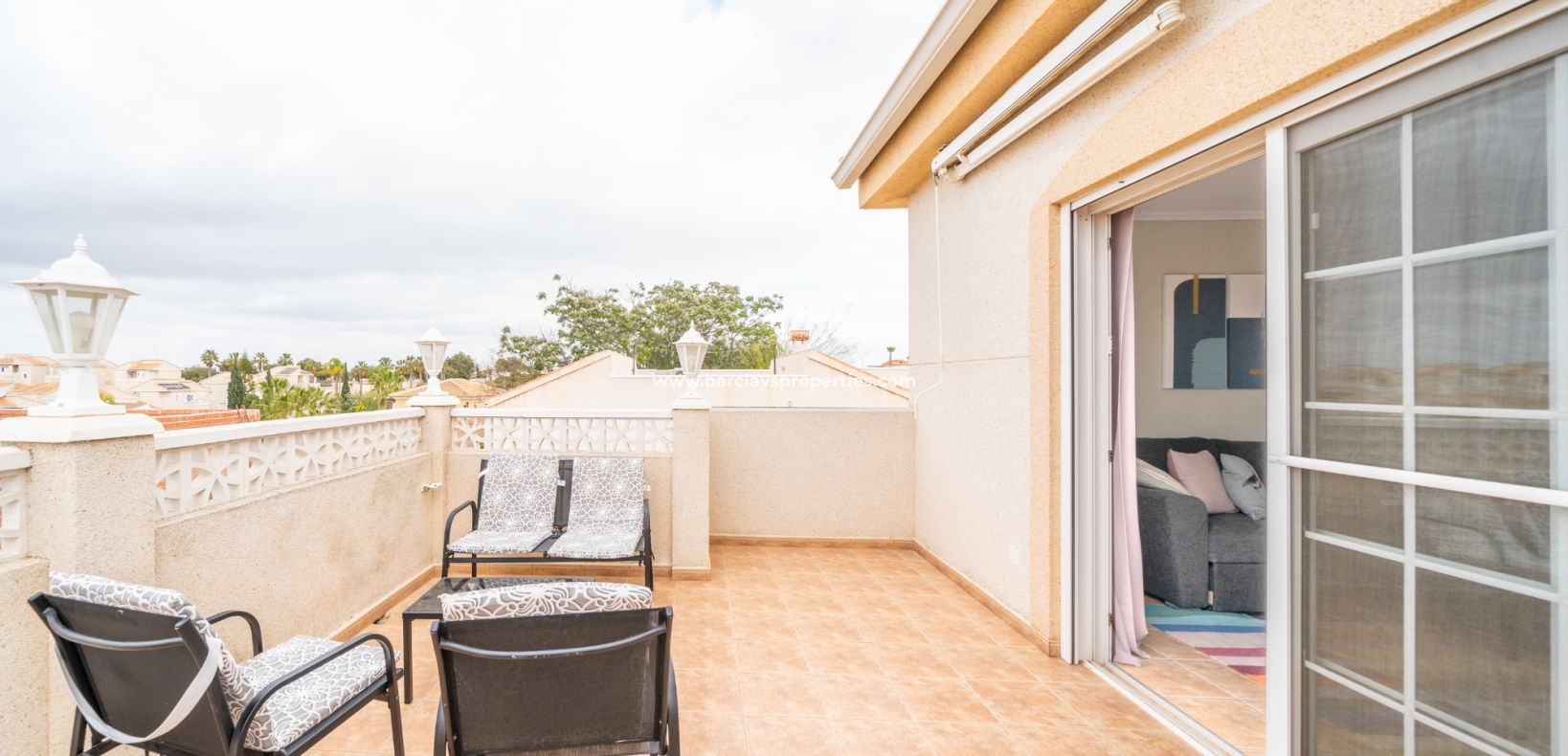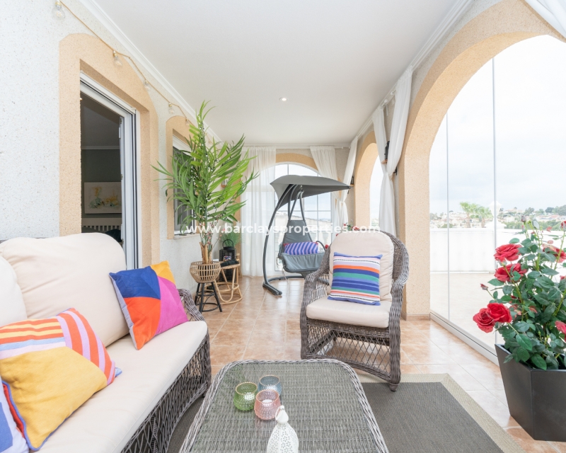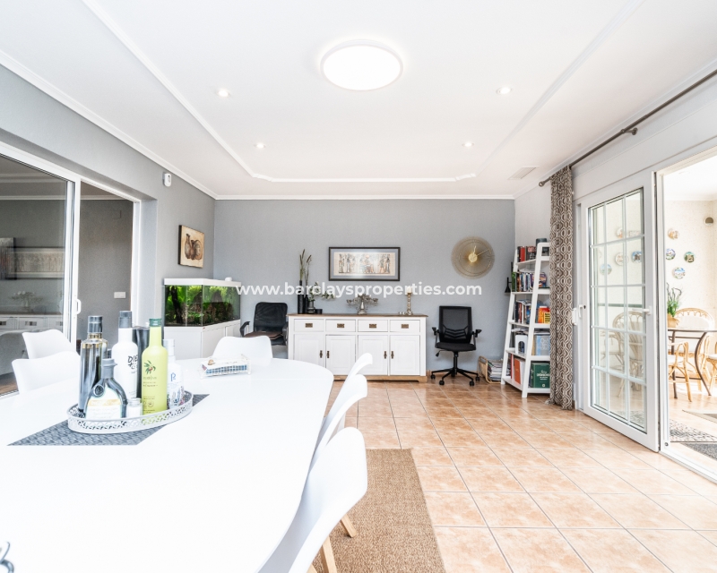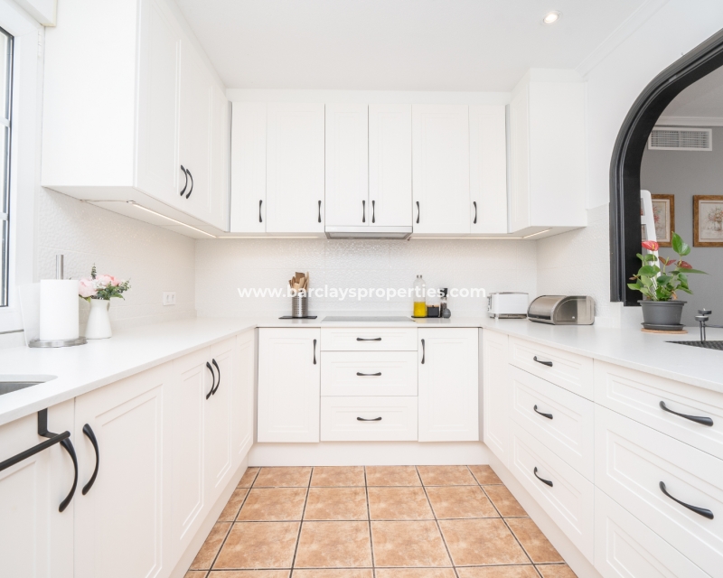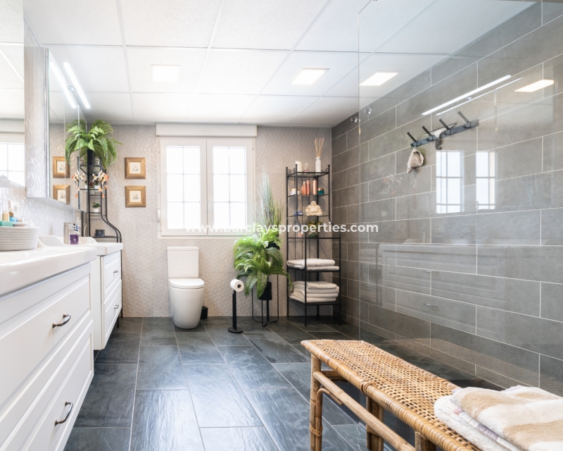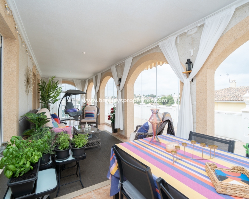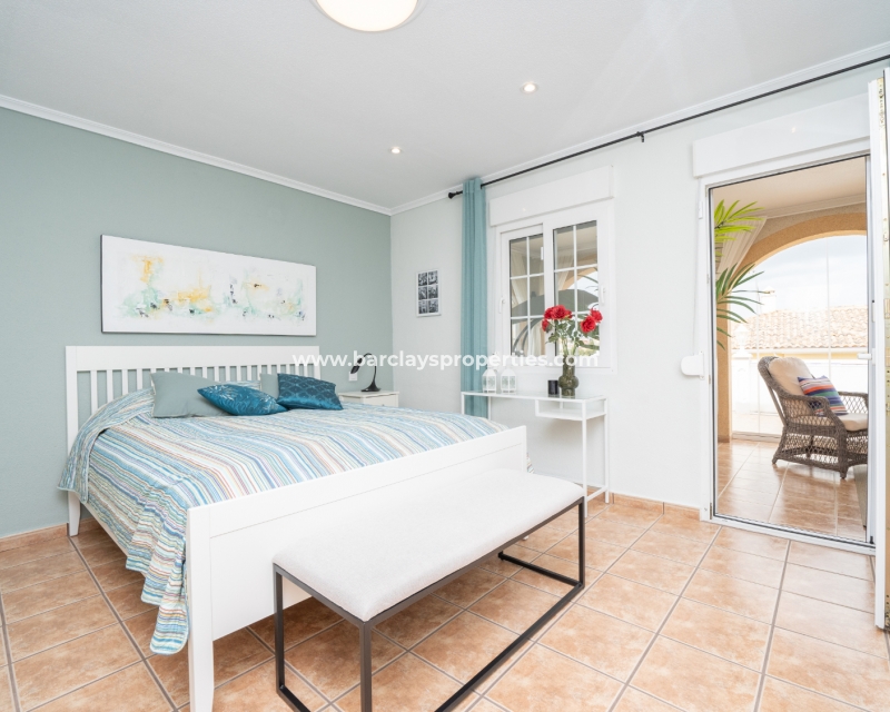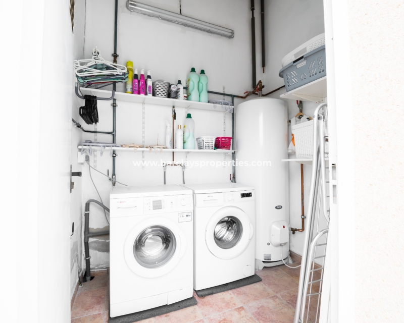 Gelegen in de gewilde urbanisatie La Escuera in San Fulgencio, biedt deze prachtige villa een mix van luxe en comfort. Verdeeld over drie niveaus, biedt deze woning de perfecte levensstijl voor grote gezinnen of degenen die veel gasten willen onderbrengen. De urbanisatie La Marina ligt op slechts een korte rit of een ontspannen wandeling van 10 minuten en biedt alle voorzieningen.