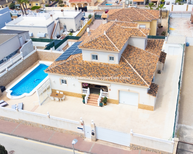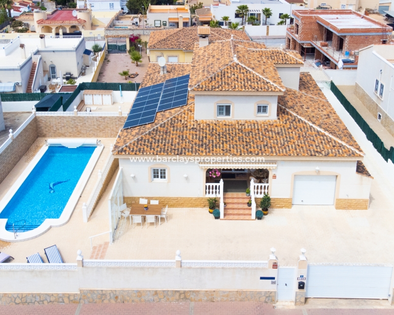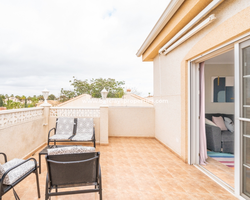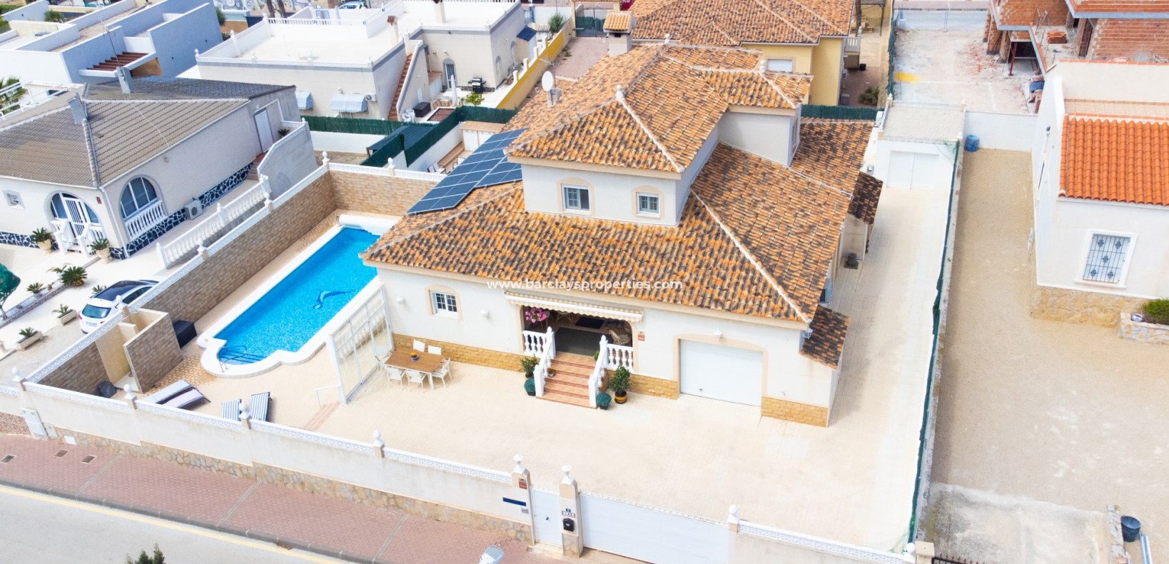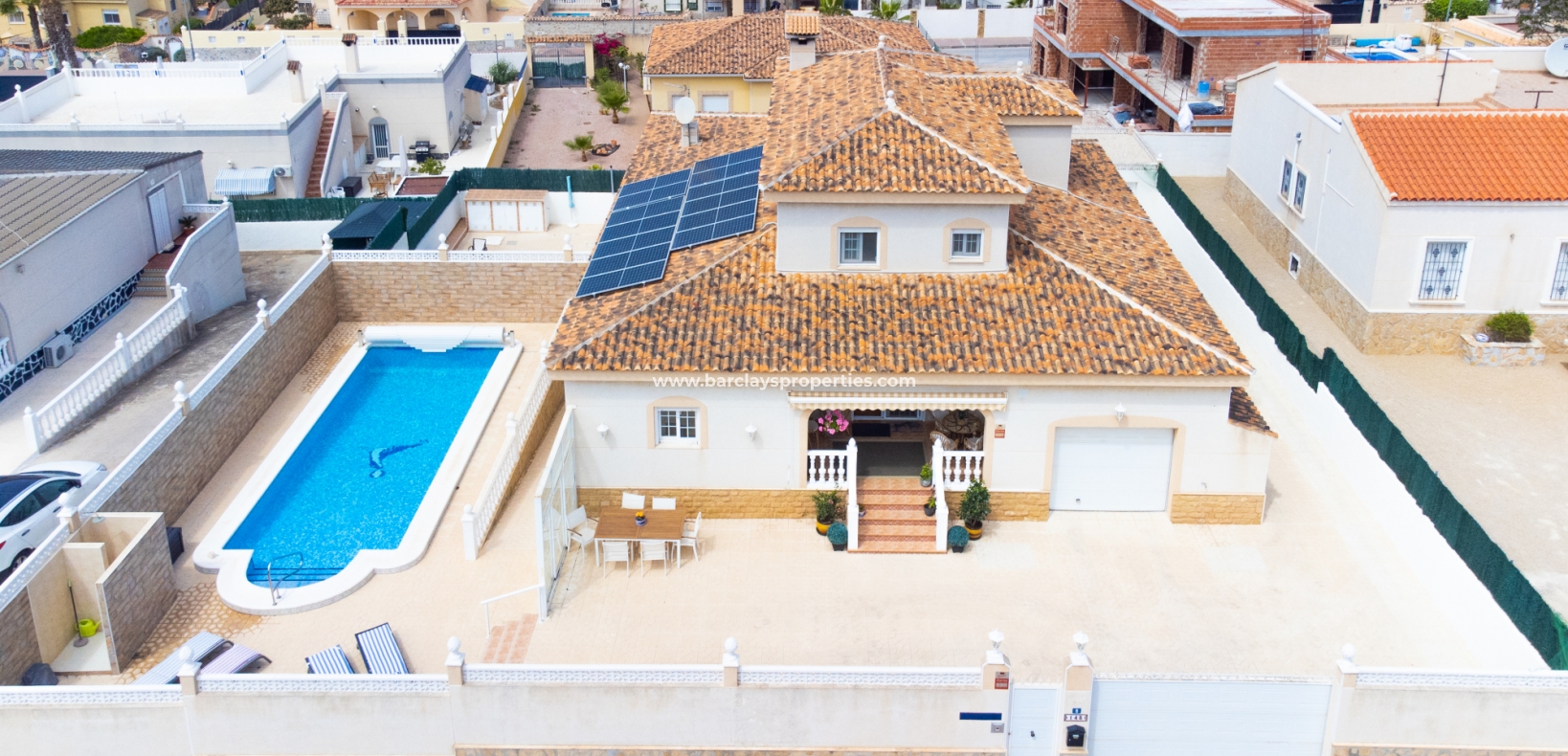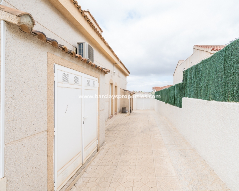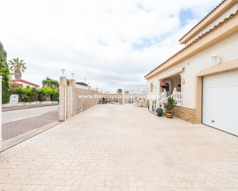 Gelegen in de gewilde urbanisatie La Escuera in San Fulgencio, biedt deze prachtige villa een mix van luxe en comfort. Verdeeld over drie niveaus, biedt deze woning de perfecte levensstijl voor grote gezinnen of degenen die veel gasten willen onderbrengen. De urbanisatie La Marina ligt op slechts een korte rit of een ontspannen wandeling van 10 minuten en biedt alle voorzieningen.