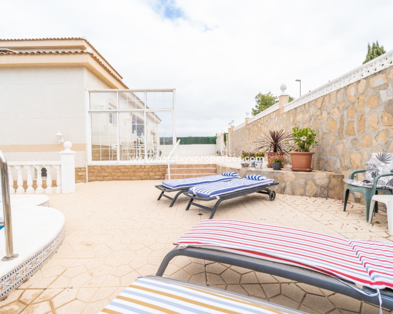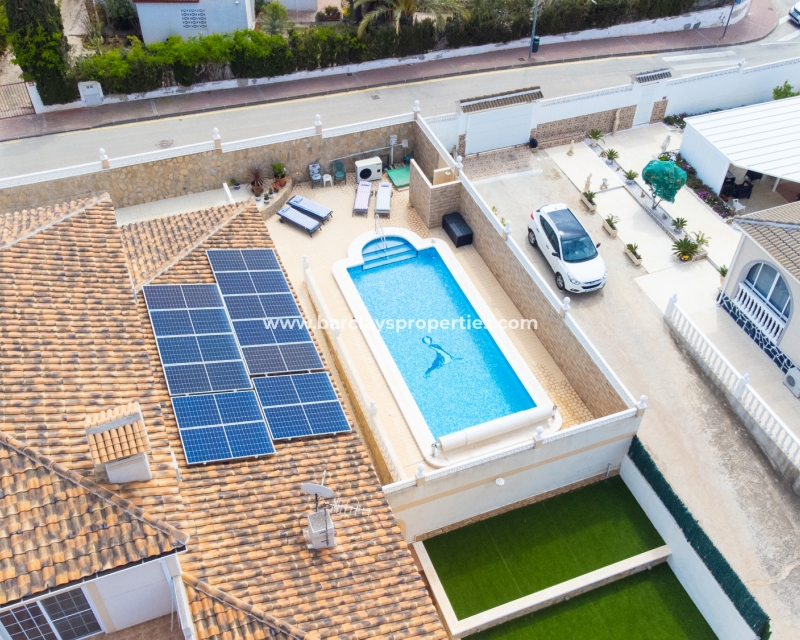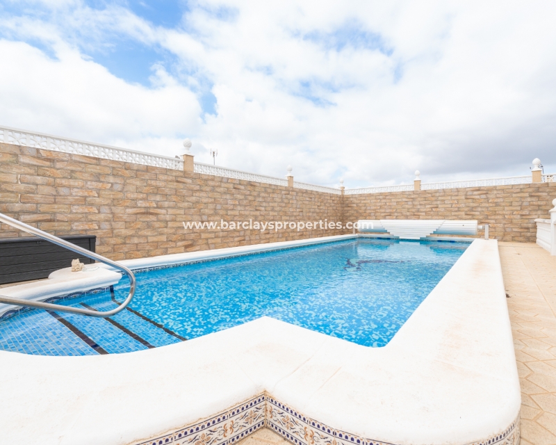 In het midden van het terrein bevindt zich ➡️ een royaal formaat privézwembad van 10 x 4 meter op het zuiden, omgeven door hoge muren, wat zorgt voor privacy, perfect voor ontspanning onder de zonnige luchten van de Costa Blanca. Bovendien zorgt de oriëntatie van het zwembad voor de hele dag zon, dus wees voorbereid op de hele dag plezier in de zon.