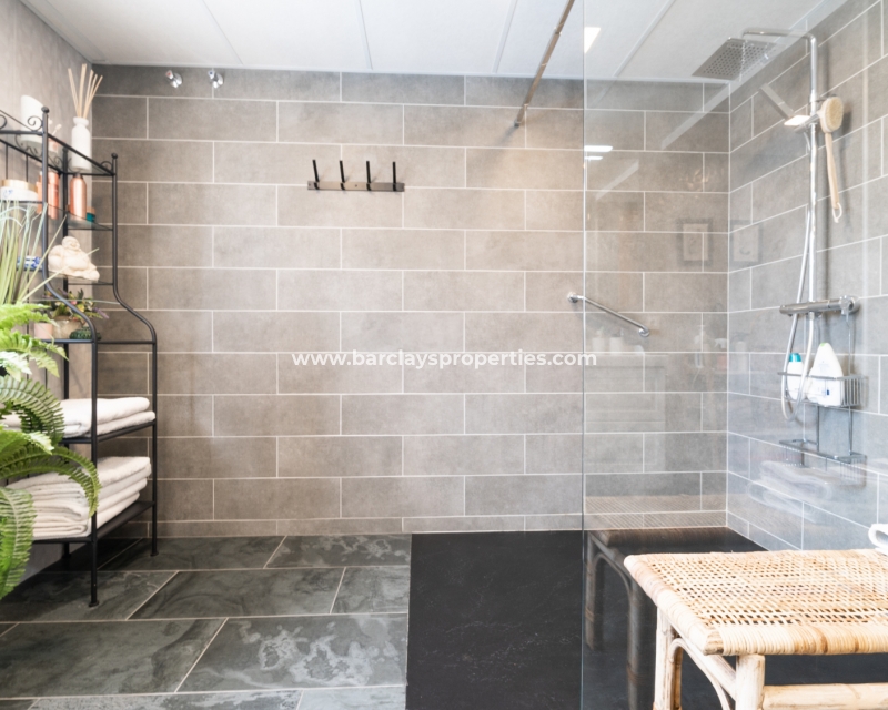 Het bovenste niveau omvat ook een chique tweepersoons slaapkamer met airconditioning en een badkamer met een douche over de hele breedte van de muur. Opslagruimte is ook te vinden naast de trap.