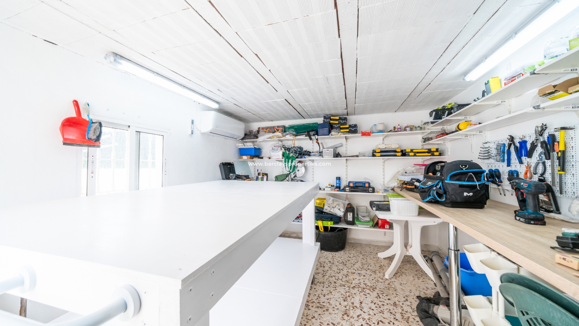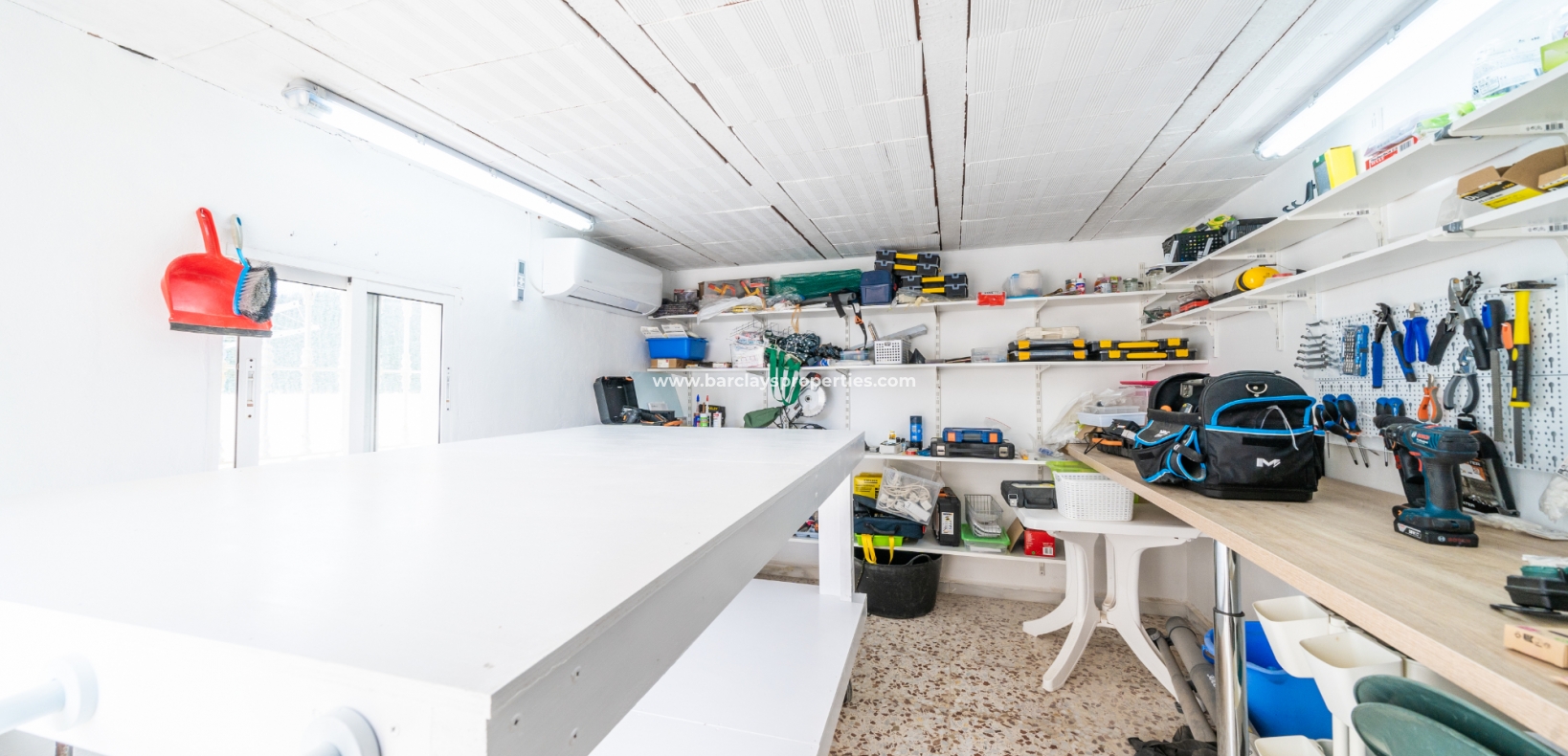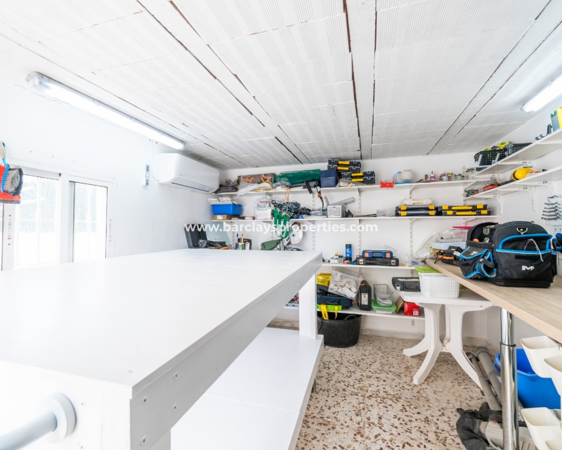 De hoofdverdieping beschikt ook over een gerenoveerde badkamer met twee dubbele wastafels en een grote moderne douche. Deze verdieping beschikt ook over twee tweepersoons slaapkamers met grote inbouwkasten en airconditioning voor comfort. Een ruim glazen terras met zit- en eethoek is toegankelijk vanuit een van de slaapkamers met glazen gordijnen die leiden naar een buitenterras, waardoor de optie ontstaat om binnen of buiten te zitten, wat het weer ook is. Een gerenoveerde gastenbadkamer voegt gemak toe voor bezoekers en een bijkeuken en werkplaats voegen praktisch nut toe aan dit niveau.