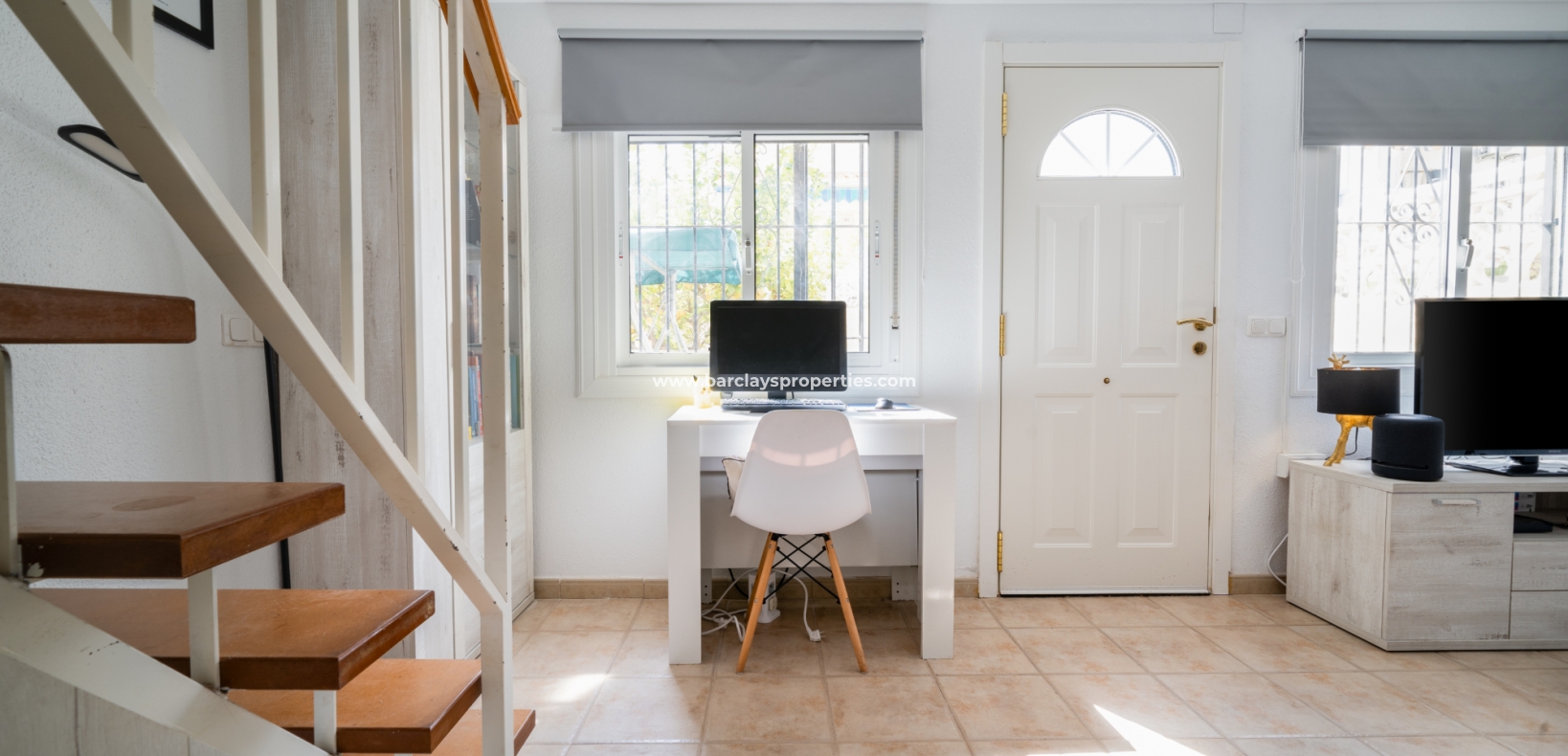Hier is een prachtig gerenoveerd rijtjeshuis te koop in Costa Blanca! Deze mooie woning heeft 2 slaapkamers, 1 badkamer en een ruime woonoppervlakte van 62m2 verdeeld over twee verdiepingen. ➡️ Gelegen op slechts 10 minuten van voorzieningen, 25 km van de luchthaven van Alicante en 10 km van de dichtstbijzijnde golfbaan, biedt deze woning de perfecte balans tussen rust en gemak.
