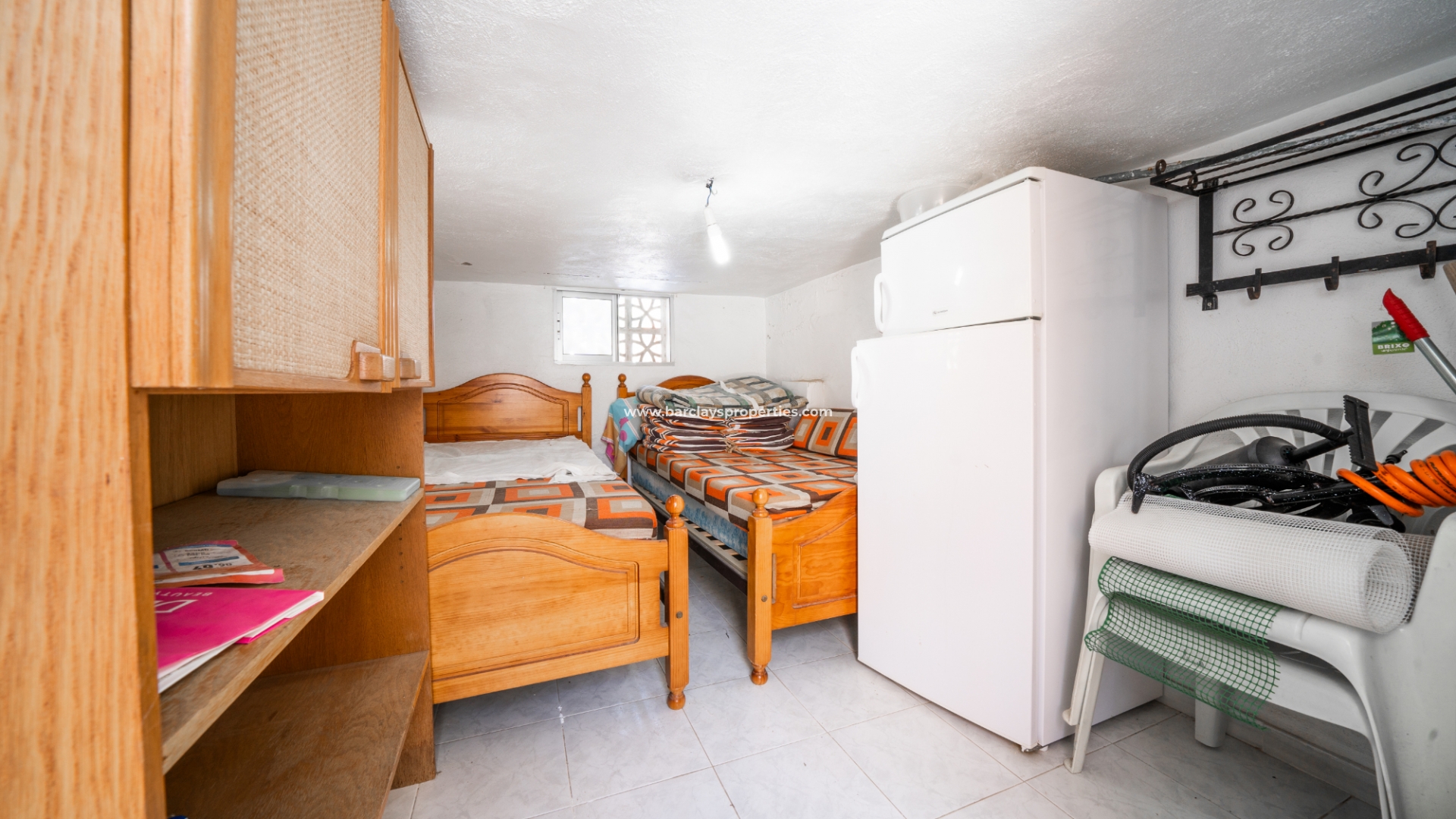 De woning beschikt over een opslagruimte onder het terras die momenteel wordt gebruikt als derde slaapkamer.