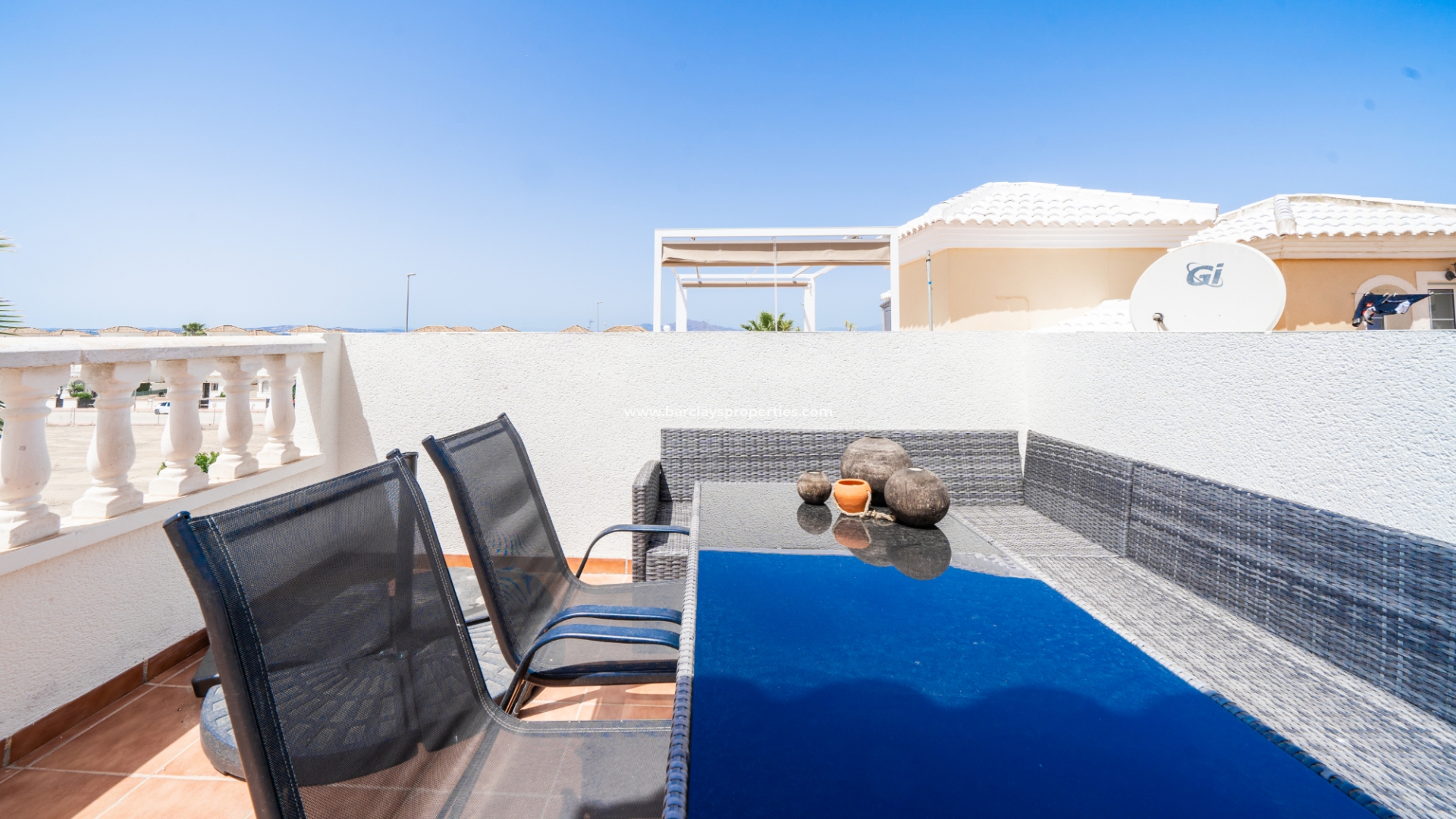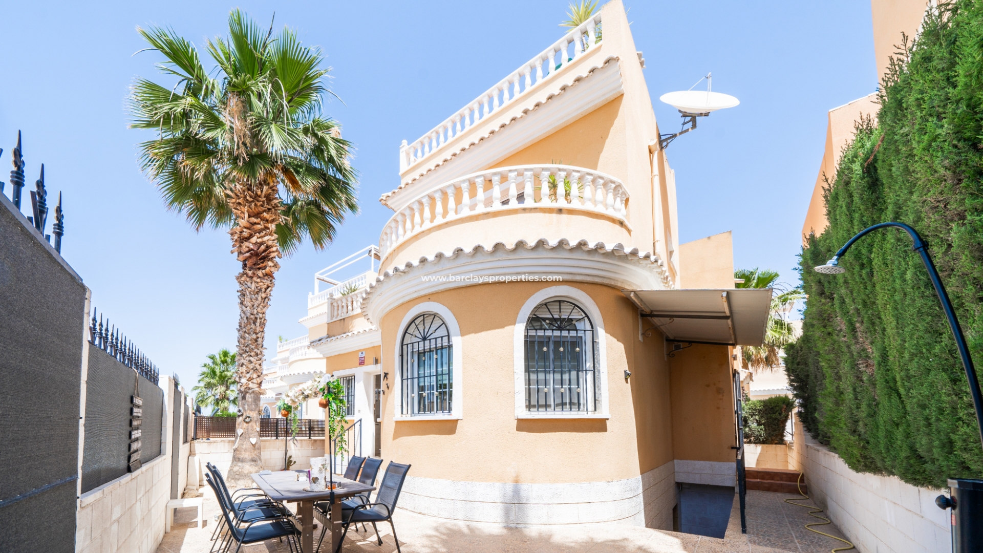 Introductie van deze prachtige vrijstaande villa bekend als het model "Villas del Palmeral", gelegen in een privé afgesloten gemeenschap die toegang biedt tot een royaal bemeten ➡️ gemeenschappelijk zwembad. Deze vrijstaande villa is uitgebreid om een ruim huis met 4 slaapkamers en 3 badkamers te bieden.