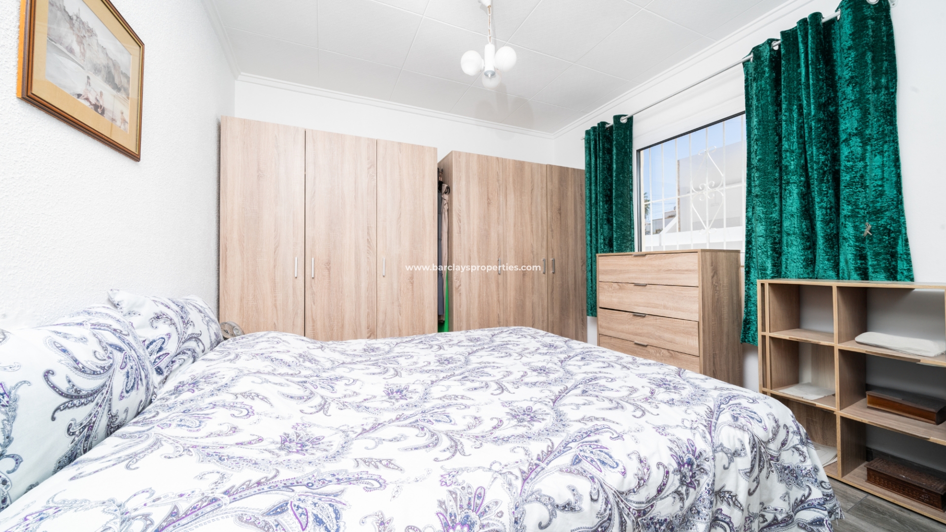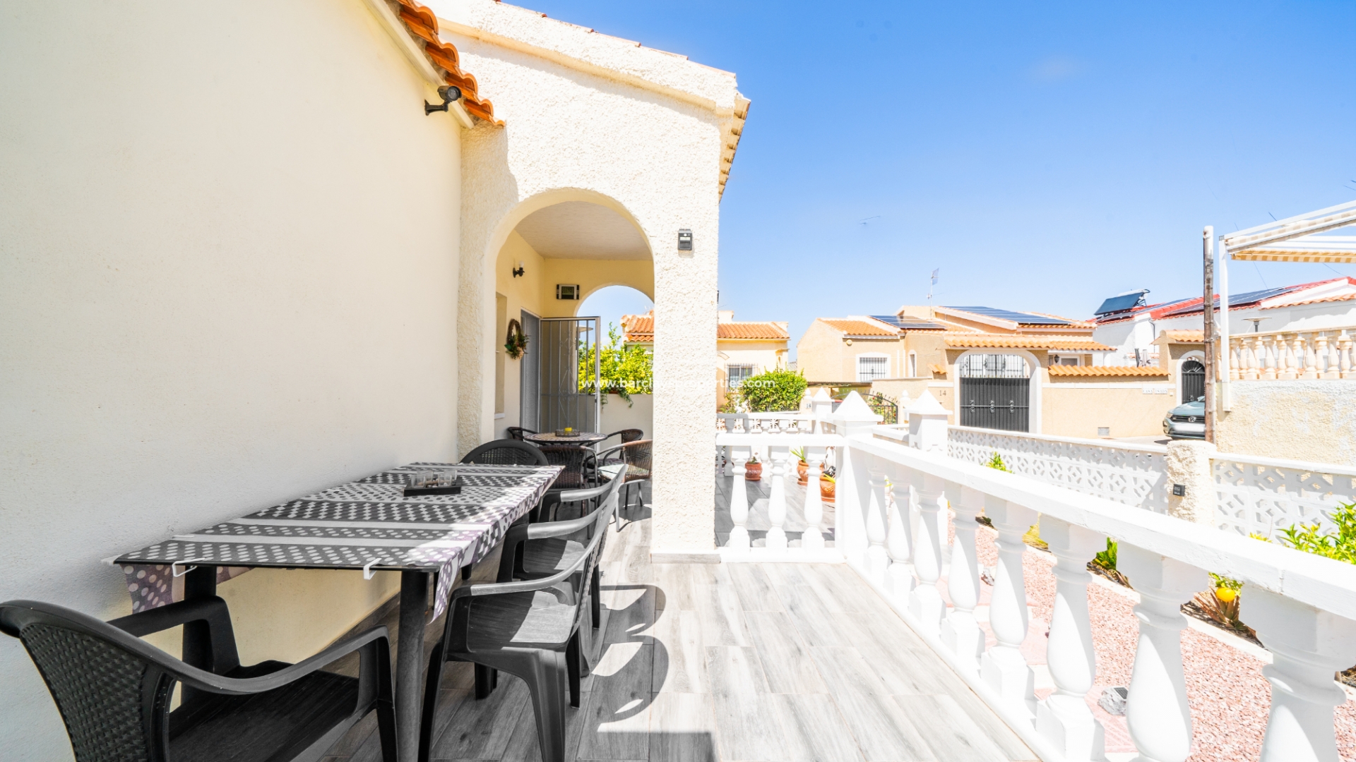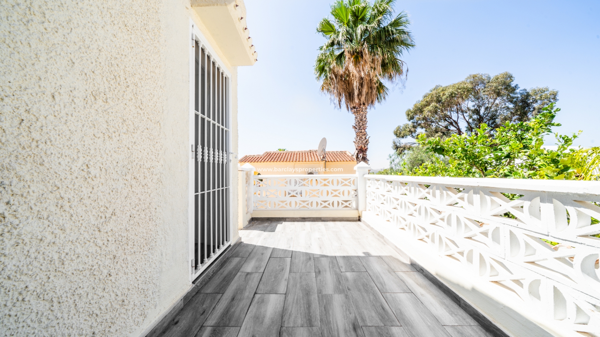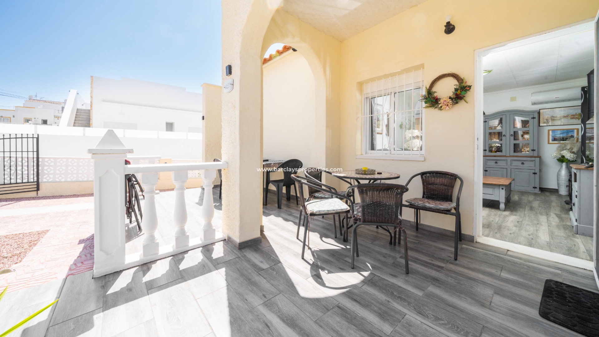Ontdek deze aantrekkelijke vrijstaande villa, model "Lola", gelegen in een rustige doodlopende straat in het serene Urb. La Marina aan de Costa Blanca. De ingang is via de dubbele opritpoorten die leiden naar de off-road parkeerplaats die is geplaveid. De rest van de voortuin heeft een mix van bestrating en grindgebieden voor minimaal onderhoud. De achtertuin biedt voldoende ruimte voor een klein zwembad✅ en omvat een metalen schuur voor extra opslag. De woning kijkt uit op een groen gebied en volkstuintjes, wat zorgt voor een rustige achtergrond.