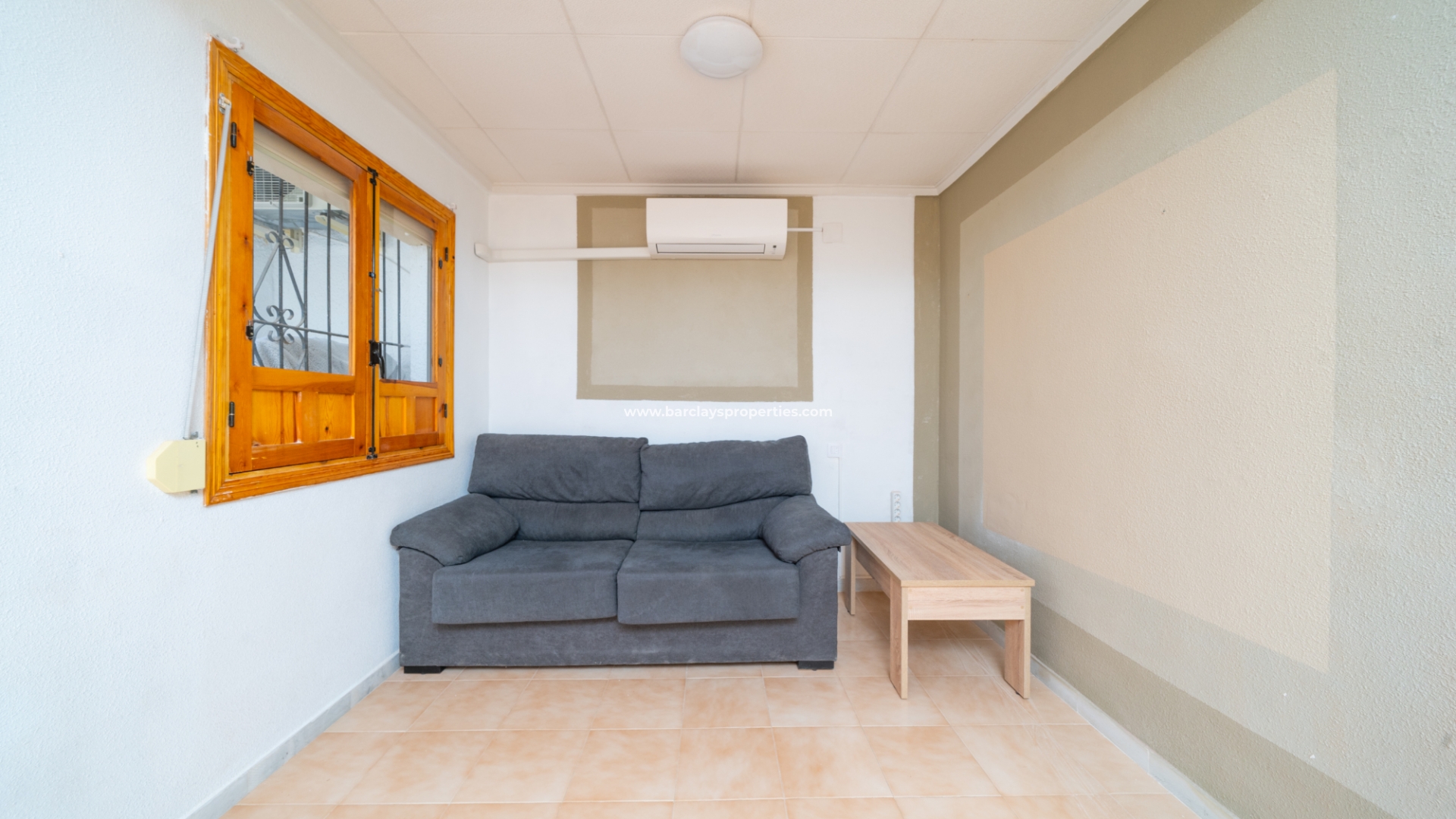Deze charmante tussenwoning bevindt zich dicht bij het platteland in een rustiger deel van de populaire kosmopolitische urbanisatie La Marina. Deze middenwoning in "Josefina"-stijl ligt op loopafstand van voorzieningen ✅ of op twee minuten rijden met de auto. Naast een grote supermarkt in de commerciële zone "Consum square" vindt u een scala aan restaurants, cafés en tapasbars voor alle smaken.
