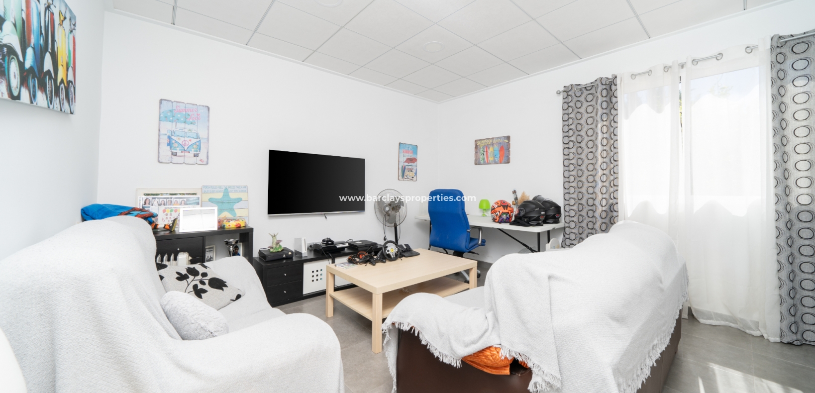 De villa beschikt over een mooie grote veranda, uitgerust met intrekbare luifels met doorzichtige ramen en veel zitgedeeltes die een comfortabele buitenzitplaats bieden. De woonruimte omvat een uitnodigende woonkamer, verlicht door spotlights, en een goed formaat, volledig elektrische open keuken, uitgerust met ✅airconditioning. Een ruime bijkeuken biedt extra functionaliteit met een wasmachine, droger, boiler en voldoende opslagruimte.